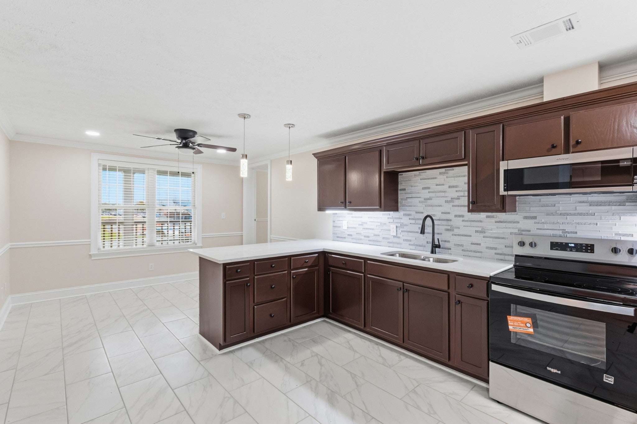- Built-In Electric Range, Microwave, Refrigerator