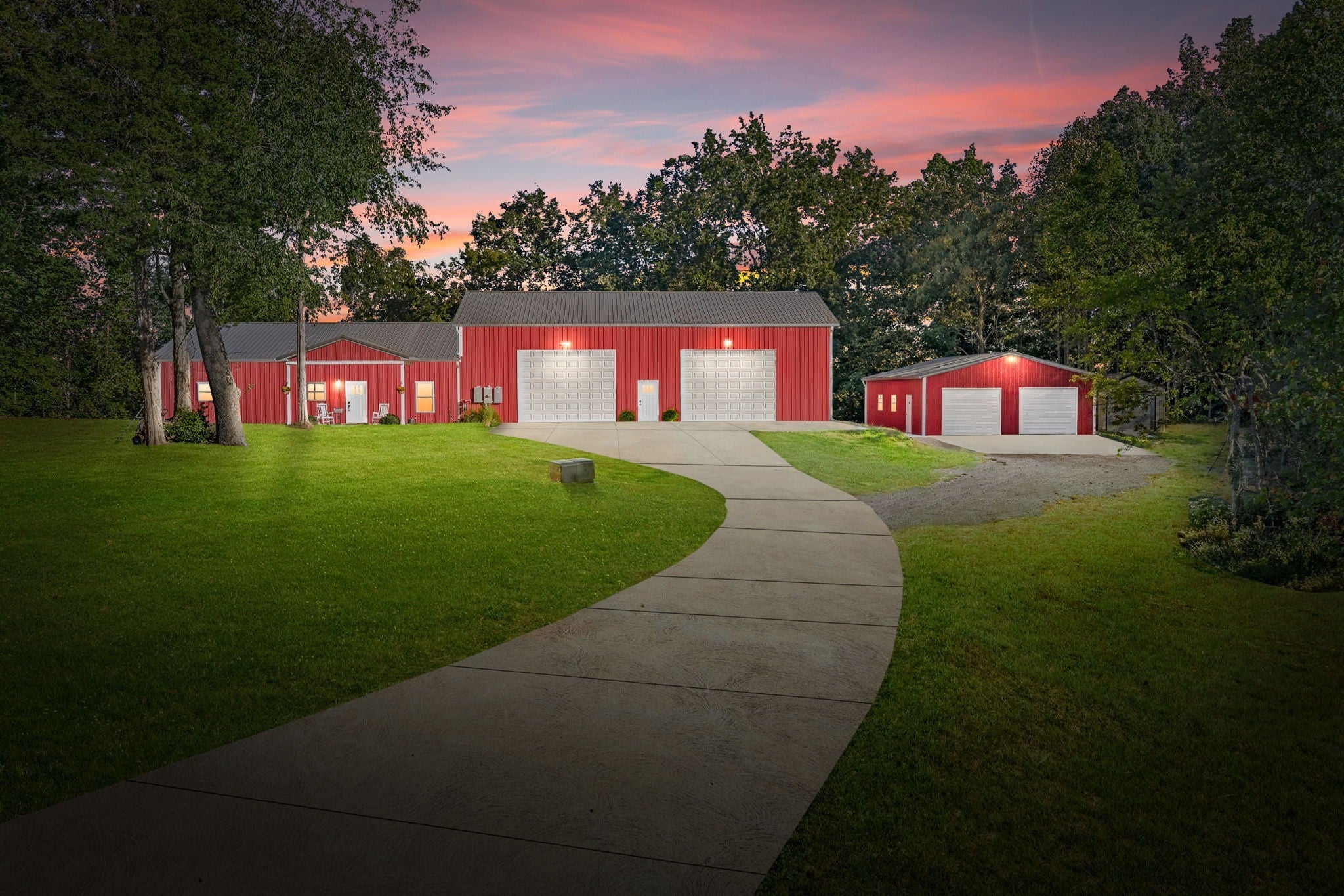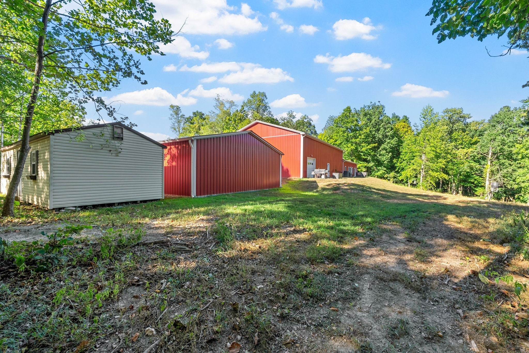 Discover a rare opportunity to own this breathtaking 41-acre estate in the heart of the city. Offering unmatched privacy and limitless potential for recreation, development, or private retreat living, this pristine property has never been timbered and is enrolled in Greenbelt tax status. A well is located on the property (not currently in use). Enjoy over 3,000 feet of direct river frontage and nearly four miles of cleared trails ideal for ATV riding, mountain biking, dirt bikes, or horseback riding. Explore natural caves, search for arrowheads and geodes, and enjoy established clover plots that attract abundant wildlife. Hunting, target practice, and range shooting are permitted within city limits—an exceptional feature for a property of this scale. At the center of the estate sits a thoughtfully upgraded barndominium blending luxury with accessibility. The chef’s kitchen features two prep sinks, custom cabinetry, and a commercial-grade smart range vent. Smart upgrades include Alexa-controlled lighting, Ecobee thermostats, central vacuum with Hide-A-Hose, and 400-amp electrical service with separate 200-amp panels for the home and shop. The ADA-friendly layout offers step-free entry, wide openings, custom closets, an oversized mudroom, and a spacious primary suite with dual six-foot vanities and a soaking tub. Attached is a fully heated and cooled recreation space with pickleball and basketball courts and skate-approved flooring. Two 16’ x 12’ garage doors accommodate RV storage with water and sewer hookups. A 30x40 detached workshop with 10-foot ceilings and solar panels, plus an additional 12x32 shed, add flexibility. Located just 7 miles from Fort Campbell, 50 miles from Nashville, and within 4 miles of I-24 Exit 1 on the TN/KY border, this extraordinary estate offers privacy, convenience, and long-term investment potential.