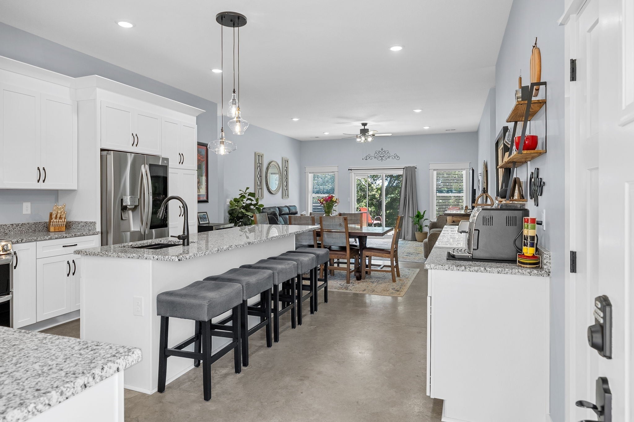 - Ceiling Fan(s), Central Vacuum, Extra Closets, Open Floorplan, Pantry, Smart Thermostat, Kitchen Island