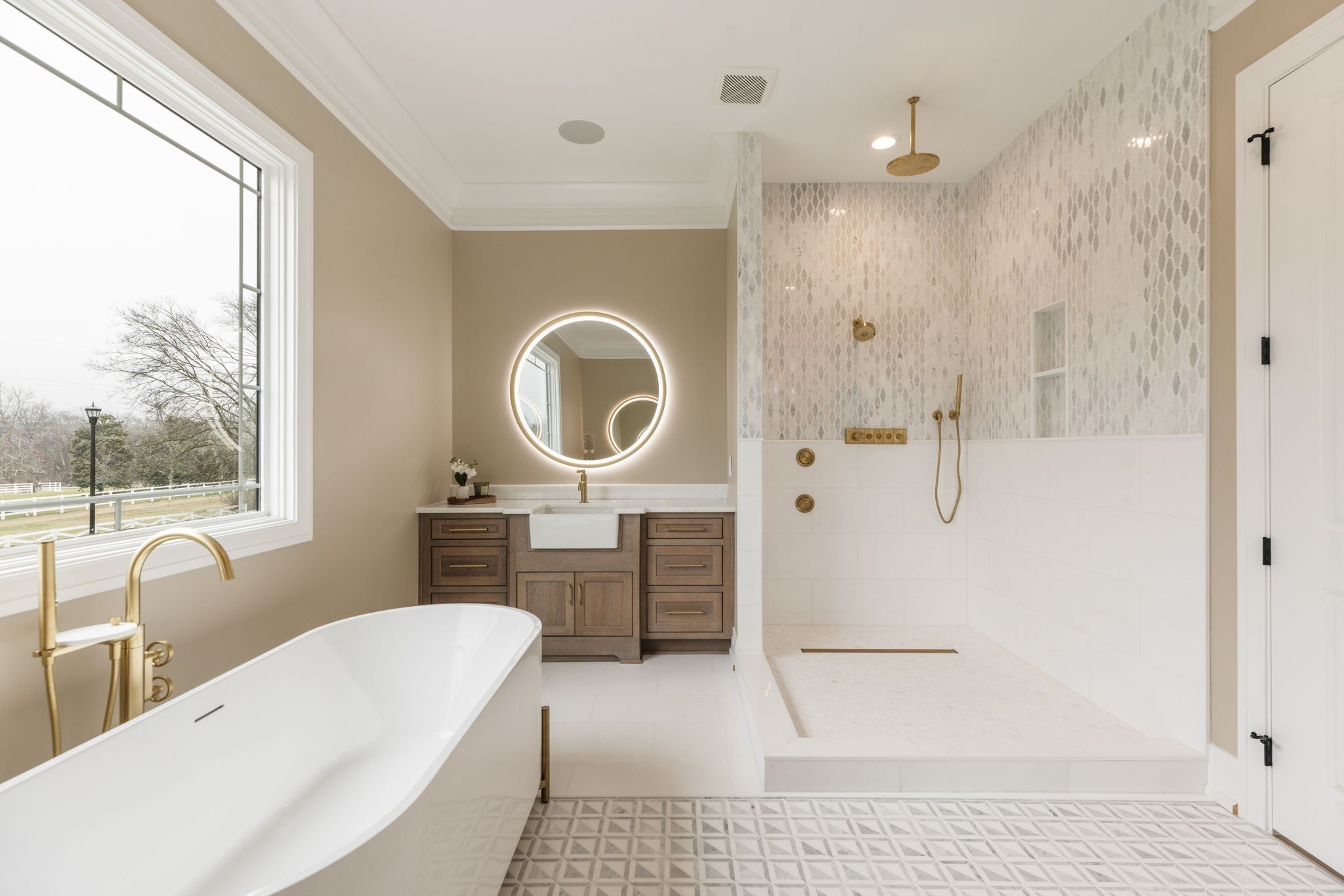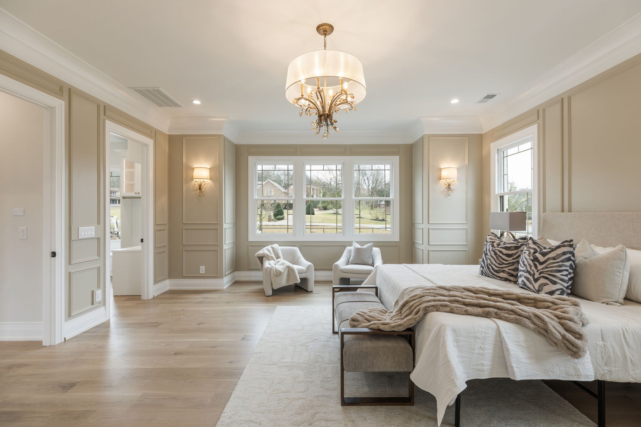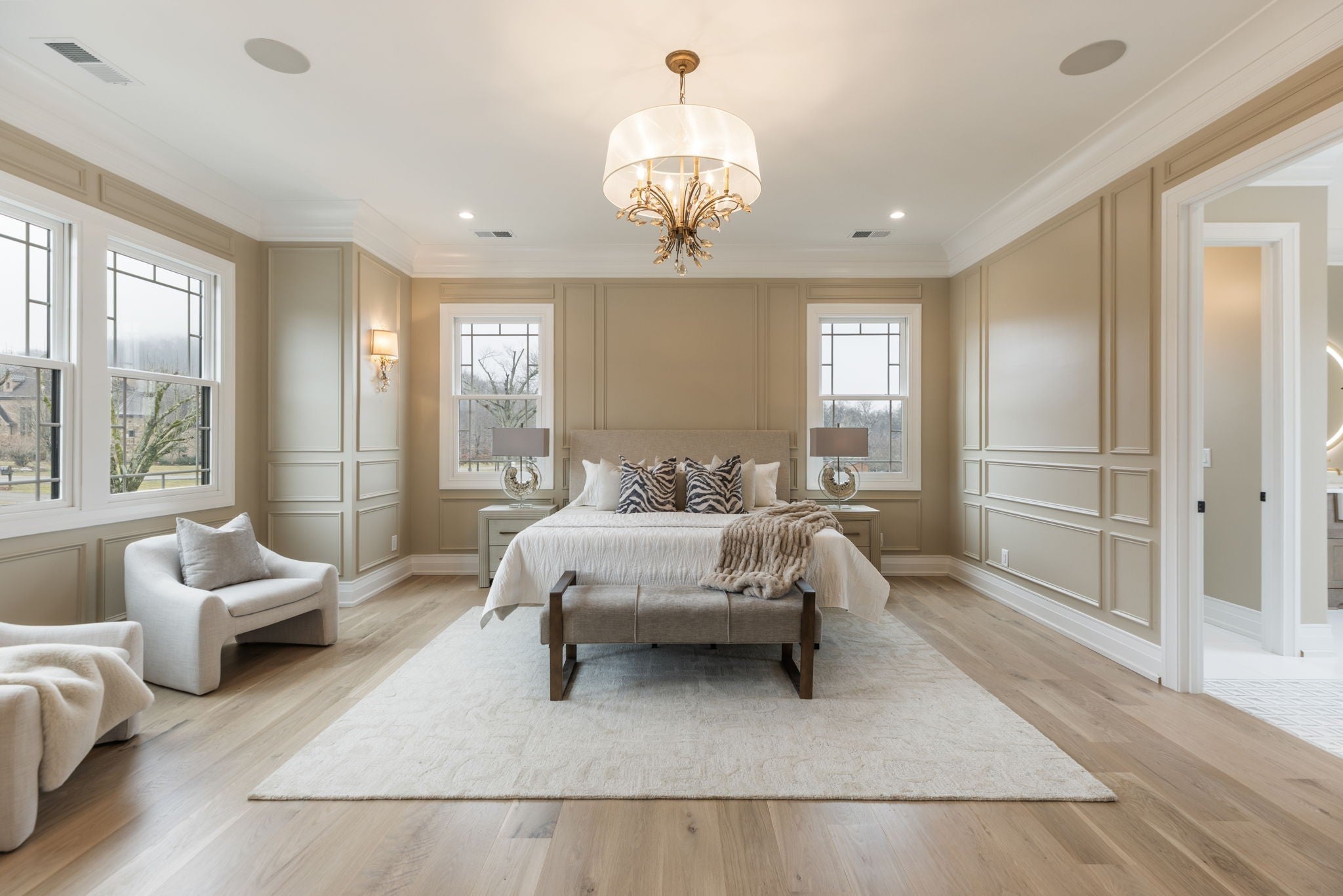 Experience luxurious living in this custom-built modern traditional in sought-after Williamson County. Offering over 7,000 square feet, this 5-bedroom, 5 full bath, 2 half bath residence offers breathtaking views overlooking Edwin Warner Park. Step through the front doors into a stunning two-story foyer where soaring ceilings and abundant natural light immediately capture your attention. The grand scale continues in the magnificent great room, also two stories, anchored by a gas fireplace and framed by walls of windows that showcase the serene views. The gourmet chef’s kitchen features an oversized island, bar area, wine fridge and a separate scullery kitchen for seamless entertaining. The main-level primary suite offers a spa-inspired bath with a soaking tub and spacious shower. An expansive custom closet provides abundant storage and boutique-style organization. Formal living and dining rooms, a flexible bonus room, guest ensuite, and a generous sized laundry room complete the main floor. Gorgeous 7-inch white oak hardwood floors run throughout the home. An elevator provides convenient access to all three levels. Upstairs includes two ensuite bedrooms and a flex space ideal for an upstairs den. The walk-out lower level expands the living and entertaining possibilities of the home with a second full kitchen and sitting area, home theater wired for Dolby sound, private ensuite bedroom, 2nd laundry room, half bath, and flex room that could be a recording studio - perfect for guests, au pair, or multi-generational living. This one-acre lot on a quiet dead-end street includes over 4000 square feet of decking, a sparkling pool, and hot tub designed for entertaining and relaxation. 16-zone irrigation system maintains the beautifully landscaped grounds. Additional features include a four-car garage with utility closet. No HOA. Zoned for top-rated Grassland Elementary & Middle School, Franklin High, and minutes from private schools - CPA, BA, Ensworth High School.