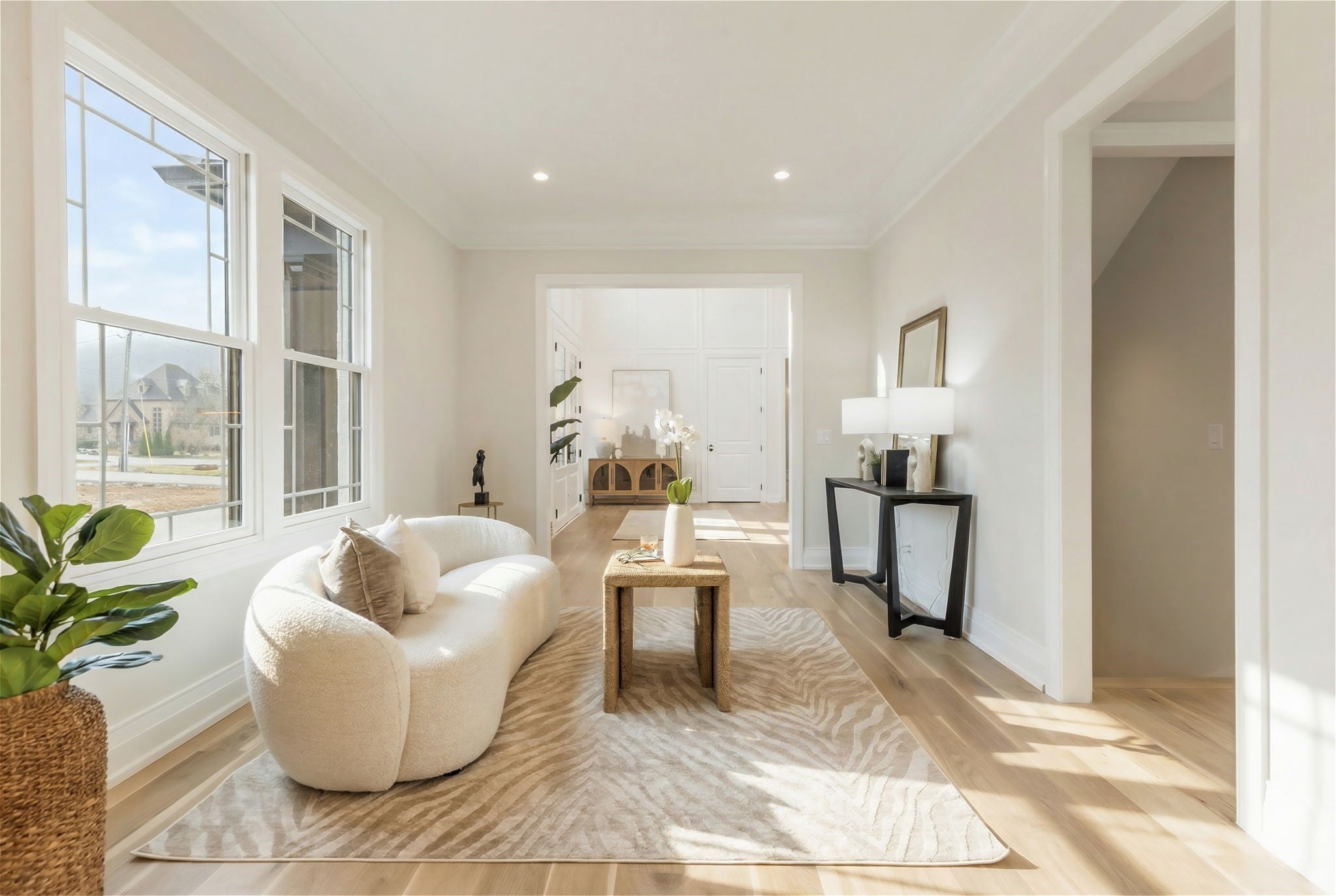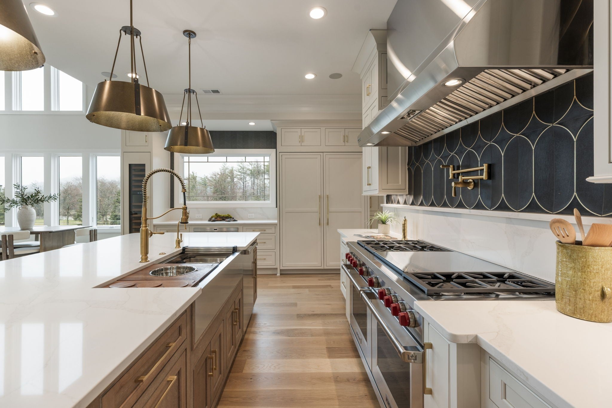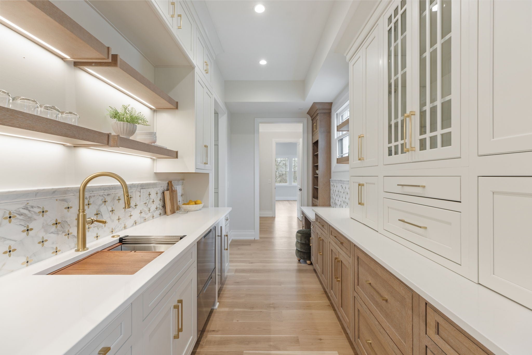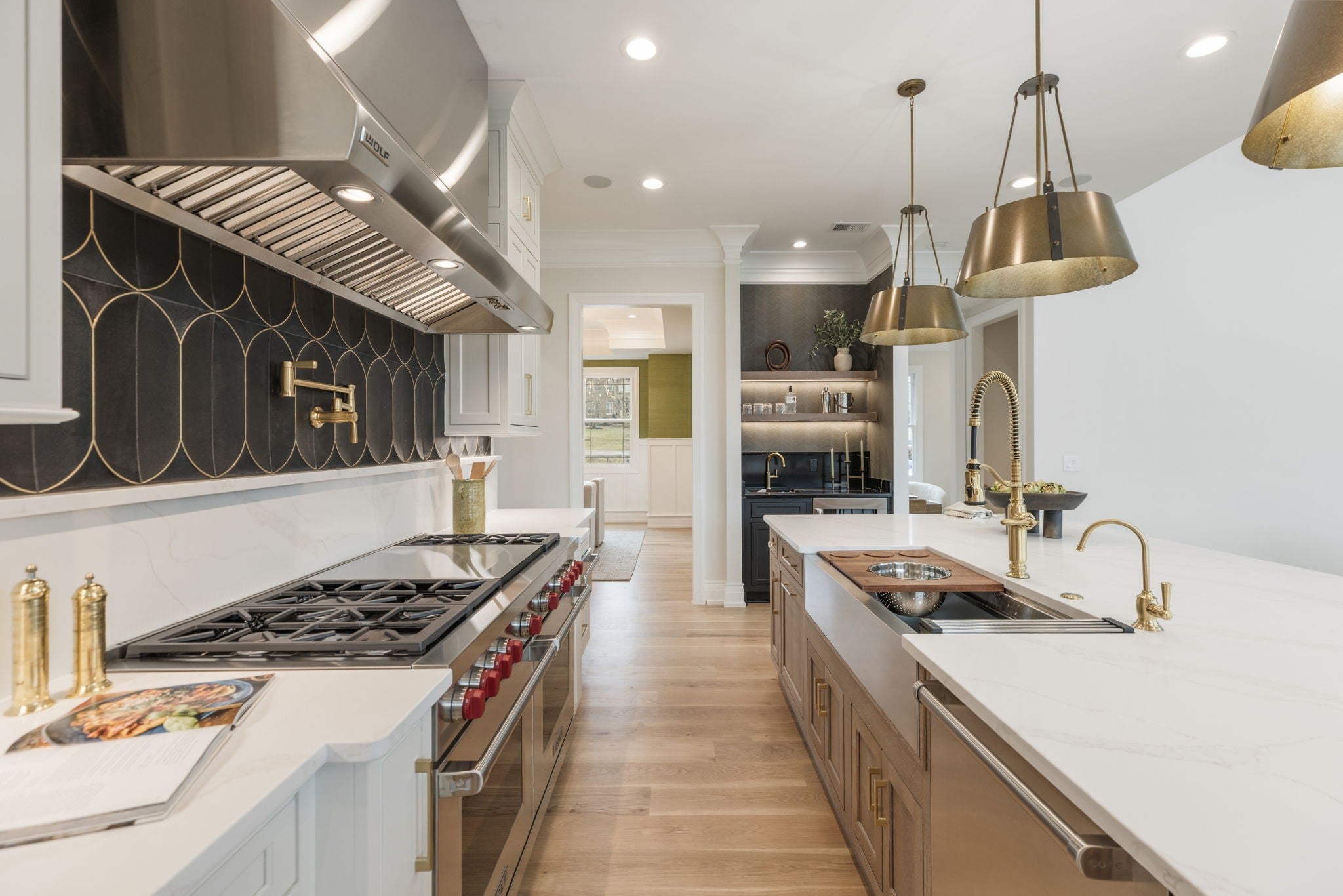 Experience luxurious living in this custom-built modern traditional in sought-after Williamson County. Offering over 7,000 square feet, this 5-bedroom, 5 full bath, 2 half bath residence offers breathtaking views overlooking Edwin Warner Park. Step through the front doors into a stunning two-story foyer where soaring ceilings and abundant natural light immediately capture your attention. The grand scale continues in the magnificent great room, also two stories, anchored by a gas fireplace and framed by walls of windows that showcase the serene views. The gourmet chef’s kitchen features an oversized island, bar area, wine fridge and a separate scullery kitchen for seamless entertaining. The main-level primary suite offers a spa-inspired bath with a soaking tub and spacious shower. An expansive custom closet provides abundant storage and boutique-style organization. Formal living and dining rooms, a flexible bonus room, guest ensuite, and a generous sized laundry room complete the main floor. Gorgeous 7-inch white oak hardwood floors run throughout the home. An elevator provides convenient access to all three levels. Upstairs includes two ensuite bedrooms and a flex space ideal for an upstairs den. The walk-out lower level expands the living and entertaining possibilities of the home with a second full kitchen and sitting area, home theater wired for Dolby sound, private ensuite bedroom, 2nd laundry room, half bath, and flex room that could be a recording studio - perfect for guests, au pair, or multi-generational living. This one-acre lot on a quiet dead-end street includes over 4000 square feet of decking, a sparkling pool, and hot tub designed for entertaining and relaxation. 16-zone irrigation system maintains the beautifully landscaped grounds. Additional features include a four-car garage with utility closet. No HOA. Zoned for top-rated Grassland Elementary & Middle School, Franklin High, and minutes from private schools - CPA, BA, Ensworth High School.