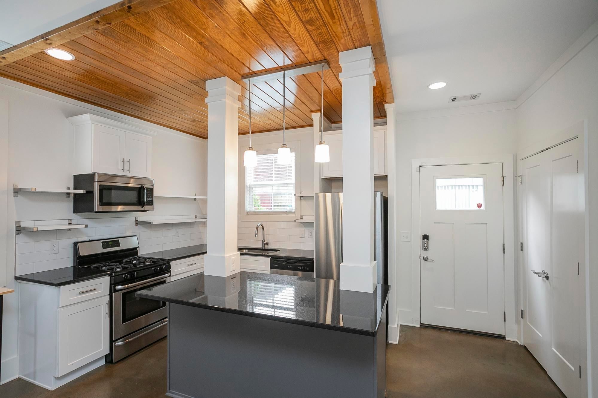 Downtown living at an affordable price! Step inside this well maintained and updated newer construction home located just minutes from downtown Nashville. Open downstairs open living room/ kitchen concept floorplan with tons of natural light, stained concrete floors, gas fireplace and kitchen with stainless steel appliances, granite countertops and kitchen island. Both bedrooms upstairs are nicely sized and have great closet storage. Fresh paint and new carpet throughout! Privacy fenced-in back porch. Great parking. Washer/ dryer remain. Walking distance to Meharry Medical and coffee shops/ restaurants. Don't miss this great price!