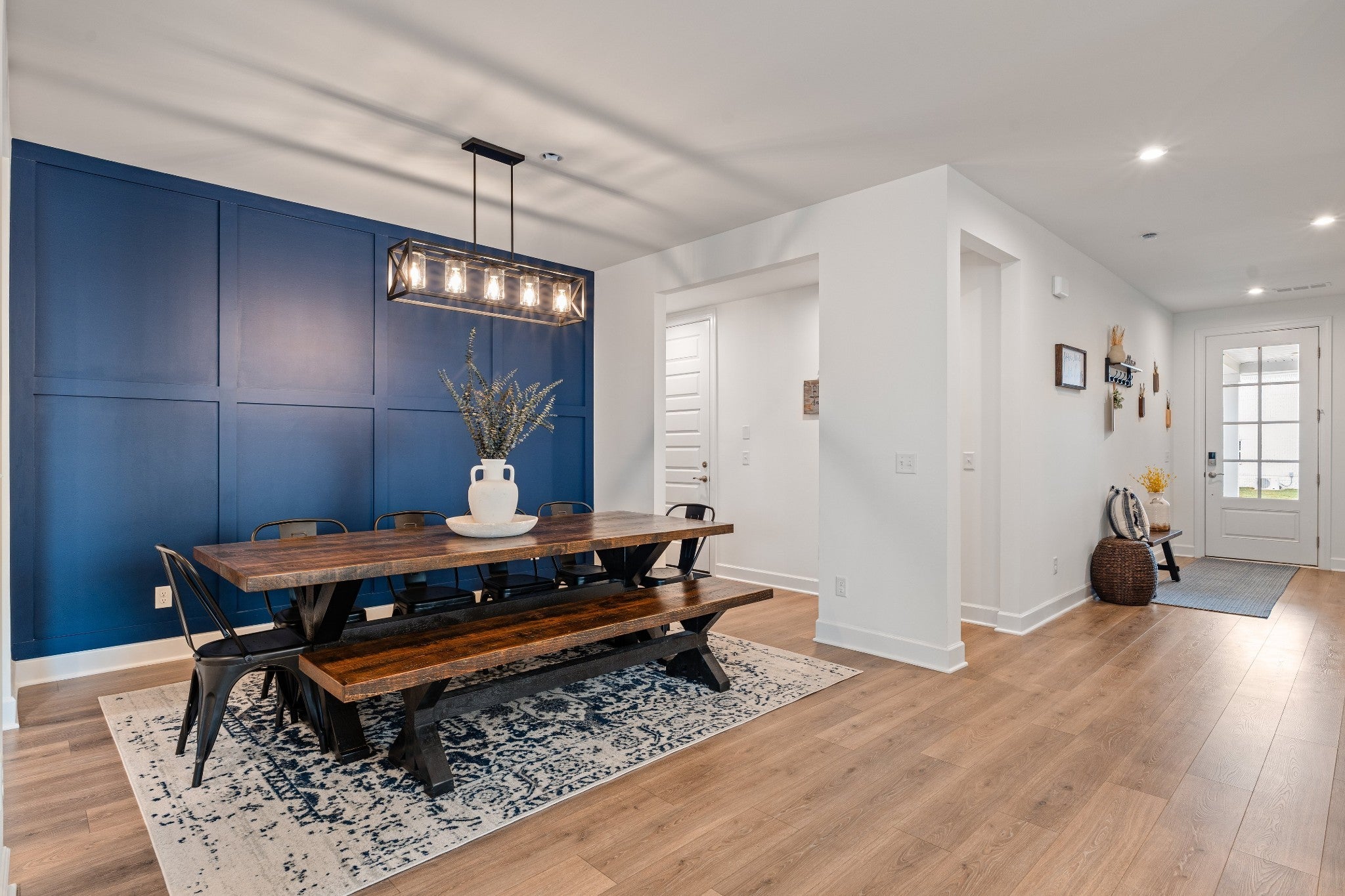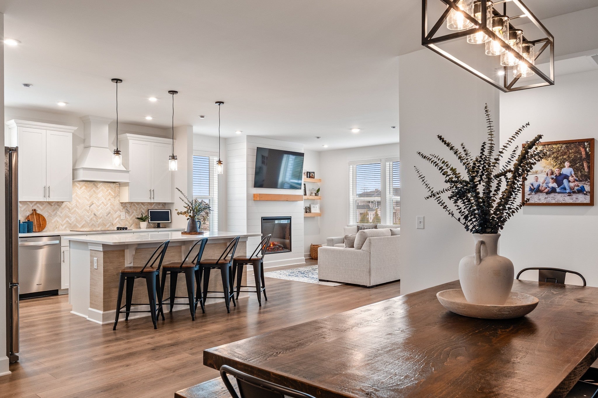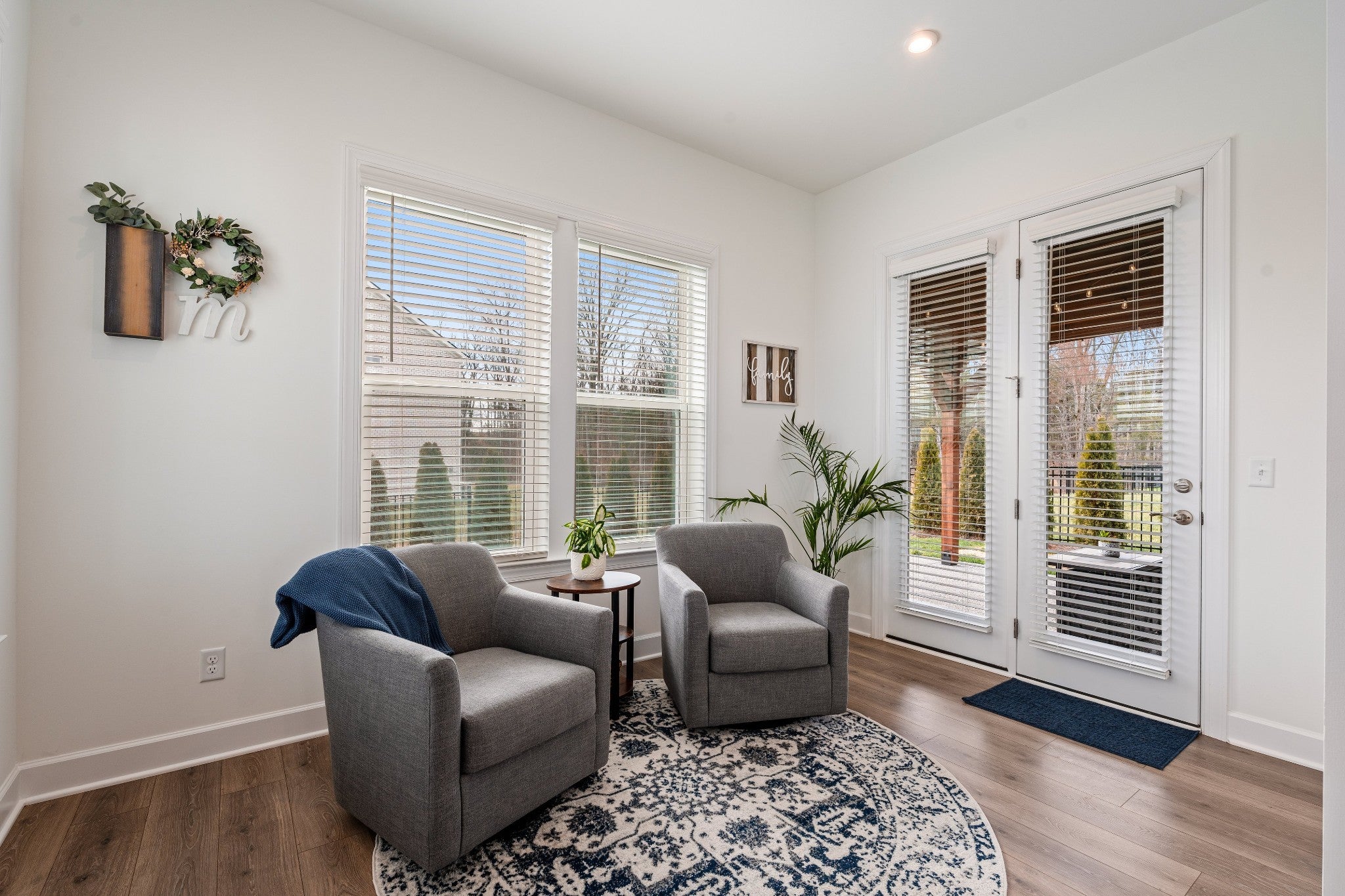 This thoughtfully designed home features a primary bedroom on the main level along with a first-floor study that can function as a fifth bedroom, offering flexibility for guests, work-from-home, or multi-generational living. Upstairs, you’ll find three additional bedrooms and a spacious bonus room, ideal for a media room, playroom, or second living area. The open-concept layout is both functional and inviting, with the dining area flowing seamlessly into the kitchen—perfect for entertaining and everyday living. Abundant natural light fills the home, enhanced by a bright morning room off the great room that adds valuable additional living space and architectural charm. The gourmet kitchen is beautifully appointed with quartz countertops, stainless steel appliances, a custom wood hood, and designer finishes. Hard-surface flooring throughout the main level and tile in all wet areas provide durability and timeless style. Step outside to enjoy an extended patio with pergola, surrounded by privacy trees and maintained with a full irrigation system, creating an inviting outdoor retreat. The custom garage features epoxy-coated floors and added storage, offering both function and a polished finish. With flexible living spaces, quality upgrades, and exceptional natural light throughout, this move-in-ready home is designed to accommodate a variety of lifestyle needs.