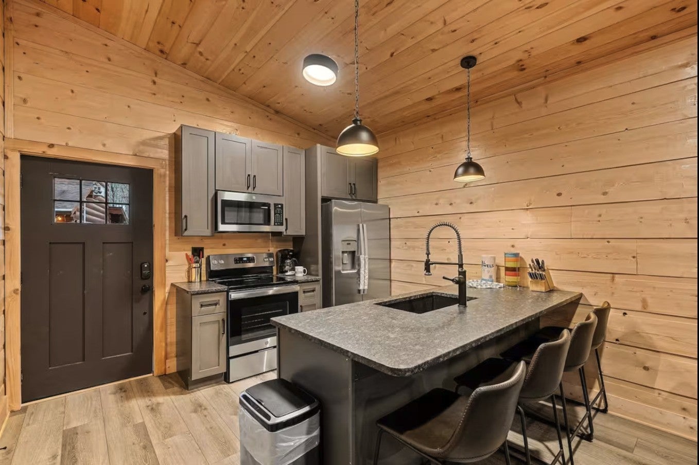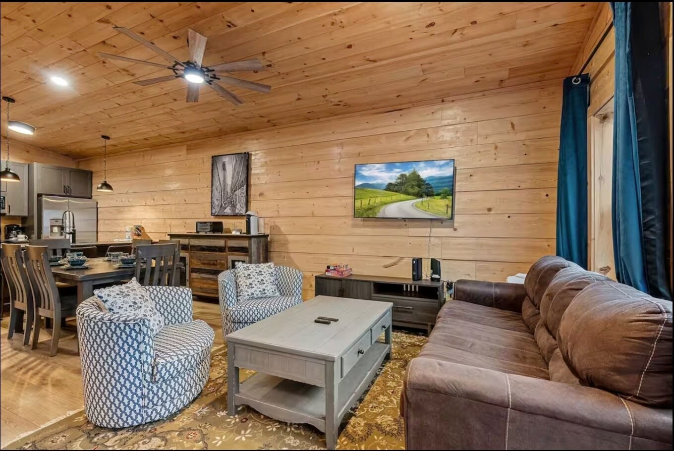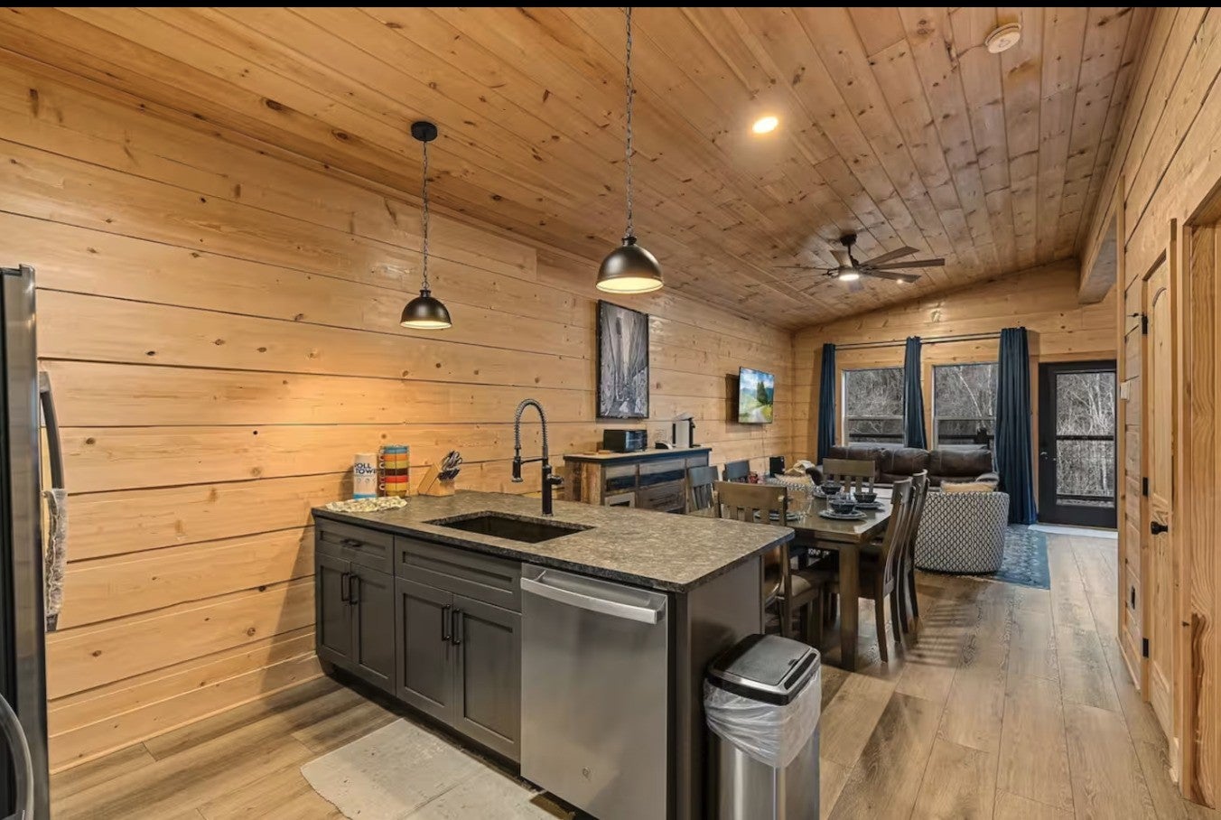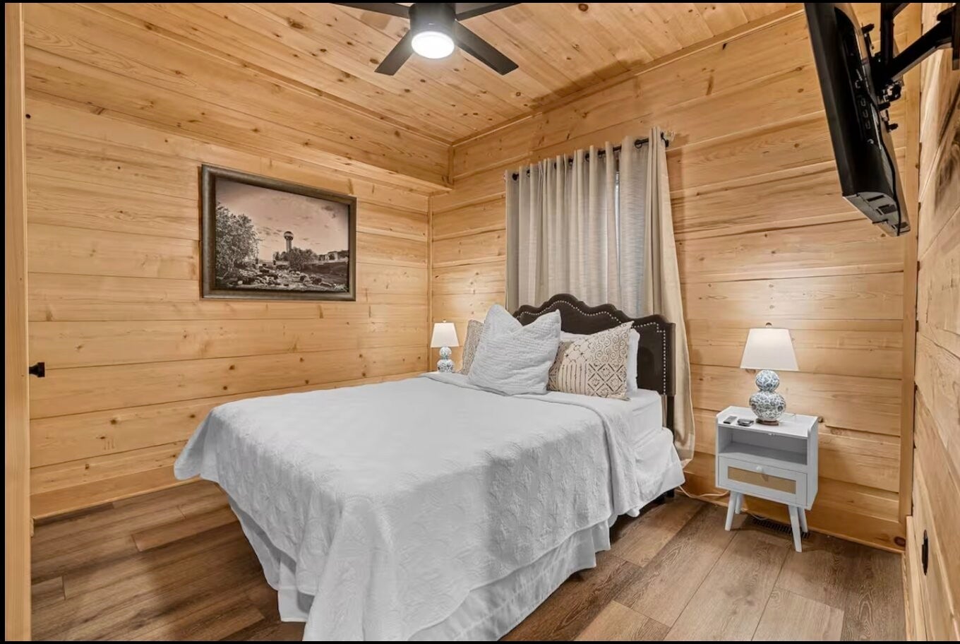 Location, lifestyle, and investment potential all come together in this beautifully appointed cabin just 5 minutes from the Parkway, Tanger Outlets, dining, and attractions in Sevierville. Enjoy the convenience of being close to everything while still feeling tucked away in your own private wooded retreat. Situated on a nearly half-acre lot, the spacious backyard creates a peaceful, “in the woods” atmosphere — perfect for relaxing after a day of shopping or exploring the Smokies. Inside, the open-concept design features soaring cathedral ceilings and natural-stained tongue-and-groove walls that fill the space with warmth and character. The light and bright interior is complemented by durable luxury vinyl plank flooring, granite countertops, stainless steel appliances, and thoughtful finishes throughout. The main-level master suite includes a beautifully tiled shower, and with two king suites, this property is ideal for personal use, guests, or short-term rental potential. Additional highlights include: No HOA County taxes only Paved roads with no steep access Fully furnished and turnkey ready Whether you're looking for a private getaway, permanent residence, or income-producing investment, this property offers the perfect blend of convenience, comfort, and mountain charm.
