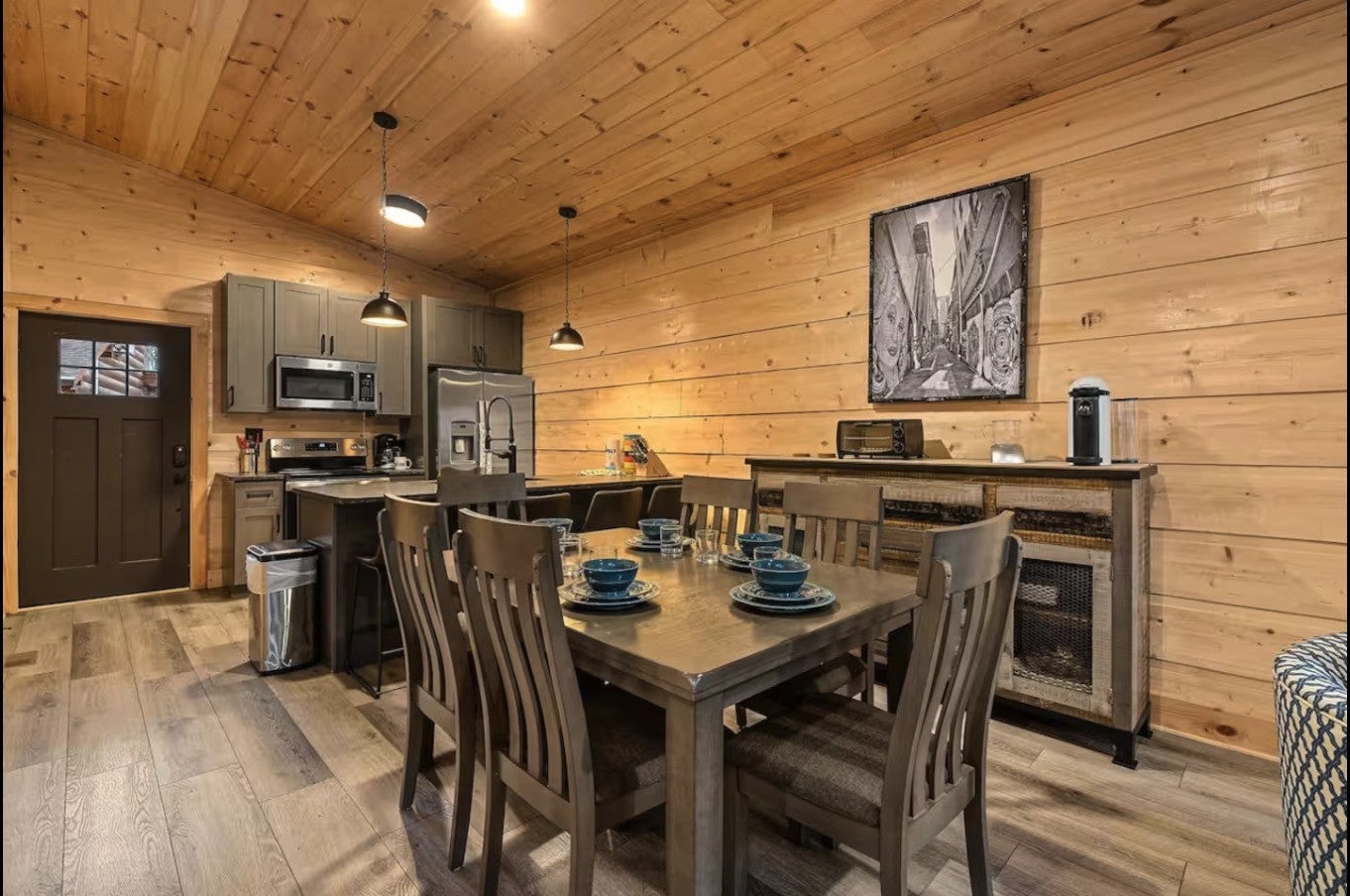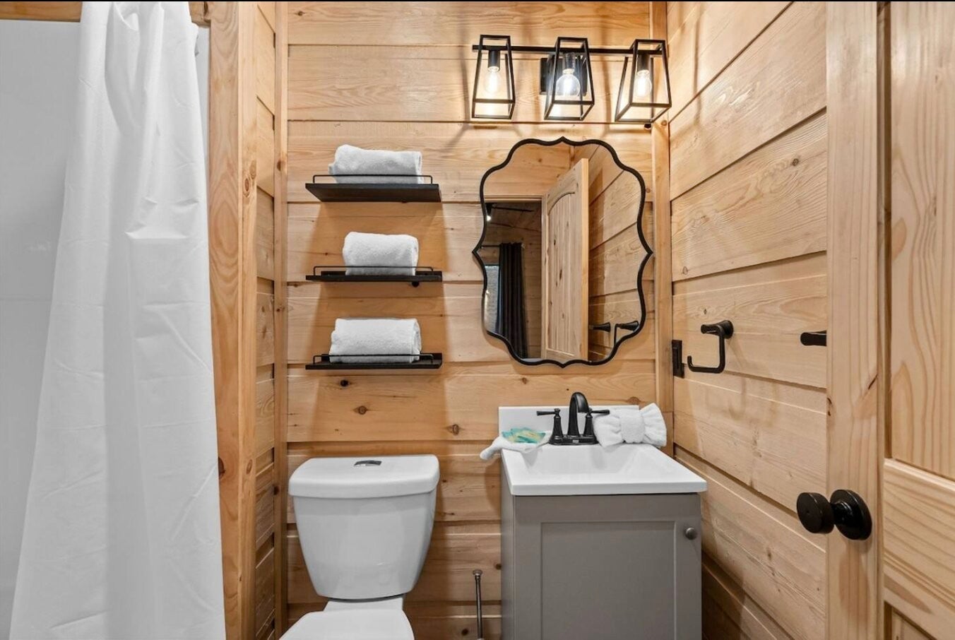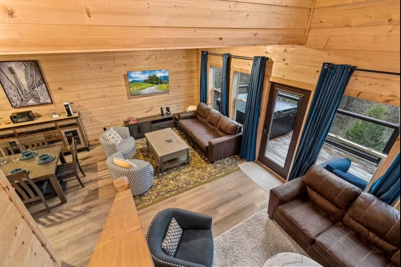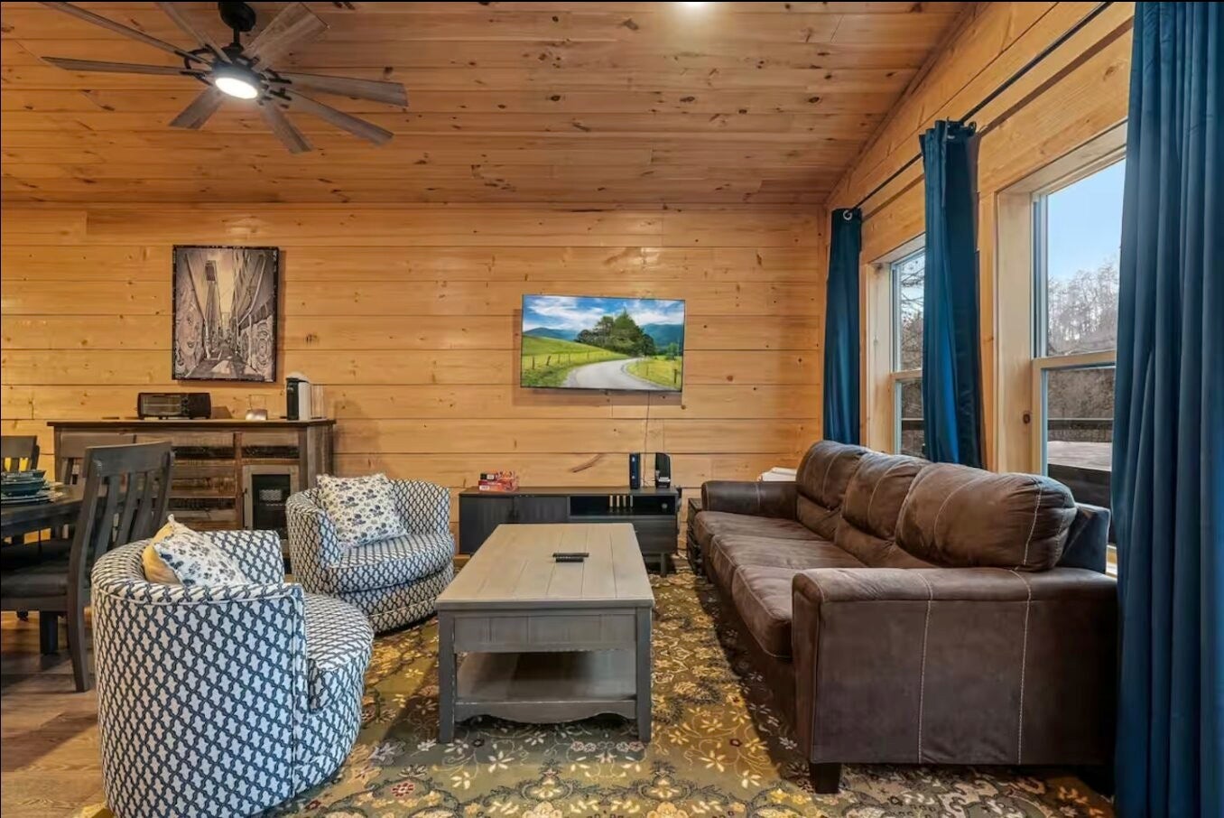 Location, lifestyle, and investment potential all come together in this beautifully appointed cabin just 5 minutes from the Parkway, Tanger Outlets, dining, and attractions in Sevierville. Enjoy the convenience of being close to everything while still feeling tucked away in your own private wooded retreat. Situated on a nearly half-acre lot, the spacious backyard creates a peaceful, “in the woods” atmosphere — perfect for relaxing after a day of shopping or exploring the Smokies. Inside, the open-concept design features soaring cathedral ceilings and natural-stained tongue-and-groove walls that fill the space with warmth and character. The light and bright interior is complemented by durable luxury vinyl plank flooring, granite countertops, stainless steel appliances, and thoughtful finishes throughout. The main-level master suite includes a beautifully tiled shower, and with two king suites, this property is ideal for personal use, guests, or short-term rental potential. Additional highlights include: No HOA County taxes only Paved roads with no steep access Fully furnished and turnkey ready Whether you're looking for a private getaway, permanent residence, or income-producing investment, this property offers the perfect blend of convenience, comfort, and mountain charm.
