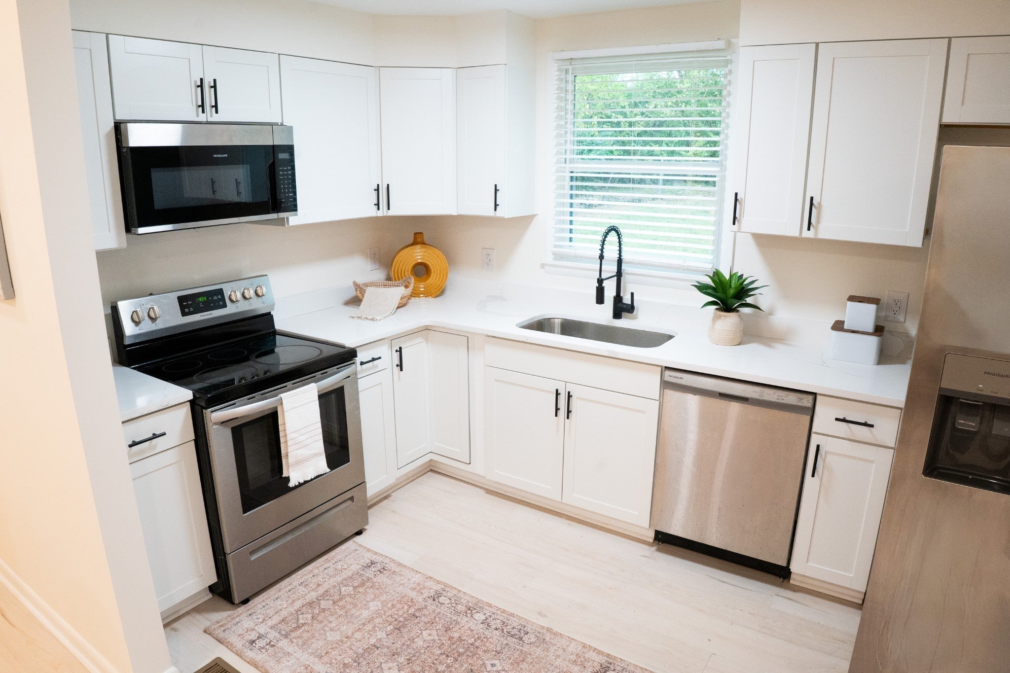 - Electric Oven, Electric Range, Dishwasher, Microwave, Refrigerator, Stainless Steel Appliance(s)