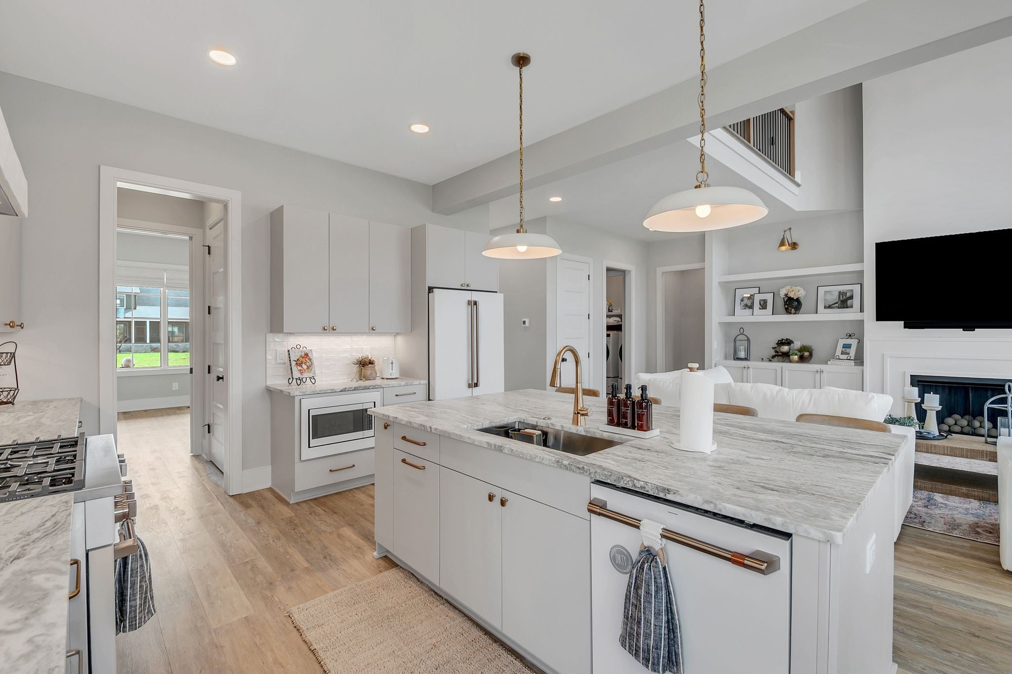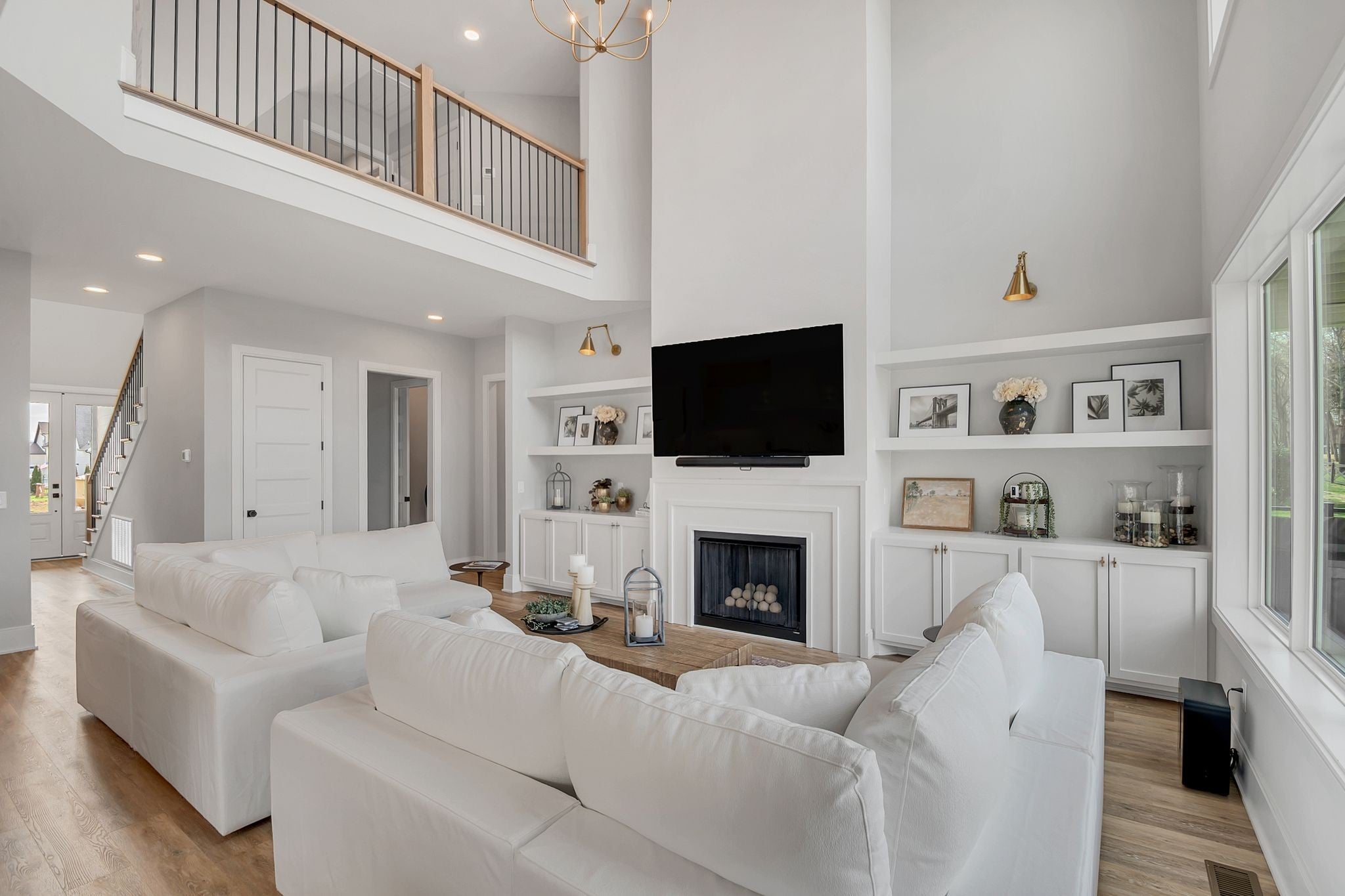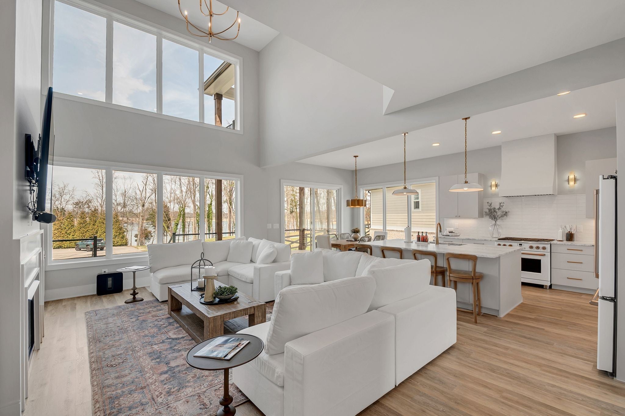 Stunning Lake Views! Experience luxury lake living in this beautifully designed home located on highly sought-after Hammock Drive in the gated community of Twin Creeks Village & Resort. The dramatic living room features soaring two-story ceilings, expansive windows showcasing gorgeous lake views, and a striking floor-to-ceiling gas fireplace with custom built-ins and designer sconces. The main-level primary suite offers a spa-inspired en-suite bath complete with a soaking tub and a separate shower with rainhead. Upstairs, a secondary suite includes its own soaking tub and large shower, while Bedrooms 3 and 4 share a convenient Jack-and-Jill bath. A HUGE bonus room with a full hallway bath provides flexible space for guests, recreation, or media. The chef’s kitchen is an entertainer’s dream, featuring granite or quartz countertops, pantry, coffee bar/wet bar area, plaster hood, and CAFE appliances including the refrigerator. Additional upgrades include tile flooring in the laundry room and designer finishes throughout. The versatile flex room with custom millwork can serve as a dining room, office, or sitting area. Whether you’re seeking the ultimate entertainer’s lake house or a private retreat for relaxation, this home offers it all. Furniture is negotiable. The 6 seat golf cart by Advanced EV remains with the house for you to enjoy. Twin Creeks Village & Resort amenities include three community pools, and Twin Creeks Marina—located just behind the neighborhood—offers boat slips for easy lake access. Tour the lake life today!