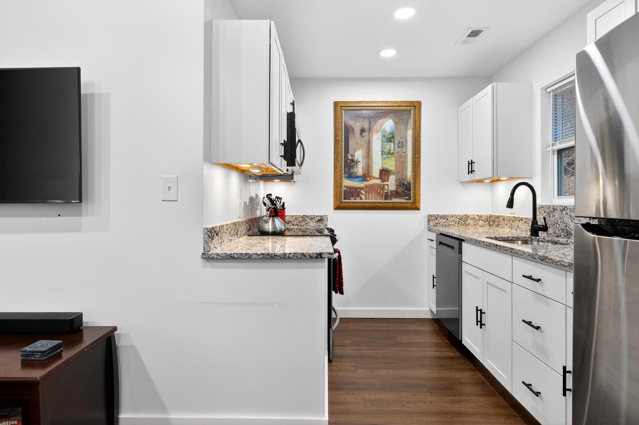 - Electric Oven, Cooktop, Dishwasher, Refrigerator, Microwave