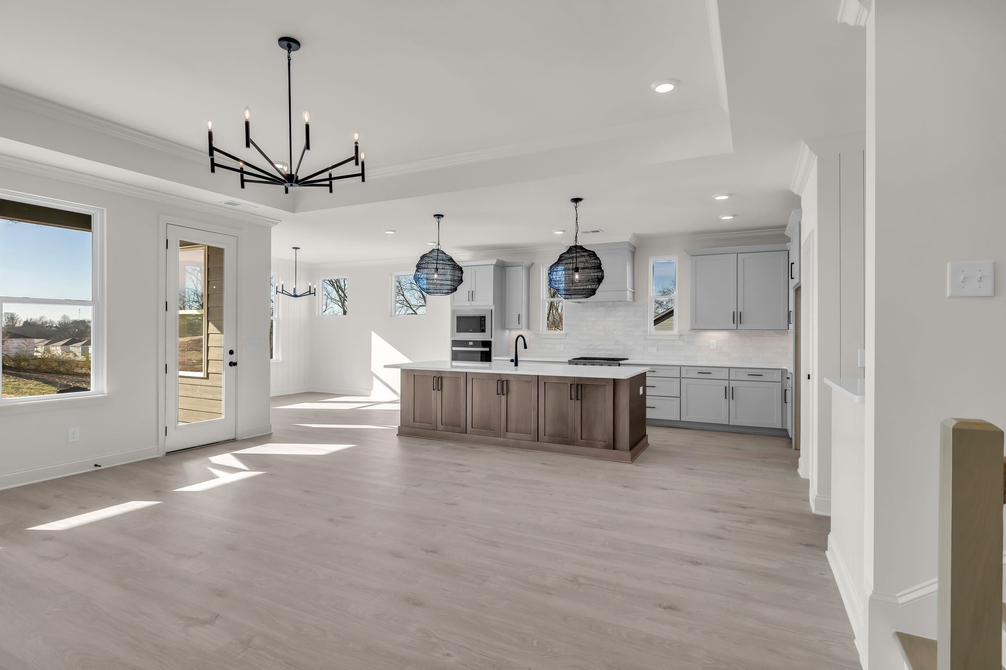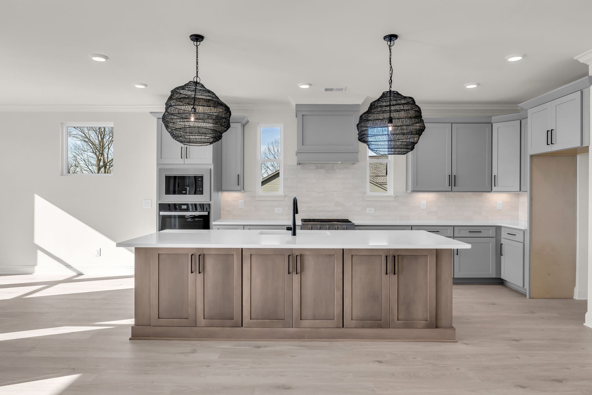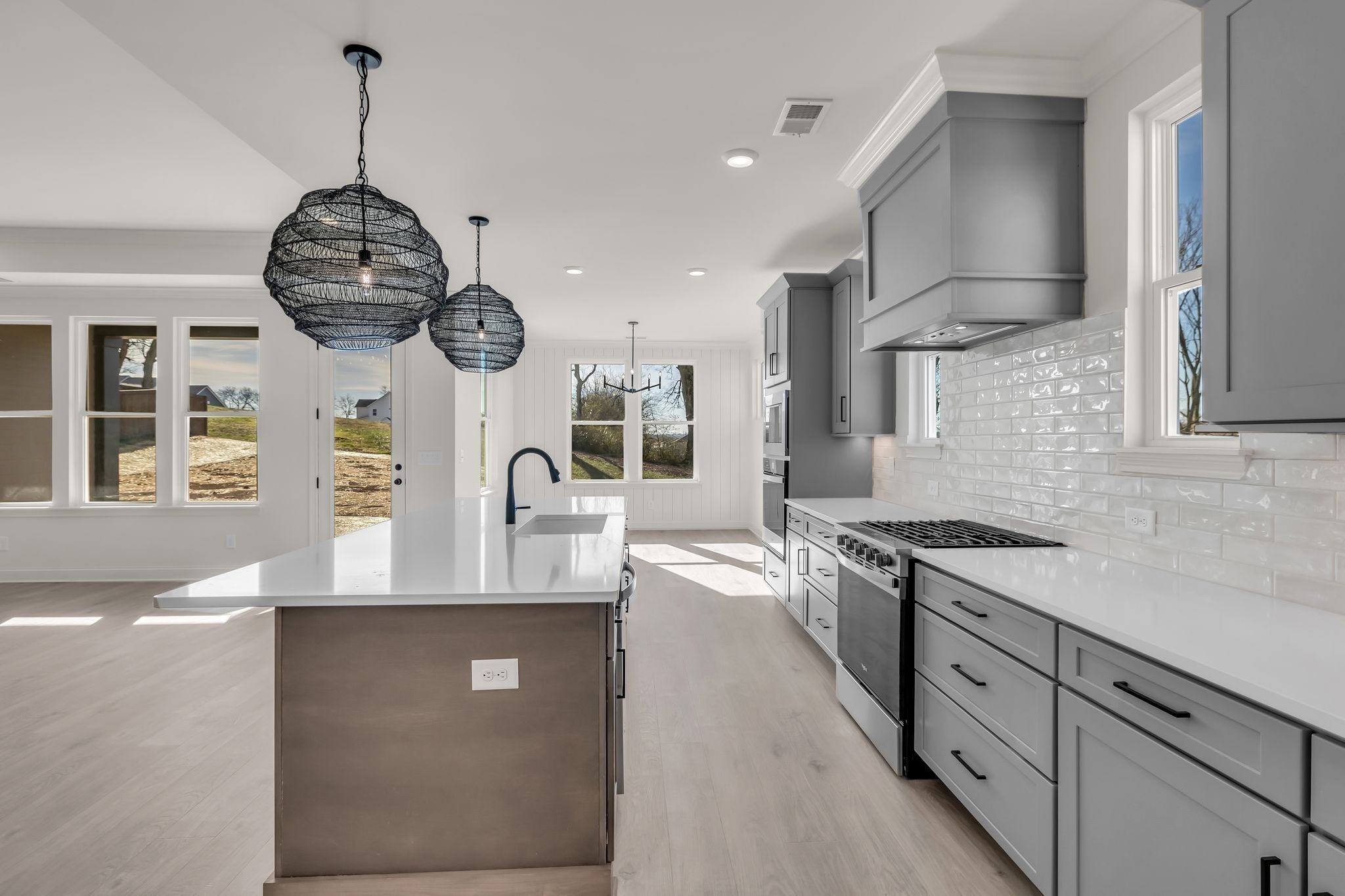 Welcome to Celebration Homes’ Designer Heathrow floor plan—where luxury, functionality, and modern design come together with high-end finishes throughout. From the moment you enter, the open-concept Great Room flows effortlessly into the kitchen and dining area, creating an inviting space ideal for both everyday living and entertaining. A stylish bar area just off the Great Room adds the perfect touch for hosting guests. The gourmet kitchen is a true showstopper, featuring an oversized island, abundant cabinetry, and a spacious pantry. Premium upgrades include a cabinet-grade vent hood, backless gas range, and Whirlpool stainless steel appliances, all thoughtfully selected for both beauty and performance. The main-level Primary Suite offers a serene retreat with a luxurious Owner’s Bath showcasing a freestanding soaking tub and a fully tiled walk-in shower with upgraded tile and plumbing finishes. An additional bedroom and full bath on the main level provide excellent privacy for guests or multi-generational living. A versatile flex room on the first floor is ideal for a home office, study, or fitness space. Upstairs, you’ll find two generously sized bedrooms along with a large bonus room—perfect for a media room, playroom, or secondary living space. Outdoors, the integrated covered rear porch offers a relaxing setting for year-round enjoyment and entertaining. Adding to the home’s thoughtful design is a dedicated workshop area off the garage, ideal for hobbyists or DIY enthusiasts. With its blend of comfort, sophistication, and practical design, this home truly has it all. Don’t miss the opportunity to make this exceptional home yours. Be sure to stop by the Celebration Homes model at 304 Eastwood Lane, Spring Hill, TN 37174 and ask the on-site sales manager about available builder incentives when using preferred lender Encompass Lending.