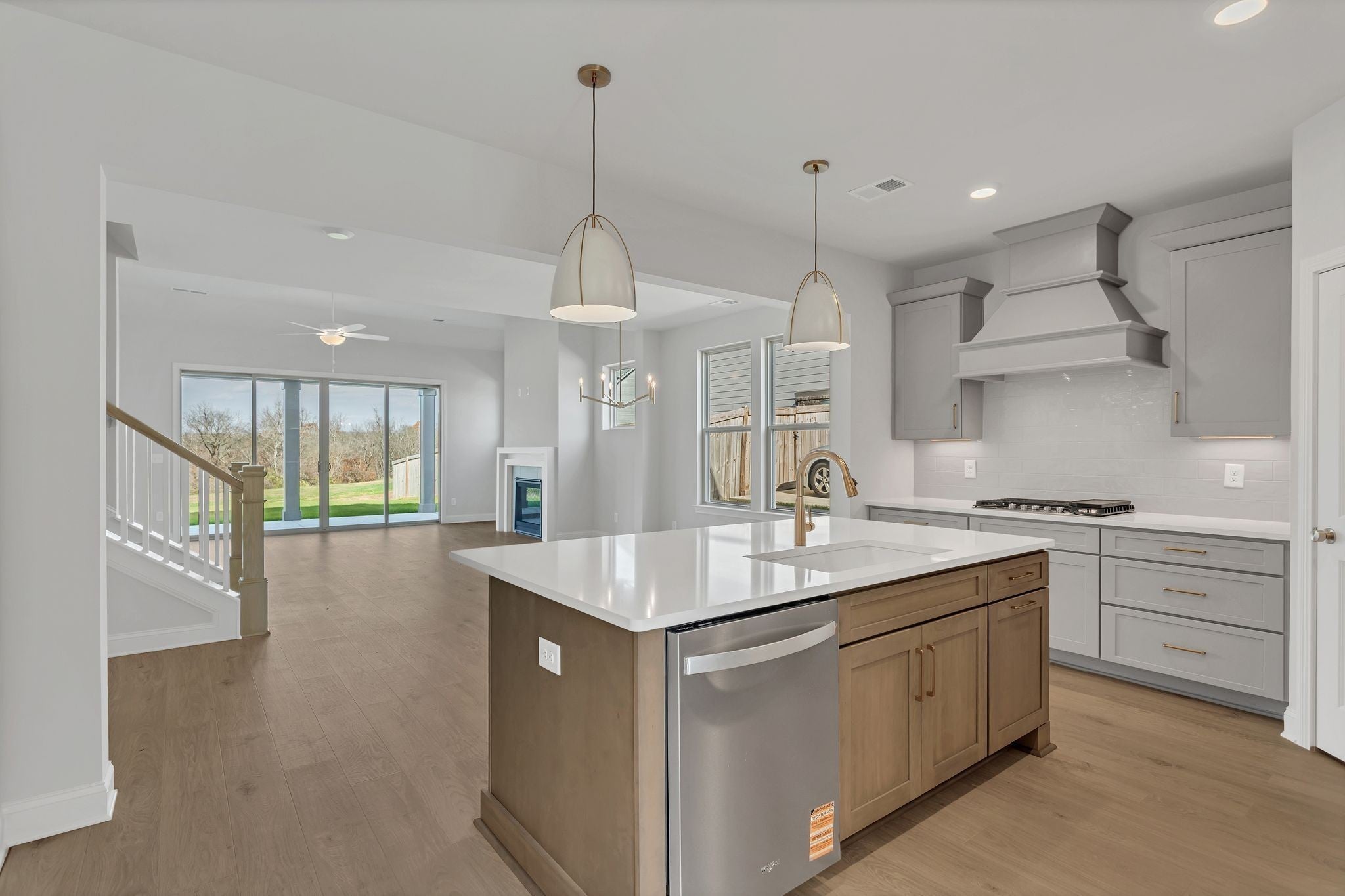 This beautifully designed Yale floor plan by Celebration Homes is perfectly positioned on a quiet cul-de-sac in the desirable Harvest Point community. This home blends thoughtful design with elevated finishes throughout. The main level features 9-foot ceilings, a dramatic vaulted great room, and upgraded sliding glass doors that open to an extended covered rear patio—ideal for indoor-outdoor living. The chef’s kitchen is outfitted with Whirlpool appliances, 42” Craftsman-style soft-close cabinetry, drawer stacks, a trash bin pullout, and a durable farmhouse composite sink. Stylish 7” Mohawk RevWood laminate flooring runs throughout the first floor, excluding wet areas and the primary closet. The main-level primary suite is a true retreat, featuring a freestanding soaking tub and a fully tiled walk-in shower. Upstairs, you’ll find two secondary bedrooms with a shared bath, plus an additional bedroom with a private en-suite—perfect for guests or multigenerational living. Additional highlights include a contemporary tiled interior fireplace, a functional mudroom drop zone with cubbies, and built-in shelving in both the primary closet and pantry. Don’t miss the opportunity to make this exceptional home yours. Be sure to stop by the Celebration Homes model at 304 Eastwood Lane, Spring Hill, TN 37174 and ask the on-site sales manager about available builder incentives when using preferred lender Encompass Lending.