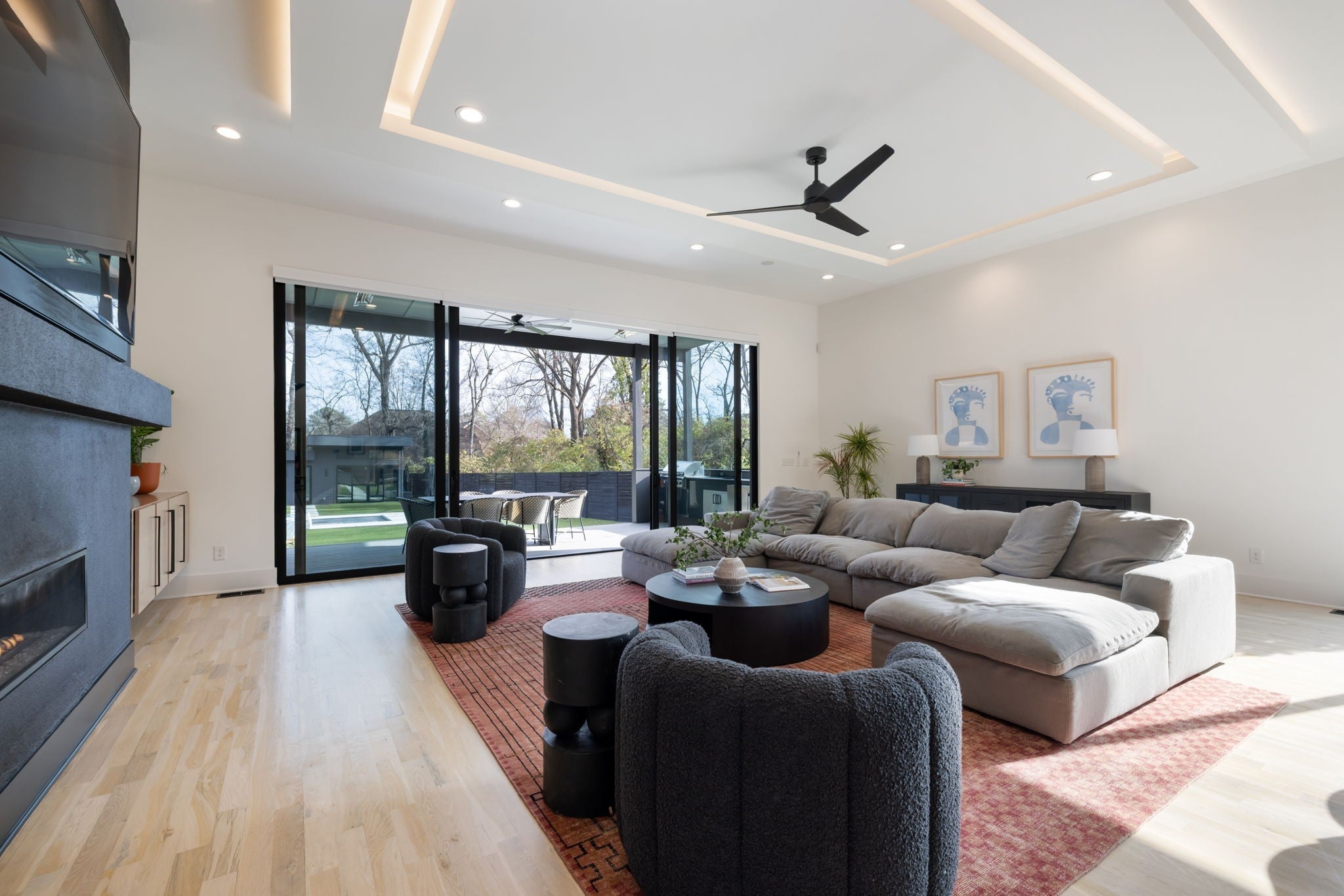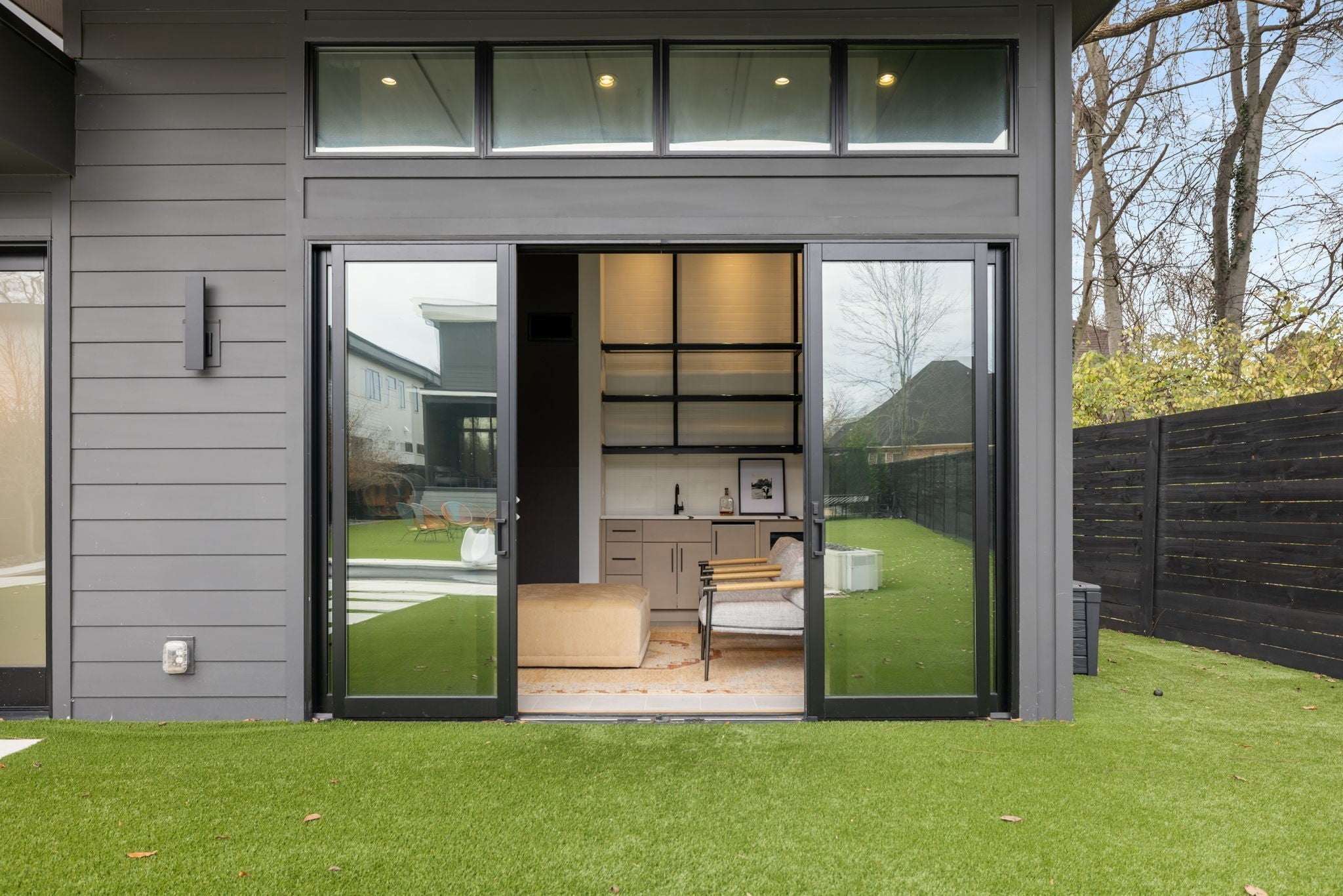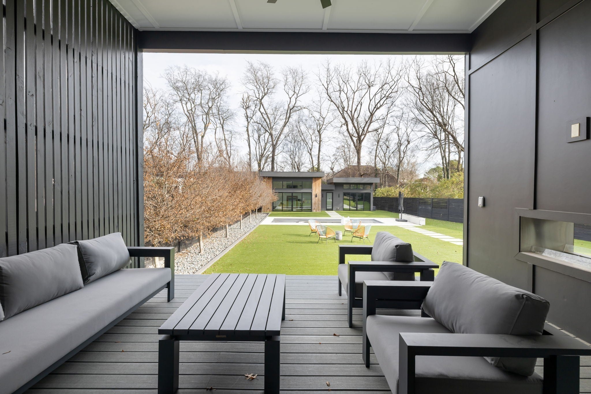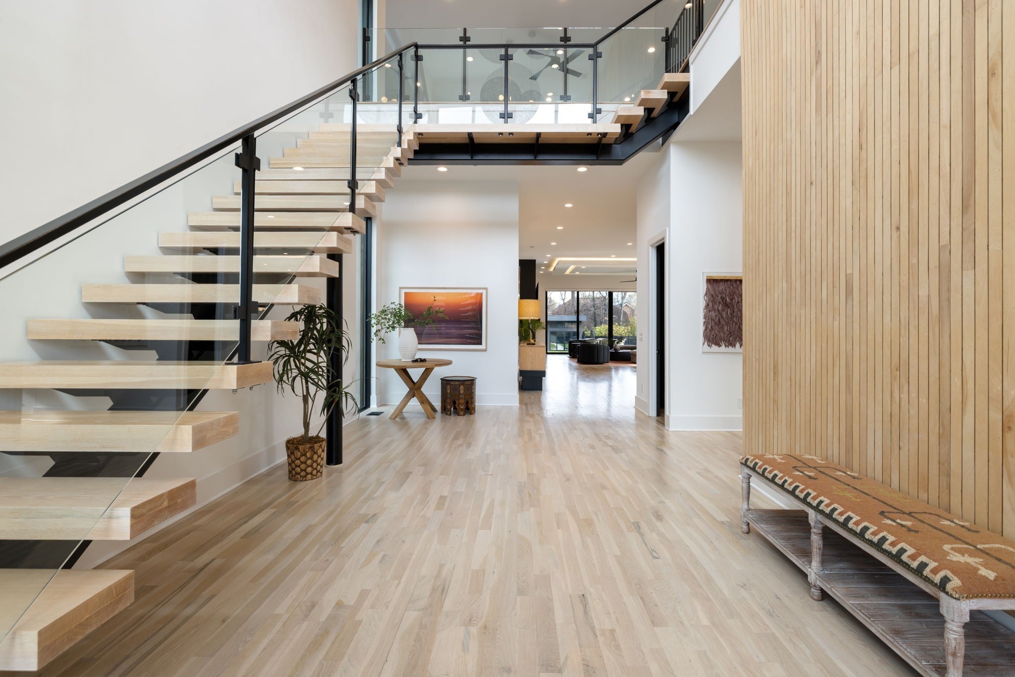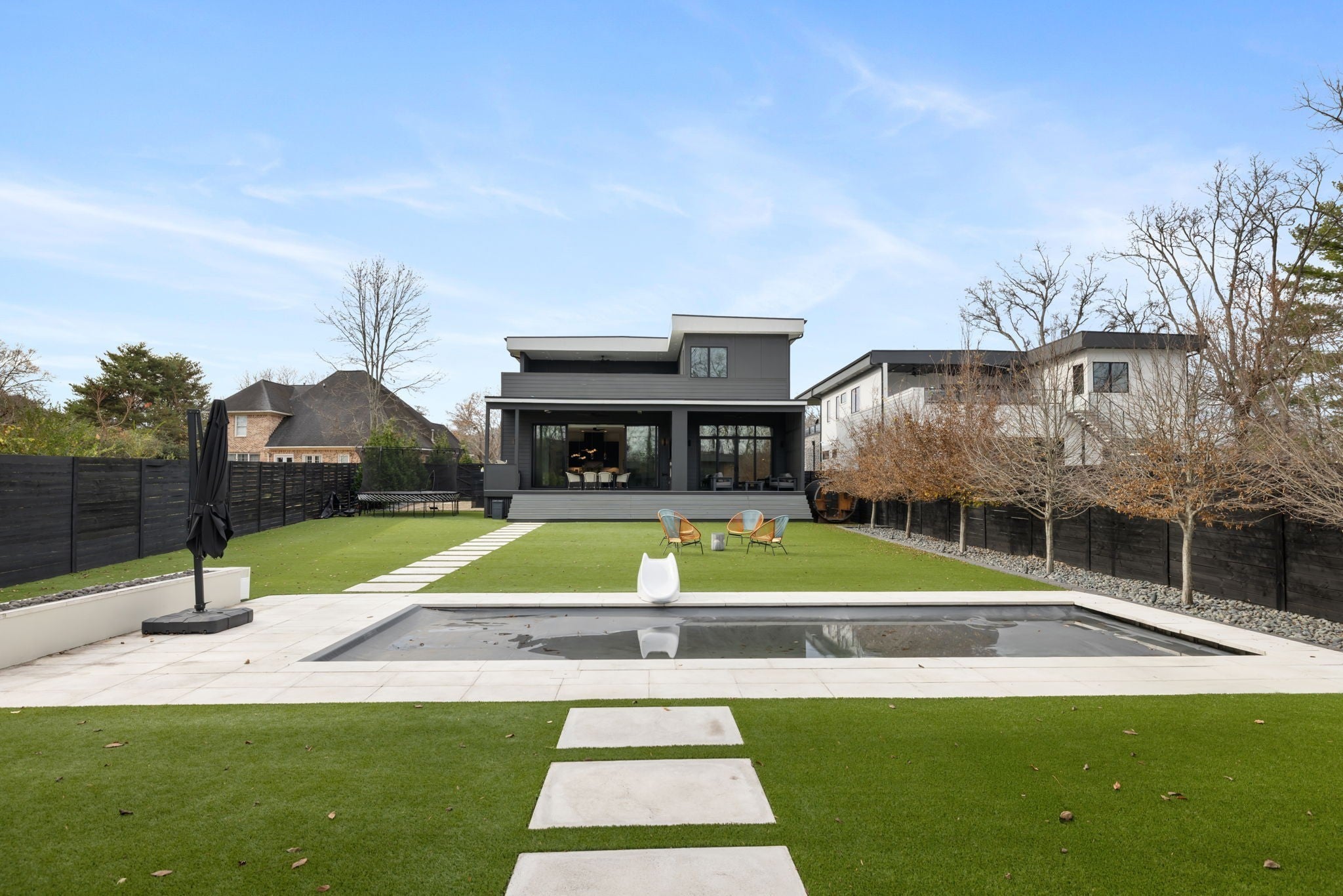 Welcome to this gated Richland Building Partners masterpiece in the heart of Nashville — a modern interpretation of timeless luxury where clean lines, warm textures, and effortless sophistication define every space. Set behind a secured entry and a 10-foot privacy fence, this residence blends contemporary design with inviting natural elements, creating a tranquil retreat just moments from the city’s premier shopping, dining, and entertainment. From the moment you step inside, the architectural style reveals itself through its striking floating staircase, expansive windows, and intentional sightlines that frame the home’s open, airy layout. The interiors showcase a refined modern aesthetic: rich hardwoods, designer tilework, and sculptural lighting combine to create spaces that feel both elevated and livable, with a flow designed for seamless gathering and quiet retreat. The chef’s kitchen continues this modern-luxury theme with premium Fisher & Paykel appliances, sleek cabinetry, and an adjoining scullery complete with a built-in espresso machine — a perfect blend of beauty and utility. The main-level primary suite mirrors the home’s design philosophy with a spa-inspired bath and a custom walk-in closet crafted with clean lines and calming finishes. Outdoors, the style carries through to a resort-like setting, where a Pebblesheen pool and spa sit at the center of the backyard’s minimalist, thoughtfully designed landscape. The dual-sided deck — complete with an outdoor kitchen and fireplace — extends the home’s architectural lines outward, while a peaceful garden softens the space with organic tranquility. The detached pool house reinforces the home’s modern versatility with a full bath, dedicated gym, and flexible studio ideal for a home office, creative work, or private guest quarters. With whole-home indoor/outdoor surround sound and a gated drive, this residence embodies modern luxury, architectural intention, and private, elevated living — all in the heart of Na