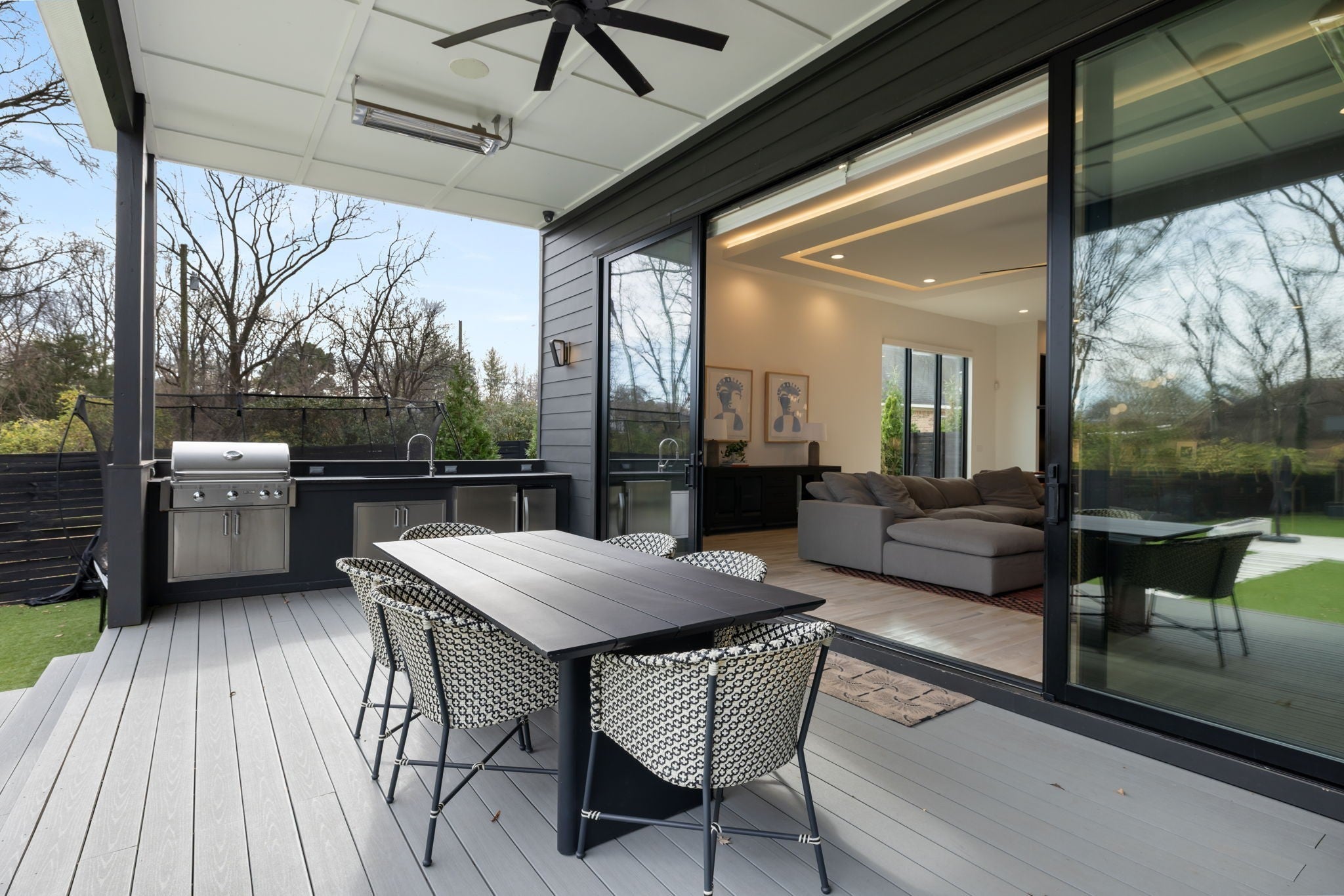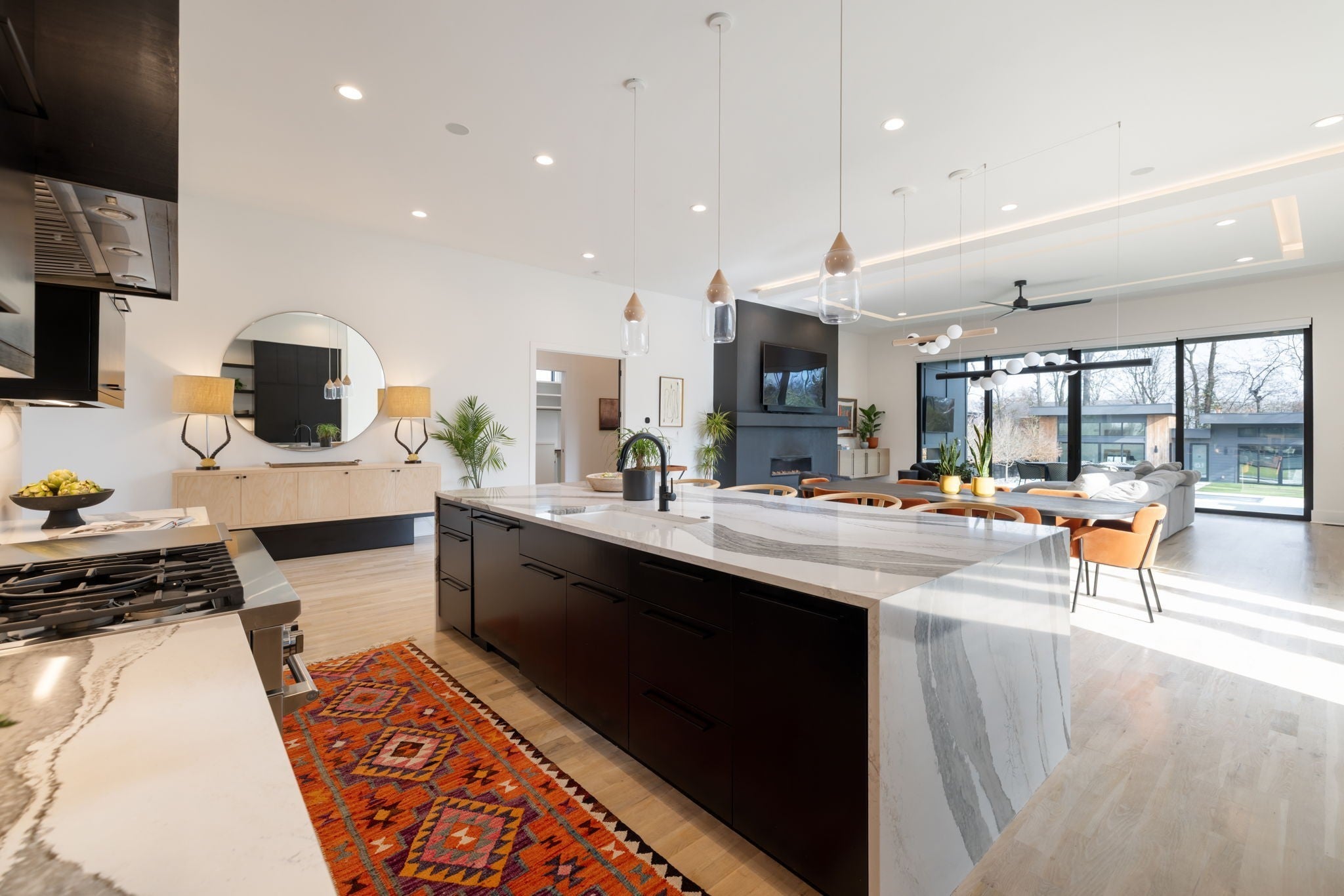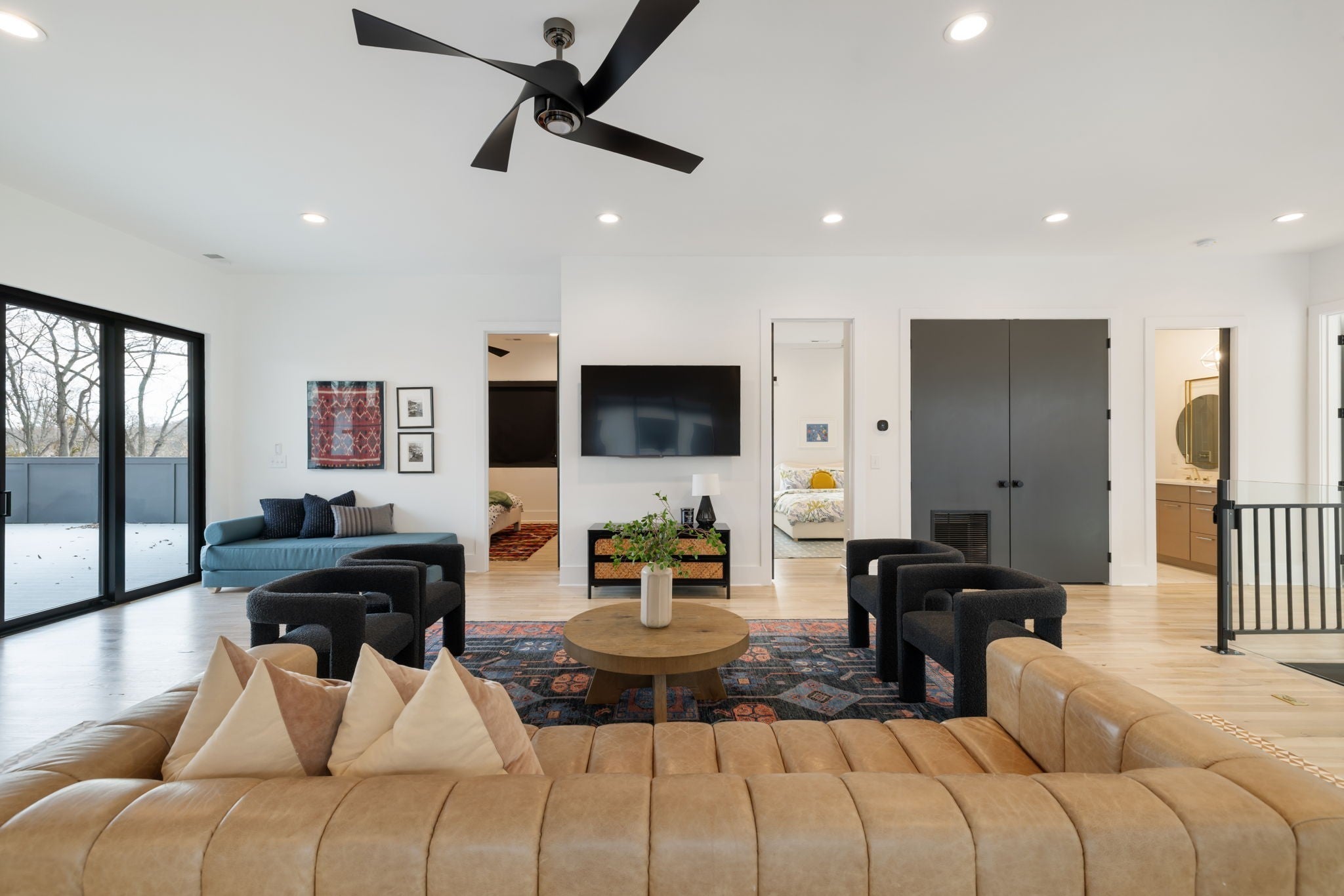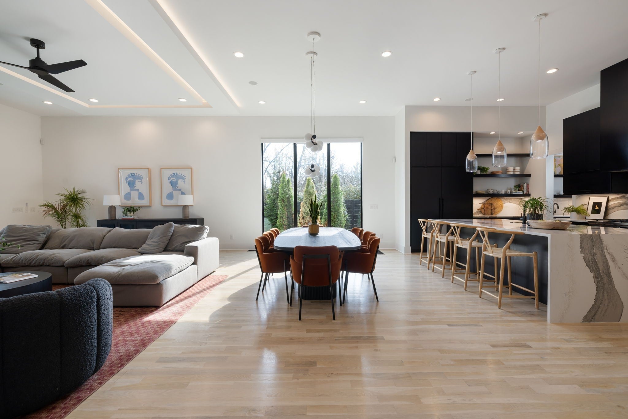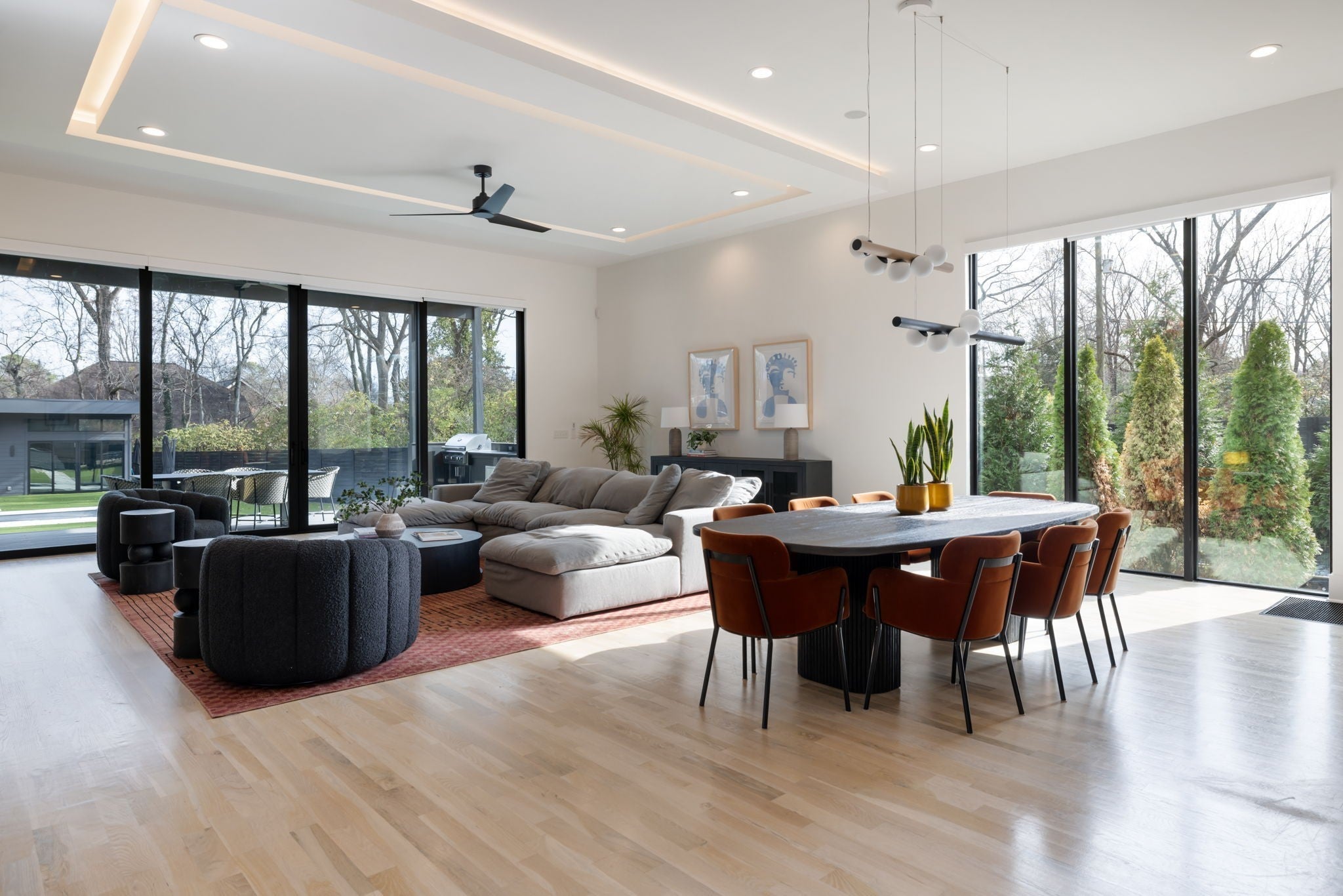 Welcome to this gated Richland Building Partners masterpiece in the heart of Nashville — a modern interpretation of timeless luxury where clean lines, warm textures, and effortless sophistication define every space. Set behind a secured entry and a 10-foot privacy fence, this residence blends contemporary design with inviting natural elements, creating a tranquil retreat just moments from the city’s premier shopping, dining, and entertainment. From the moment you step inside, the architectural style reveals itself through its striking floating staircase, expansive windows, and intentional sightlines that frame the home’s open, airy layout. The interiors showcase a refined modern aesthetic: rich hardwoods, designer tilework, and sculptural lighting combine to create spaces that feel both elevated and livable, with a flow designed for seamless gathering and quiet retreat. The chef’s kitchen continues this modern-luxury theme with premium Fisher & Paykel appliances, sleek cabinetry, and an adjoining scullery complete with a built-in espresso machine — a perfect blend of beauty and utility. The main-level primary suite mirrors the home’s design philosophy with a spa-inspired bath and a custom walk-in closet crafted with clean lines and calming finishes. Outdoors, the style carries through to a resort-like setting, where a Pebblesheen pool and spa sit at the center of the backyard’s minimalist, thoughtfully designed landscape. The dual-sided deck — complete with an outdoor kitchen and fireplace — extends the home’s architectural lines outward, while a peaceful garden softens the space with organic tranquility. The detached pool house reinforces the home’s modern versatility with a full bath, dedicated gym, and flexible studio ideal for a home office, creative work, or private guest quarters. With whole-home indoor/outdoor surround sound and a gated drive, this residence embodies modern luxury, architectural intention, and private, elevated living — all in the heart of Na