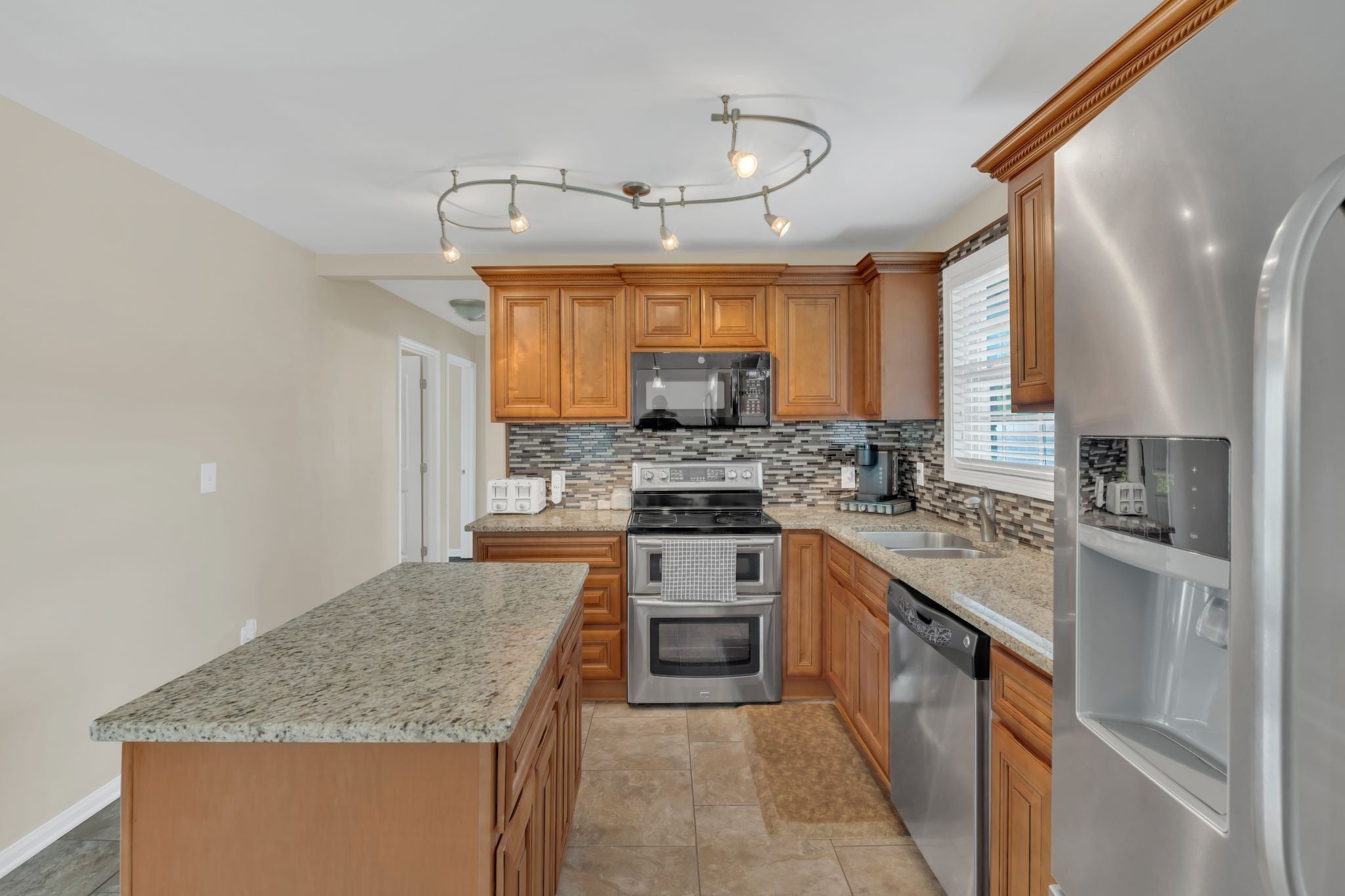 - Double Oven, Electric Oven, Electric Range, Dishwasher, Disposal, Microwave, Refrigerator, Stainless Steel Appliance(s)