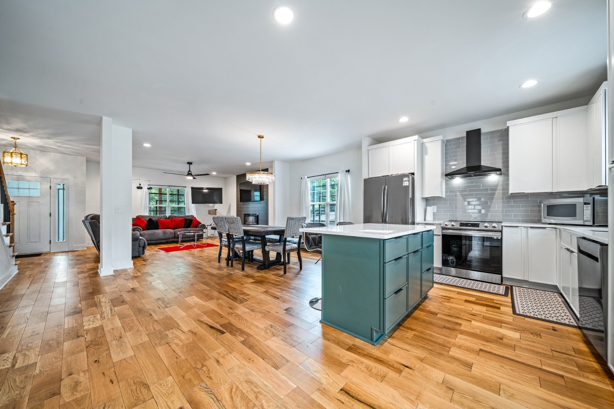 Well maintained, elegant and spacious four bedroom, three bathroom house with an open floor concept sitting on half acre lot. The house features the primary bedroom suite on the first floor, a modern kitchen with stainless steel appliances, hardwood floors, electric fireplace, custom closets, and a large backyard.