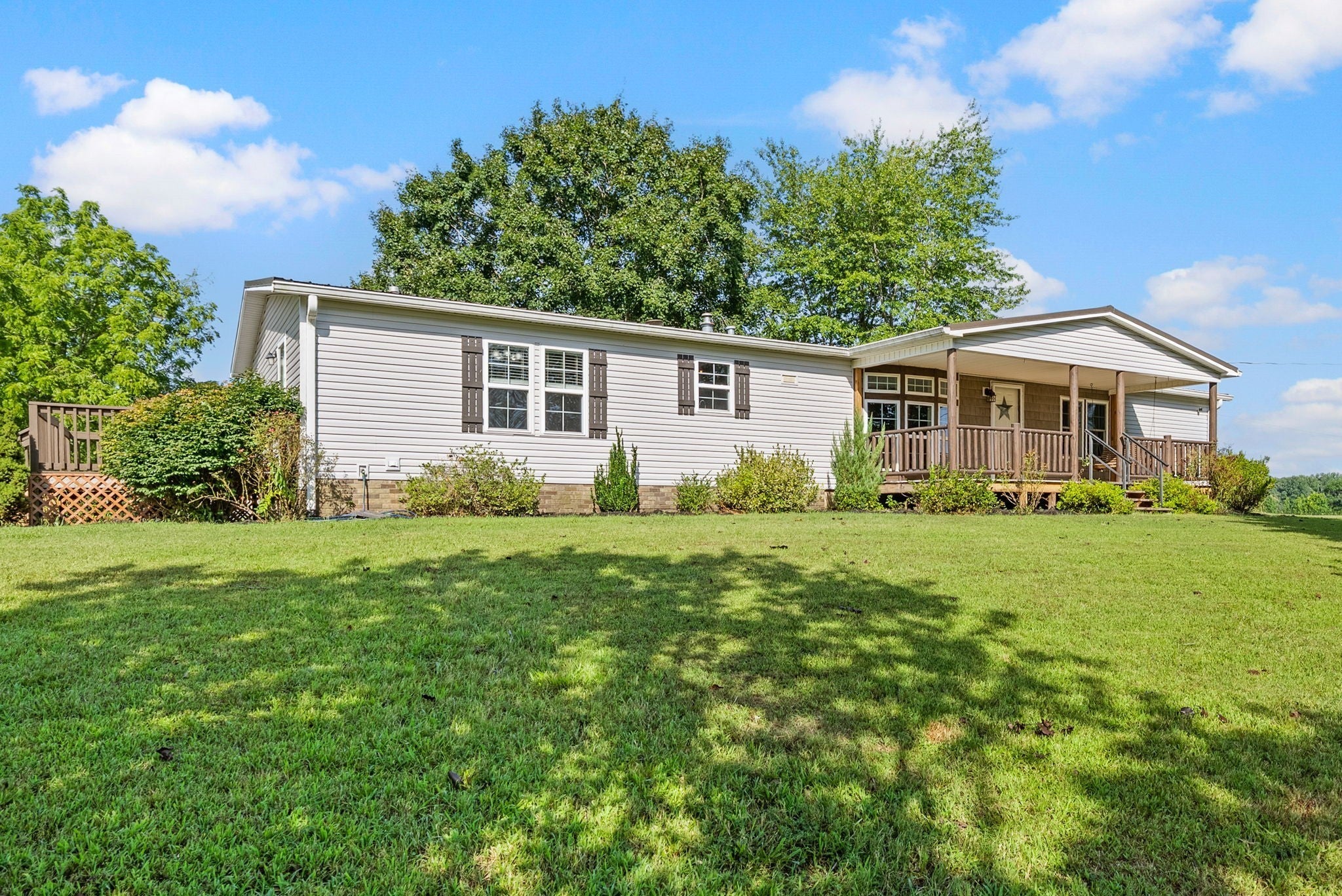This picture perfect manufactured home on 7.9 level acres has so much to offer. Already setup for animals, outdoor living, your dream mini farm and high speed internet! With the right offer, you can keep a few goats and chickens! Inside features include knotty pine walls, updated LVT flooring, faux stone fireplace, and a large kitchen with pantry. The master bedroom is massive and has two separate bathrooms joined by a walk-in closet. The front of the house is blessed with a massive covered porch lined with log spindles and a metal roof. Outside offers fenced in pastures with shelters, a storage building, shed, and chicken coop, as well as a shooting range built toward the rear of the property. Conveniently located for Nashville or Clarksville commuters—your country dream awaits!