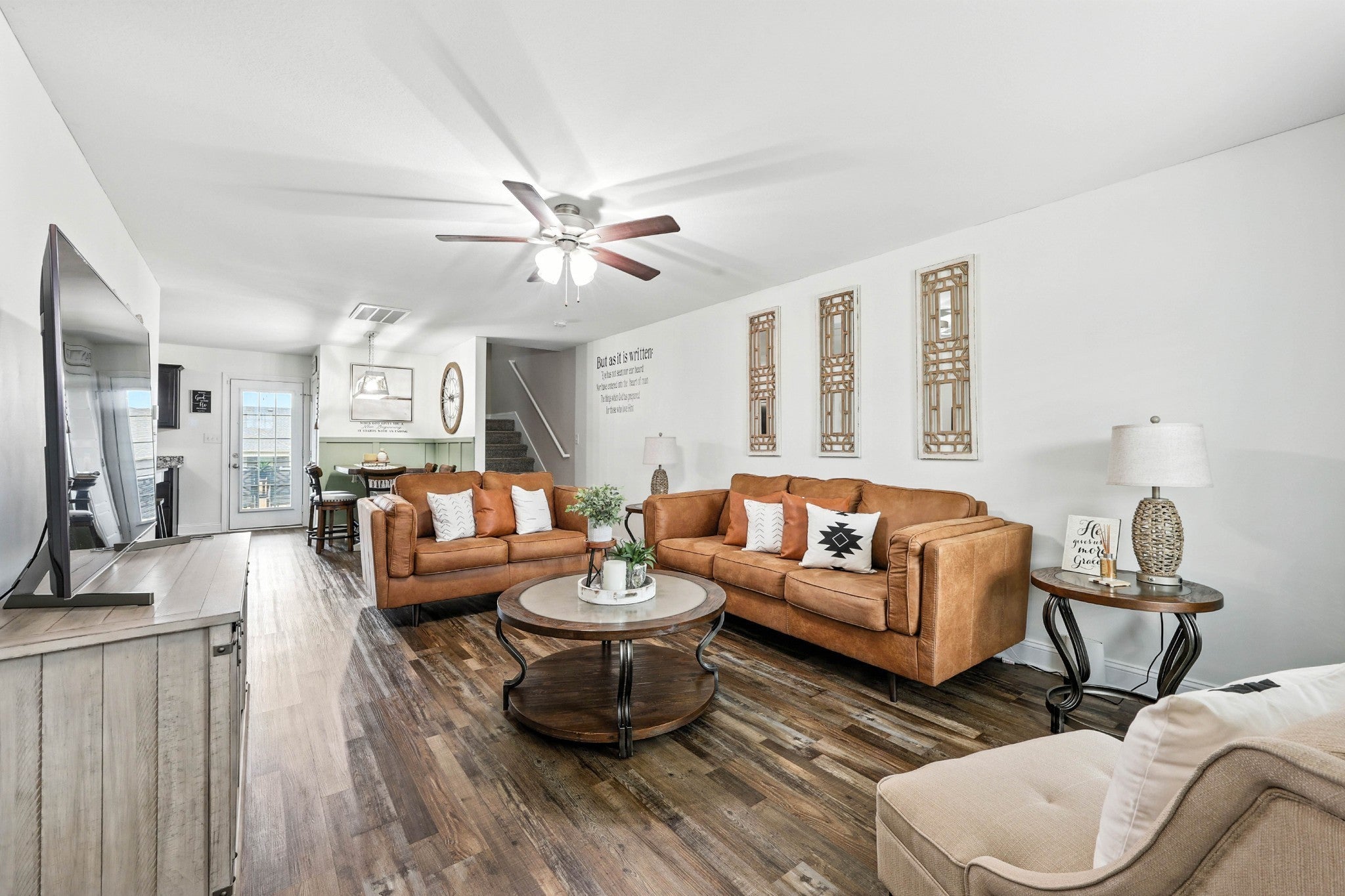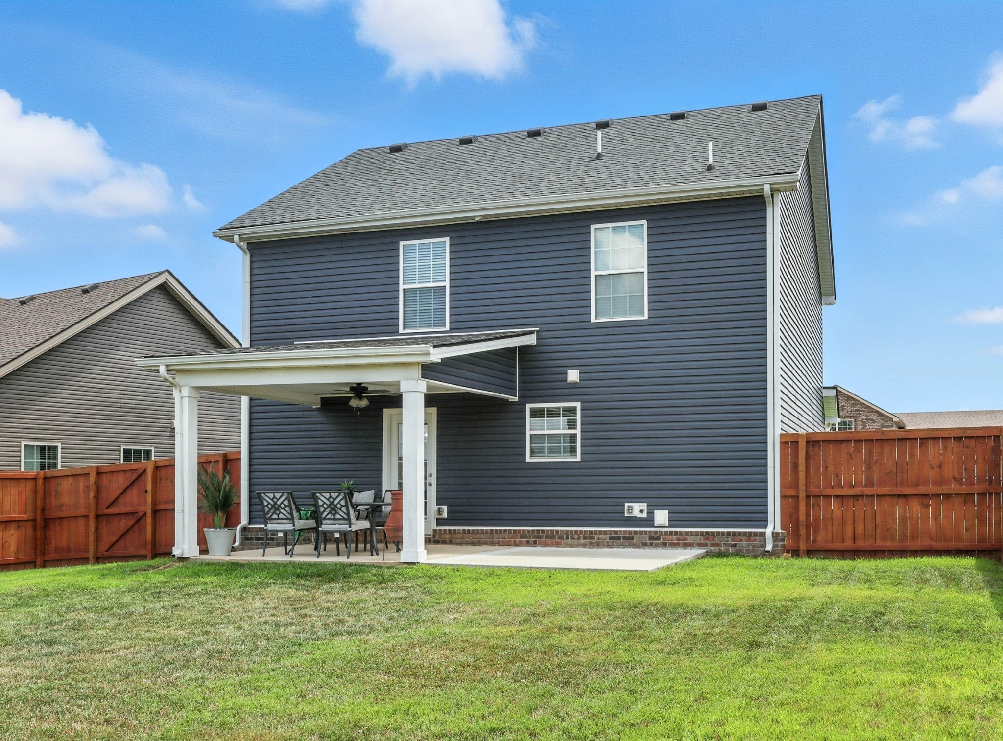 This stunning home features charming brick with vinyl siding boasting 3 spacious bedrooms and 2.5 baths . Inside you will find wood flooring , a large great room that opens to a dining room or cozy breakfast nook. Perfect for entertaining or relaxing. The layout includes a separate laundry room for added convenience a 2 car garage. step outside to a covered patio with an added extension ideal for outdoor entertaining. A privacy fence encloses the backyard offering peace and privacy . Call for a private showing