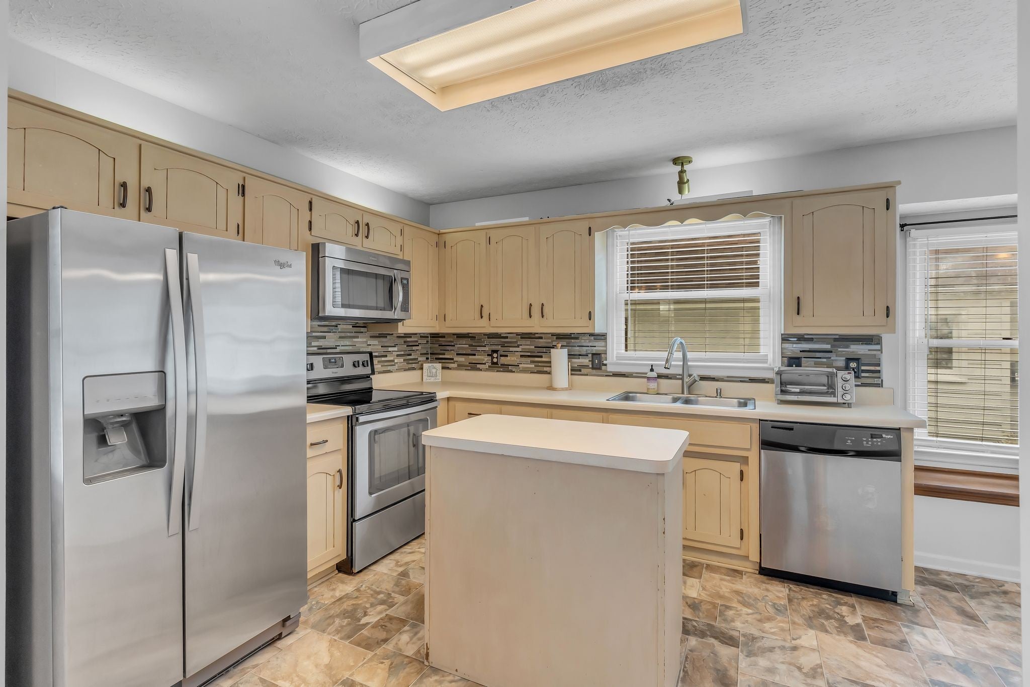 - Electric Oven, Electric Range, Dishwasher, Disposal, Dryer, Microwave, Refrigerator, Stainless Steel Appliance(s), Washer