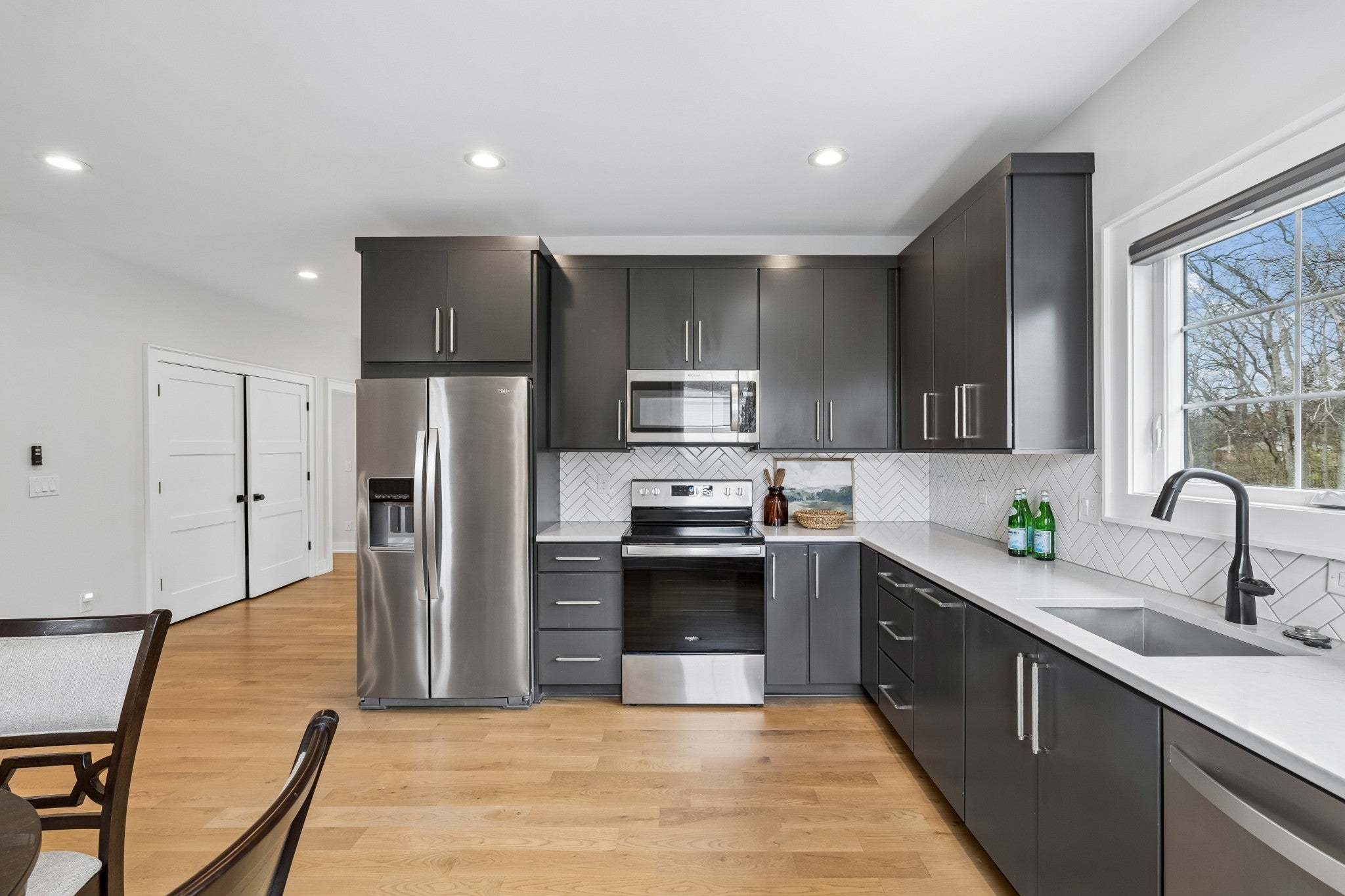- Electric Range, Gas Range, Dishwasher, Disposal, Dryer, Freezer, Microwave, Refrigerator, Stainless Steel Appliance(s), Washer