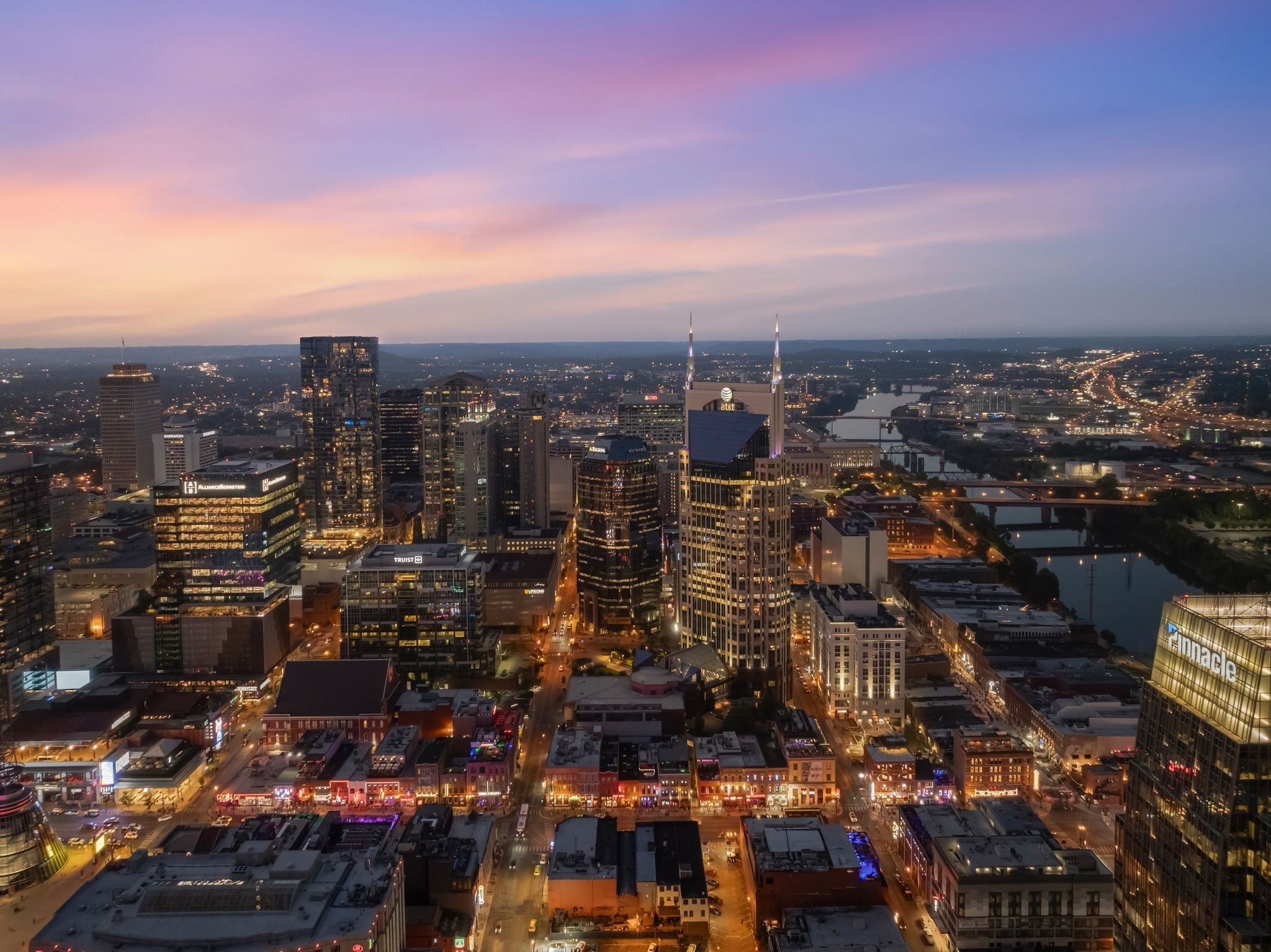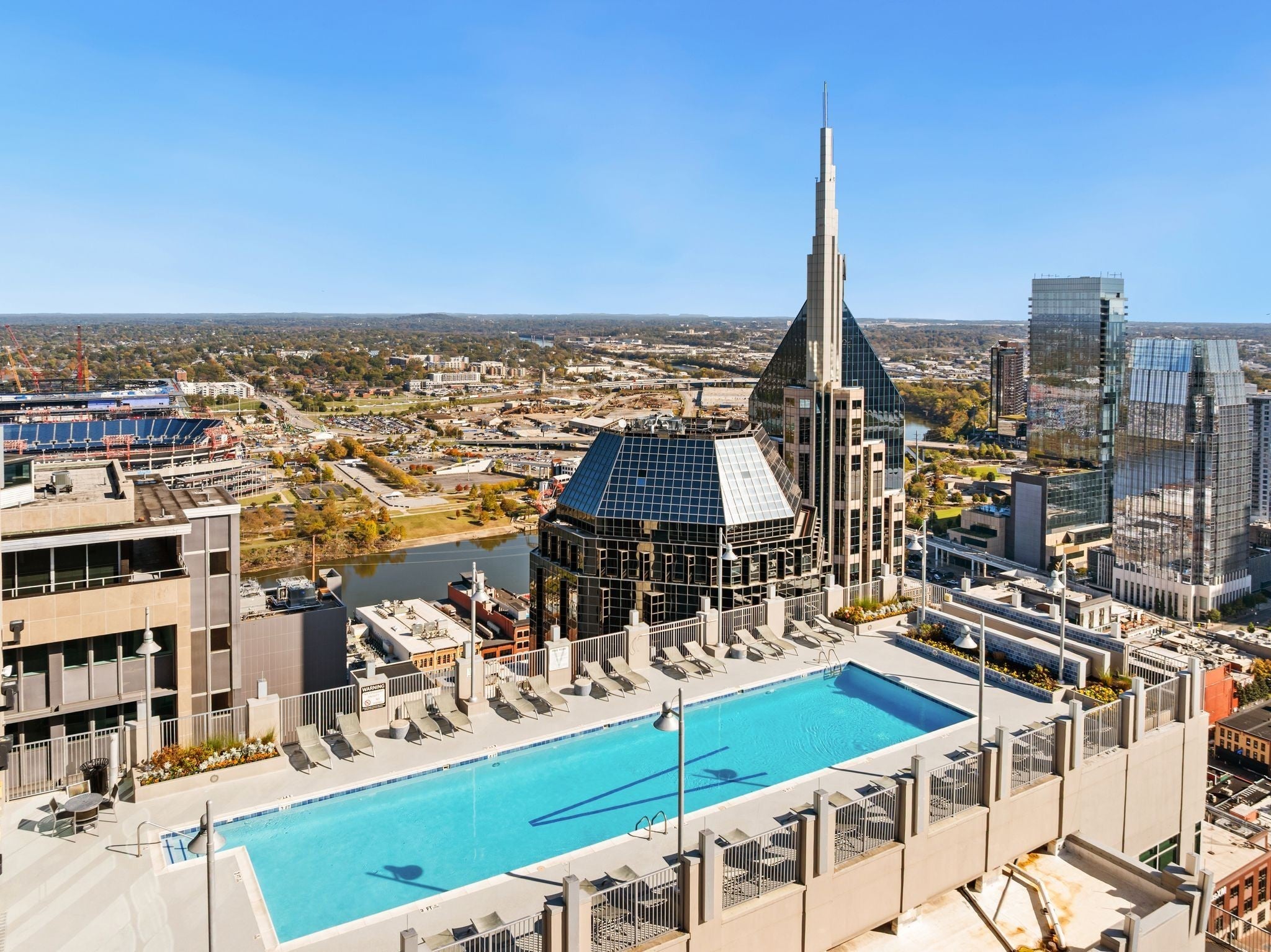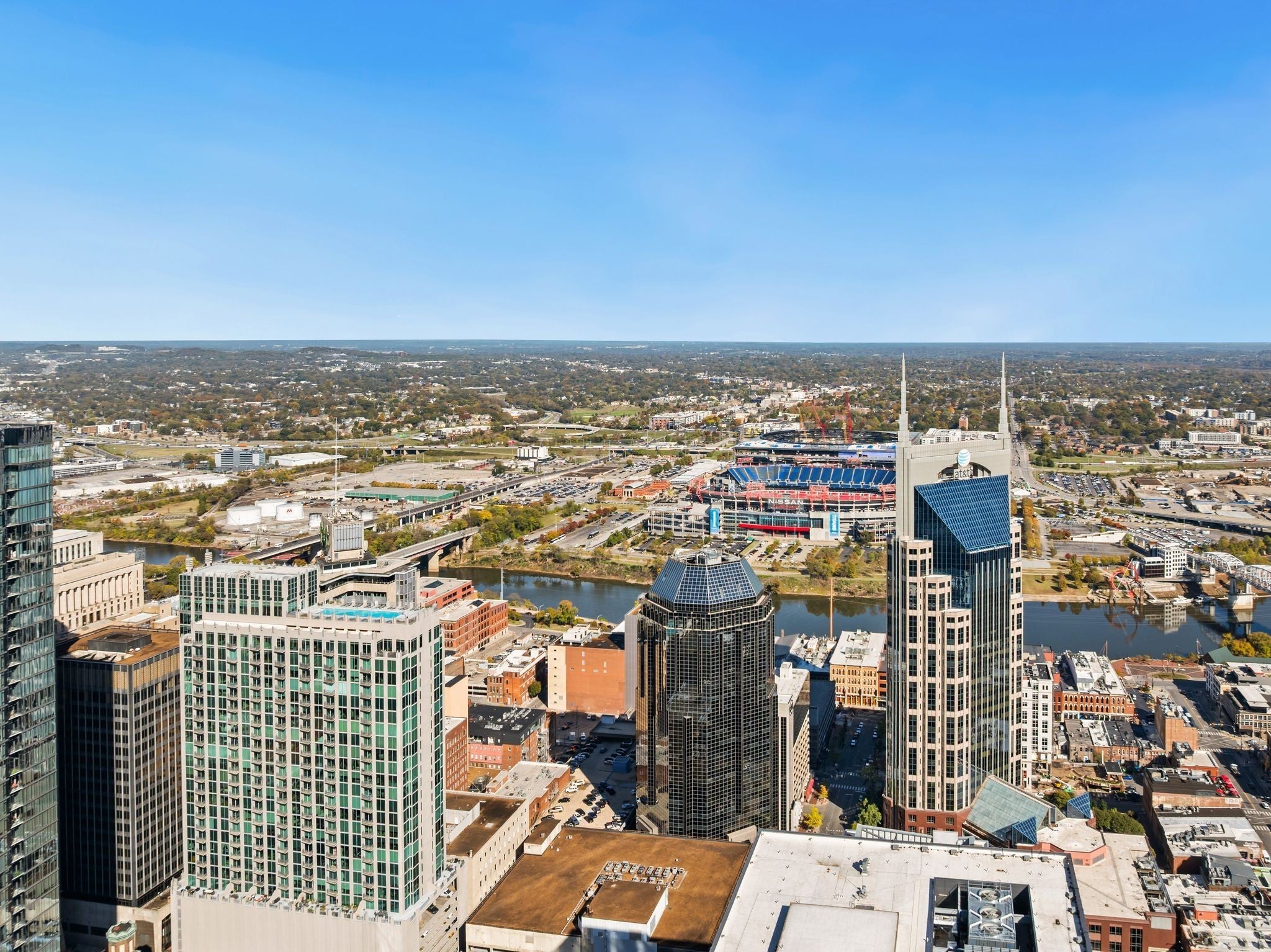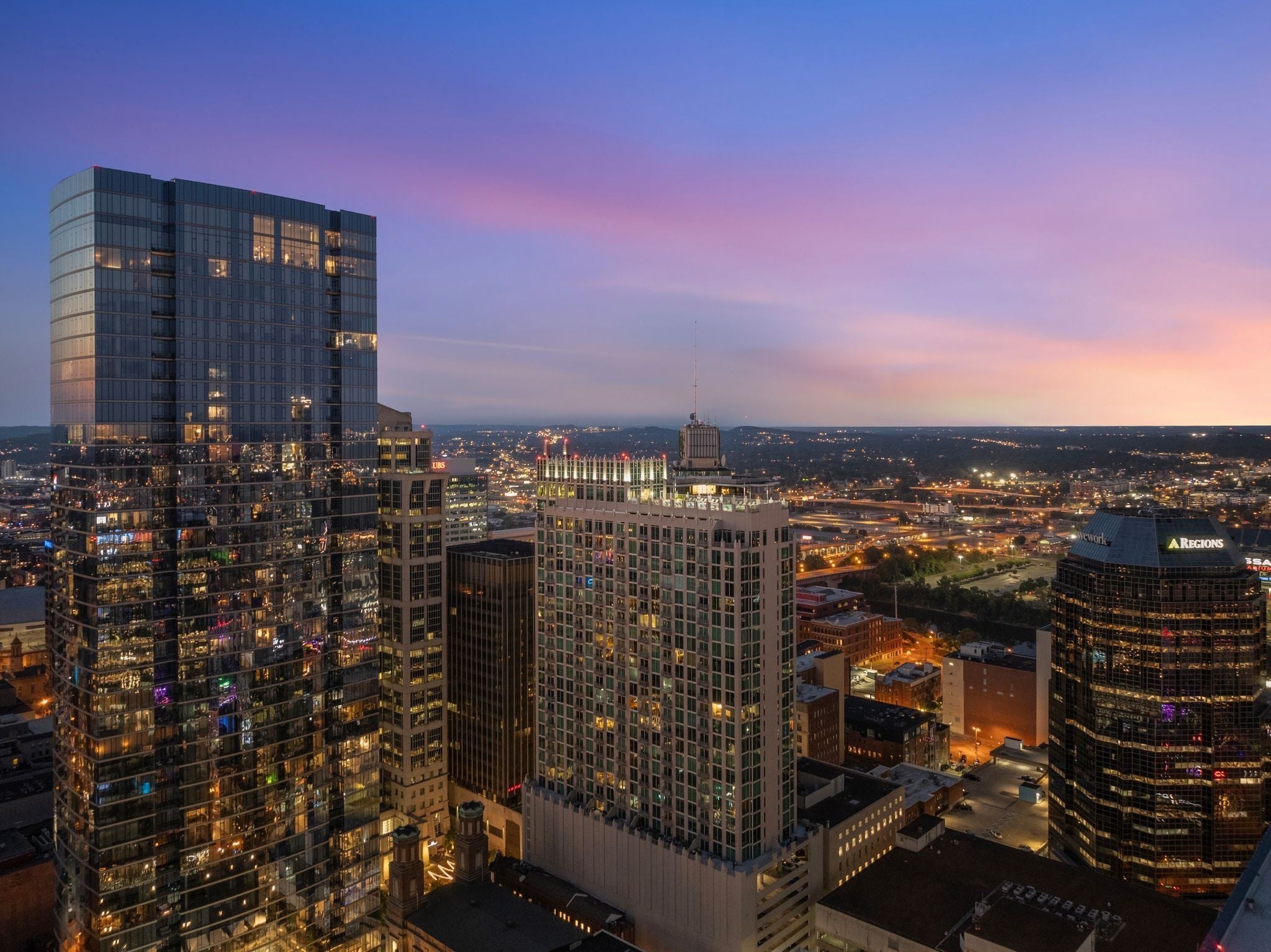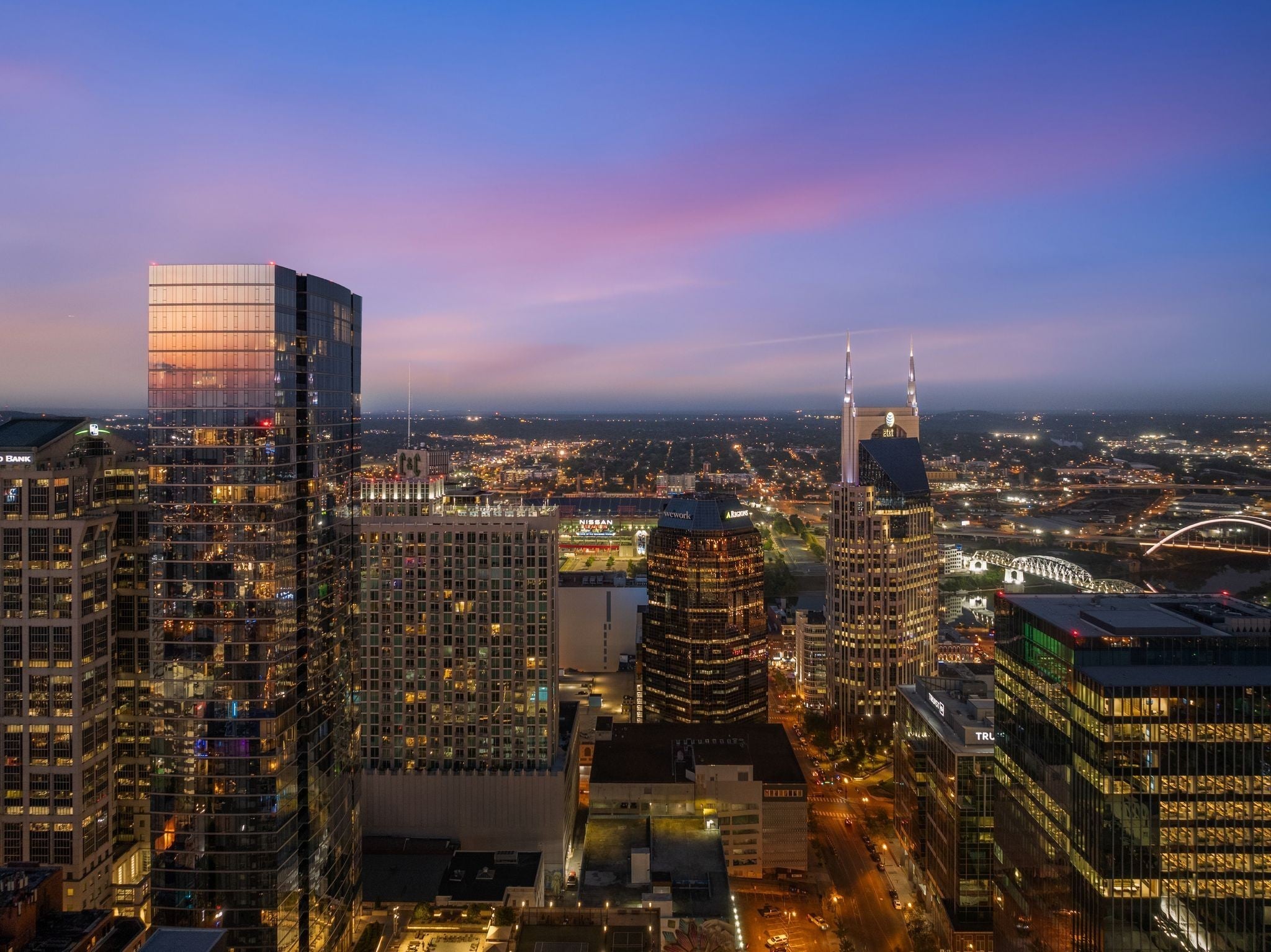 This two bedroom, corner unit has incredible views from every room with incredible floor-to-ceiling windows. This open concept living condo is filled with natural light and was recently updated with new floors, fresh paint, upgraded light fixtures and new countertops. The pet-friendly Viridian building is filled with amenities including a 24/7 concierge, rooftop pool and fitness center, rooftop club space and more. Walkable to Printers Alley, Bridgestone, Ryman Auditorium, Fifth & Broad, and some of the city’s best restaurant scenes, this is a rare opportunity to have luxury downtown living at an unbeatable price. This unit includes two parking spaces just steps away from the elevator!