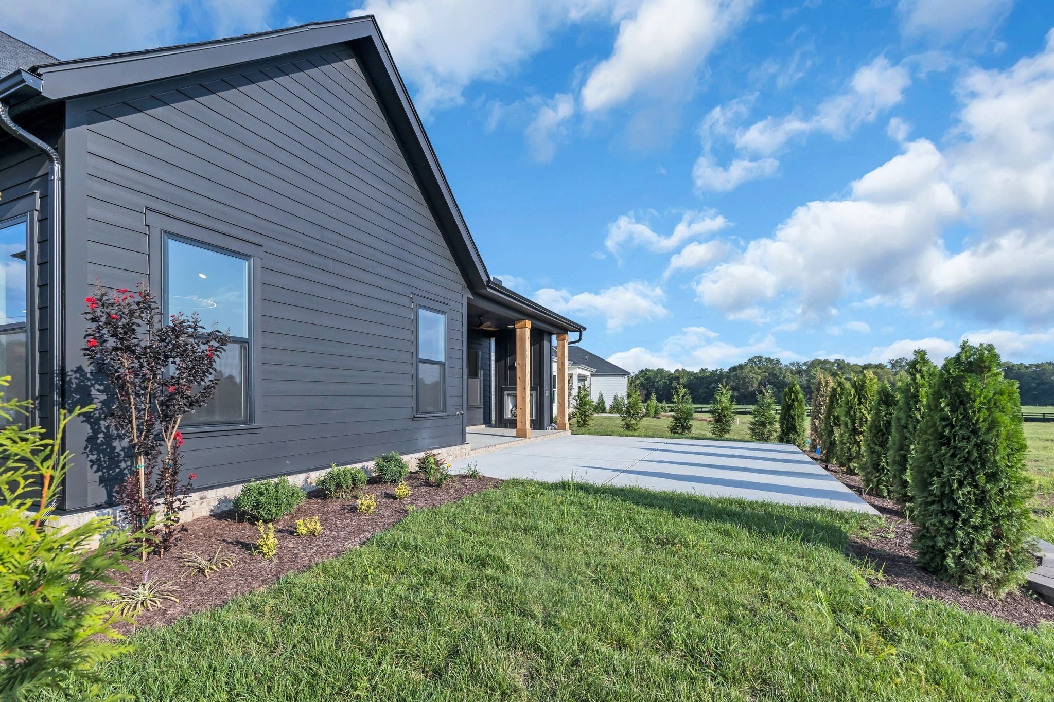 Tucked beneath quiet winter skies and framed by rolling woods and open fields, Fairhaven is an intimate, gated enclave of just 49 homesites in the heart of charming Thompson’s Station. A rare blend of privacy and convenience, this picturesque community offers a peaceful countryside setting with easy access to I-840 and I-65—placing you minutes from Historic Downtown Franklin and only 35 minutes from the energy of Nashville. The Landon Floorplan on Homesite 149 invites you to embrace every season. Mornings begin with soft light spilling across wooded ridges, afternoons unfold with sweeping views of neighboring farms, and evenings end beside glowing fireplaces under crisp, star-filled skies. A short stroll leads to the Bethesda Rec Center, an exclusive Williamson County amenity featuring new outdoor sports fields and courts, with an indoor complex coming soon that will include a pool, fitness center, racquetball, library, and more. A scenic walking path and bridge will soon connect Fairhaven directly to the Rec Center.Inside, this beautifully appointed 4-bedroom, 3.5-bath home offers a main-level primary suite and private study, creating a comfortable retreat for everyday living. The open-concept design centers around a chef’s kitchen with oversized islands, KitchenAid appliances, double ovens, custom plaster hood, quartz backsplash, butler’s pantry, and abundant storage—perfect for gathering, entertaining, and cozy winter nights in. Thoughtful upgrades elevate the home, including waterfall island, judges paneling in the study , a custom fireplace, curated lighting, and a covered back deck ideal for enjoying cool evenings. Additional highlights include full sodded and irrigated yard, tankless water heater, all wood shelving and a charming gas lantern welcoming you home. Luxury, warmth, and timeless living—where winter feels just a little more magical.