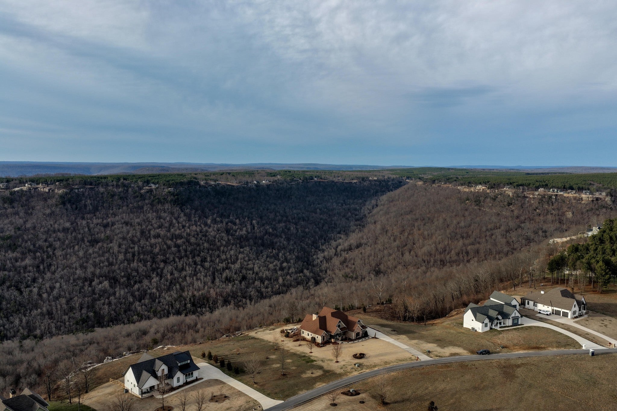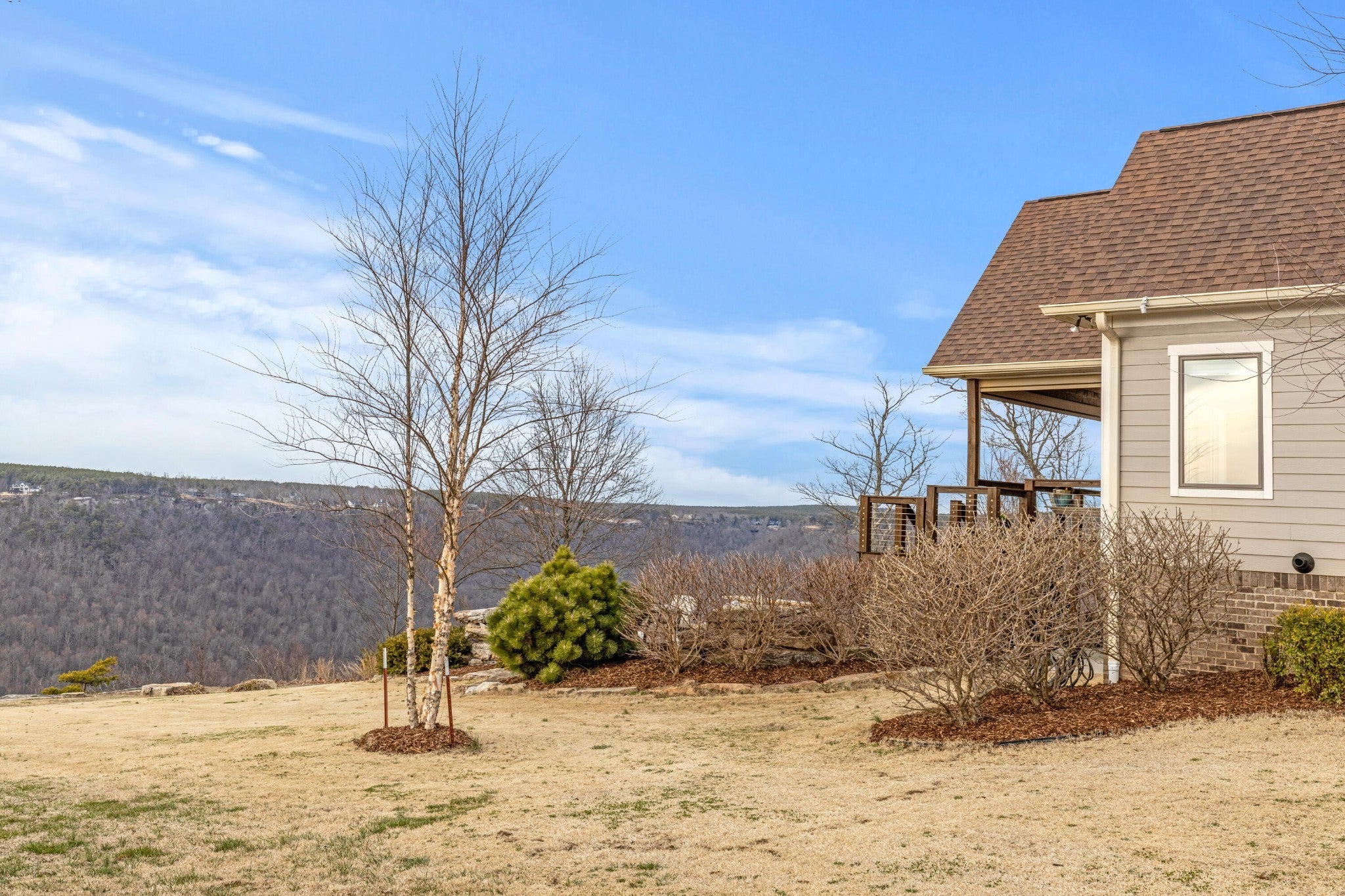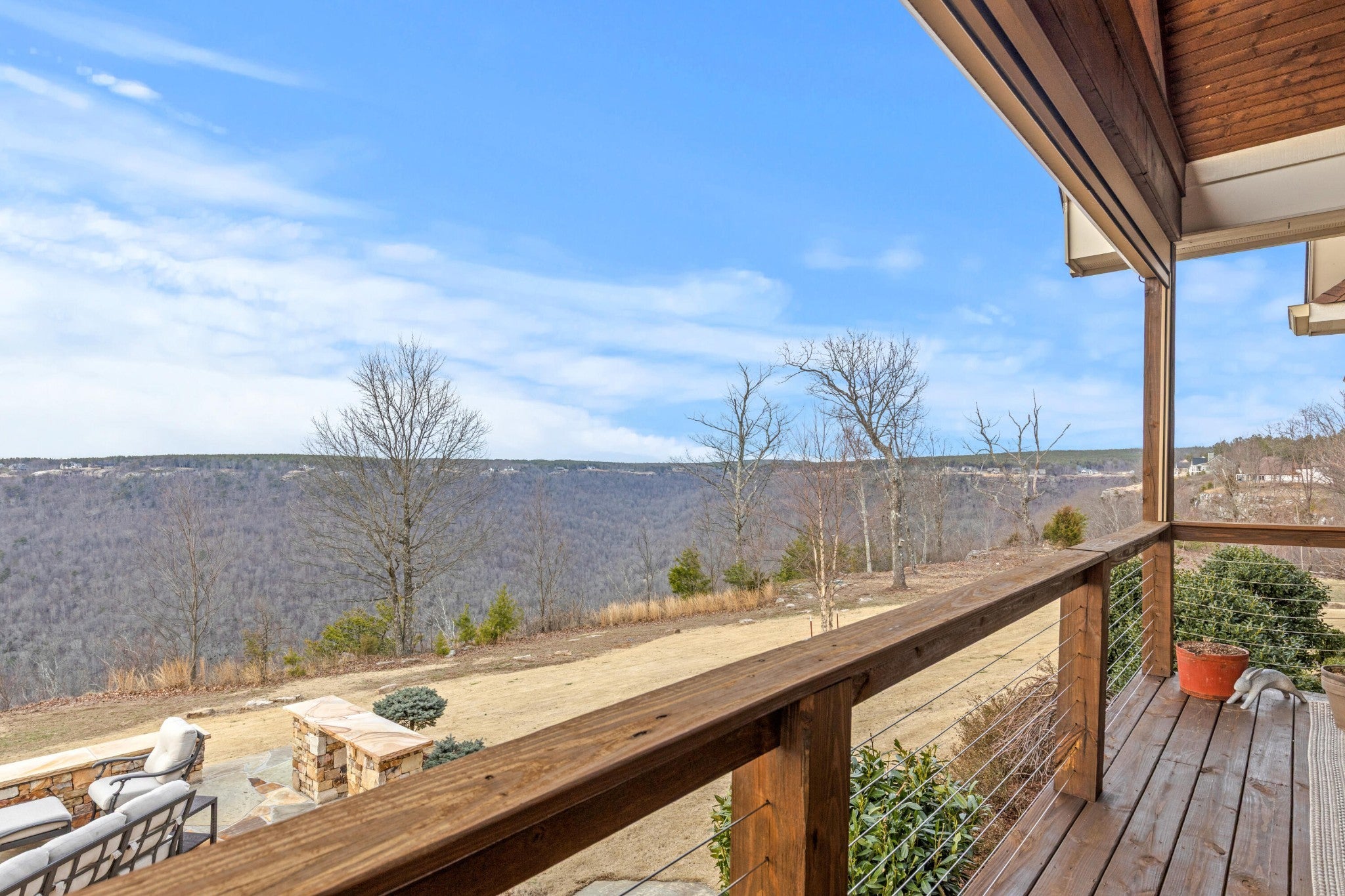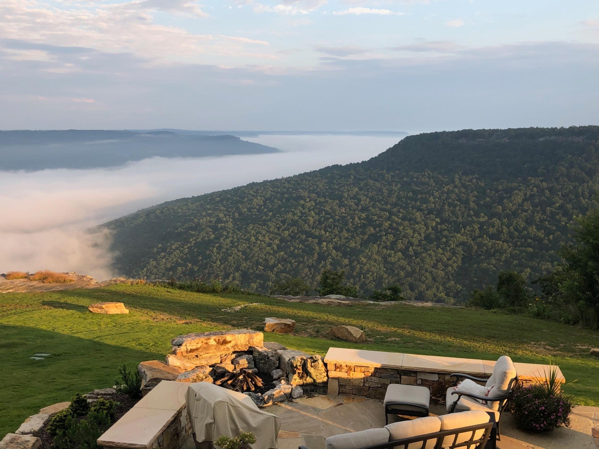 Endless Mountain Views from a Quiet Bluff Retreat Extraordinary Bluff Estate | 325+ Ft Brow Frontage, Quiet Mountain Setting, 1.8 Acres, Sweeping Plateau & Valley Views Perched along one of the most coveted bluff lines in Jasper Highlands, 985 Sunset Circle offers a rare opportunity to experience luxury mountain living on 1.8 private acres with over 325 feet of exceptional brow frontage on a quiet mountain peninsula. From this extraordinary vantage point, breathtaking panoramic views unfold across the Cumberland Plateau and deep into the Sequatchie Valley, creating a dramatic landscape of rolling mountains, expansive skies, and unforgettable sunsets. Uniquely positioned on the brow, the property enjoys both inspiring sunrises and spectacular sunsets, filling the home with ever-changing mountain light throughout the day. Thoughtfully designed to capture the scenery, inspiring mountain views are enjoyed from many of the home's primary living spaces, creating a constant connection to the surrounding landscape. Designed to embrace its spectacular setting, the home features multiple outdoor living spaces positioned to capture the remarkable bluff views. Just off the living room, a covered bluff-side deck provides an elevated vantage point for enjoying the surrounding mountains and valley below. Vaulted hardwood ceilings and custom-designed motorized blinds create a comfortable setting for relaxing or entertaining while immersed in the scenery. Below the deck, a beautifully crafted flagstone patio offers an inviting outdoor retreat surrounded by the natural beauty of the bluff and enhanced by thoughtfully designed mature landscaping that complements the natural mountain setting. A dramatic gas fire pit crafted from locally sourced mountain rock creates the perfect setting for evening gatherings beneath the stars, while a custom cascading waterfall feature provides a striking natural centerpiece, its gentle flow adding a soothing soundtrack to this tranquil out