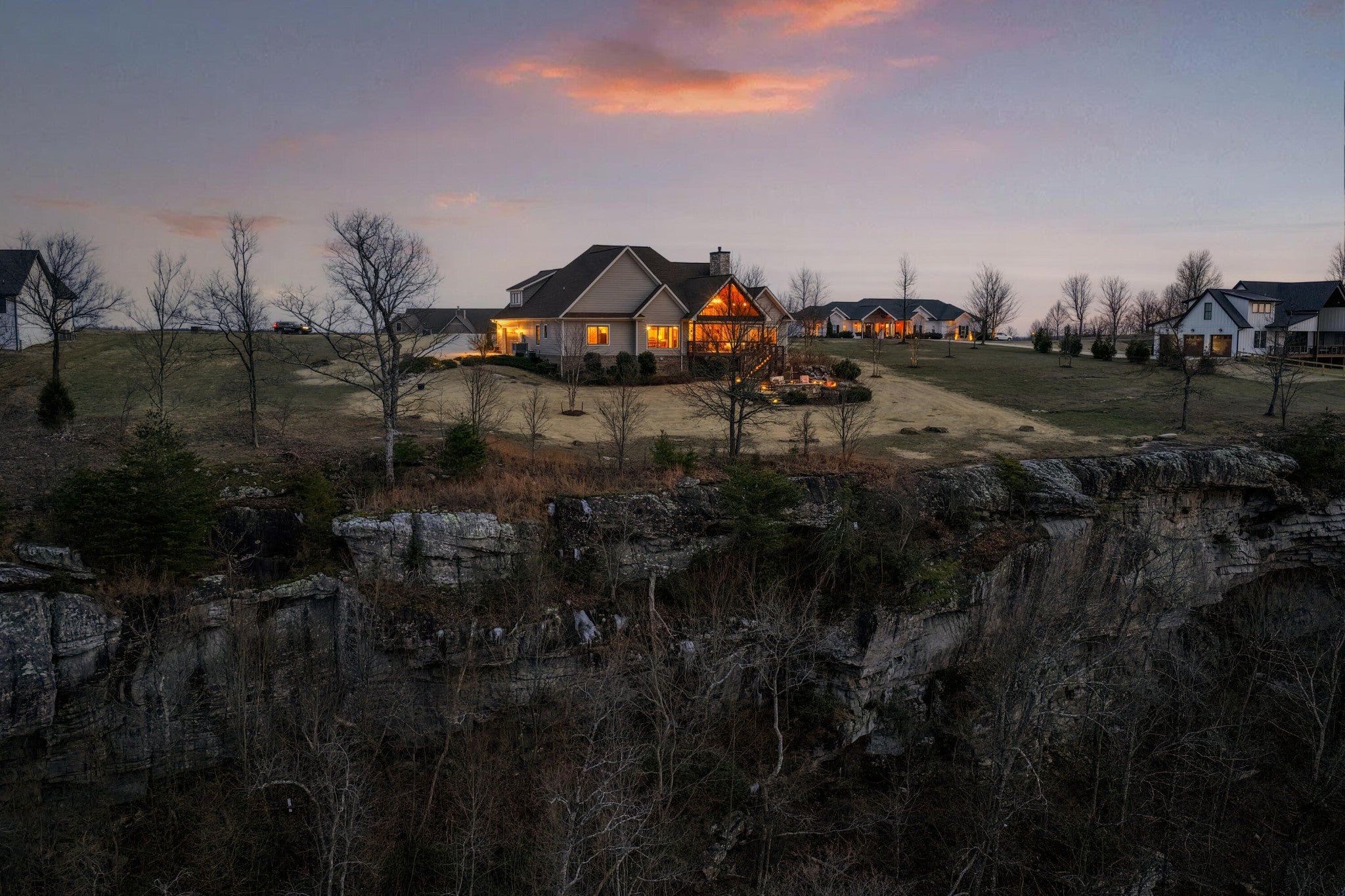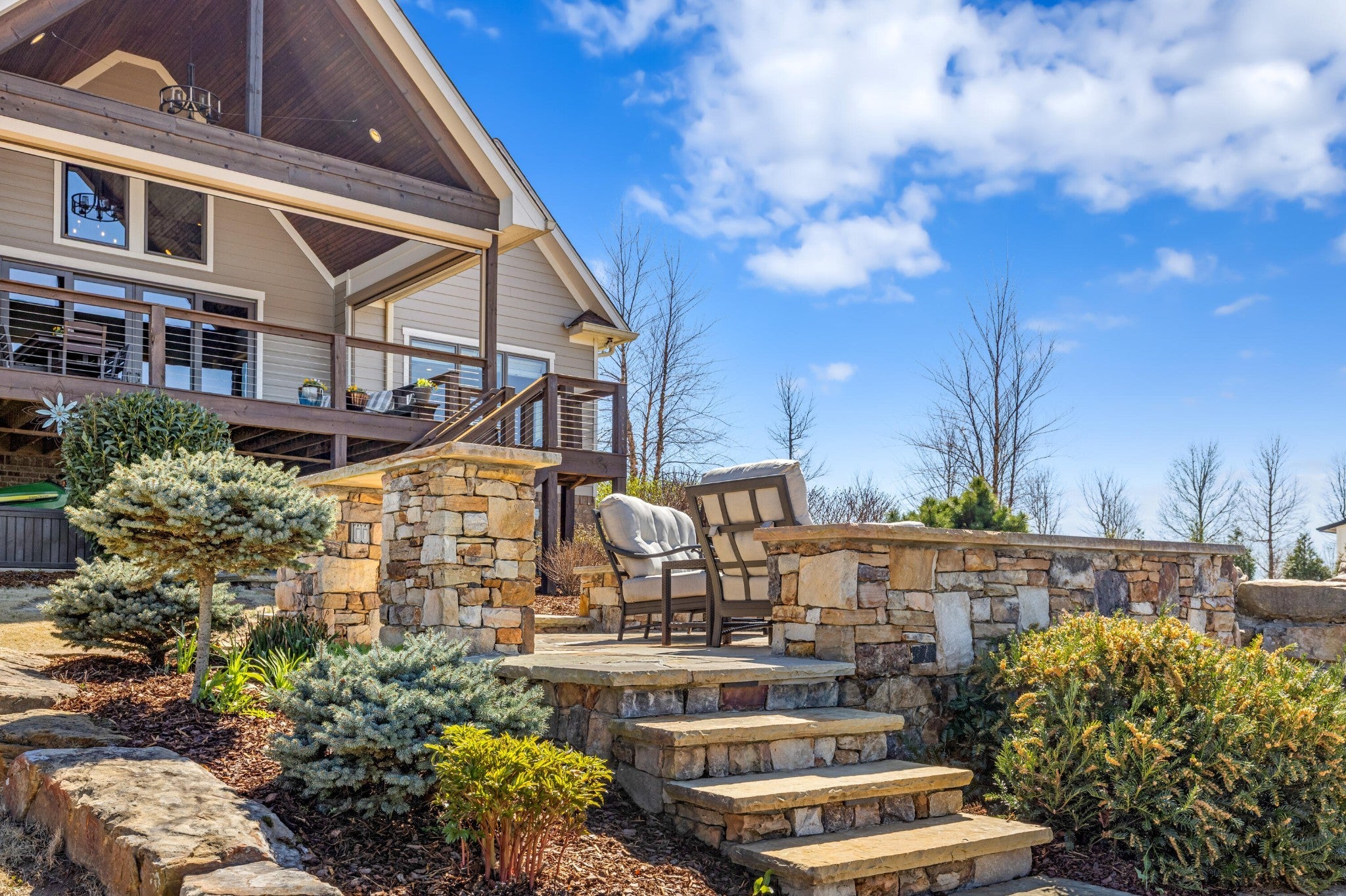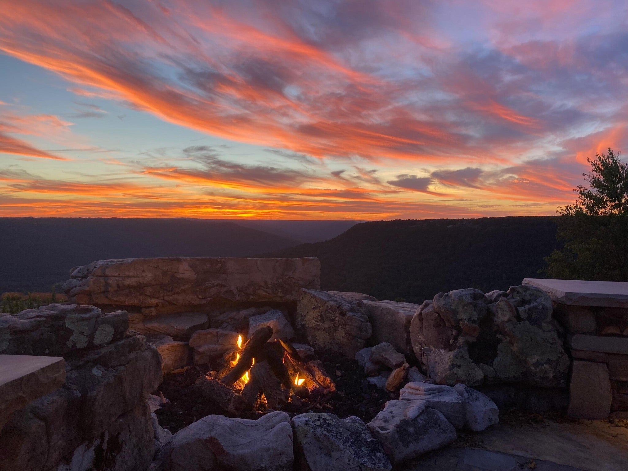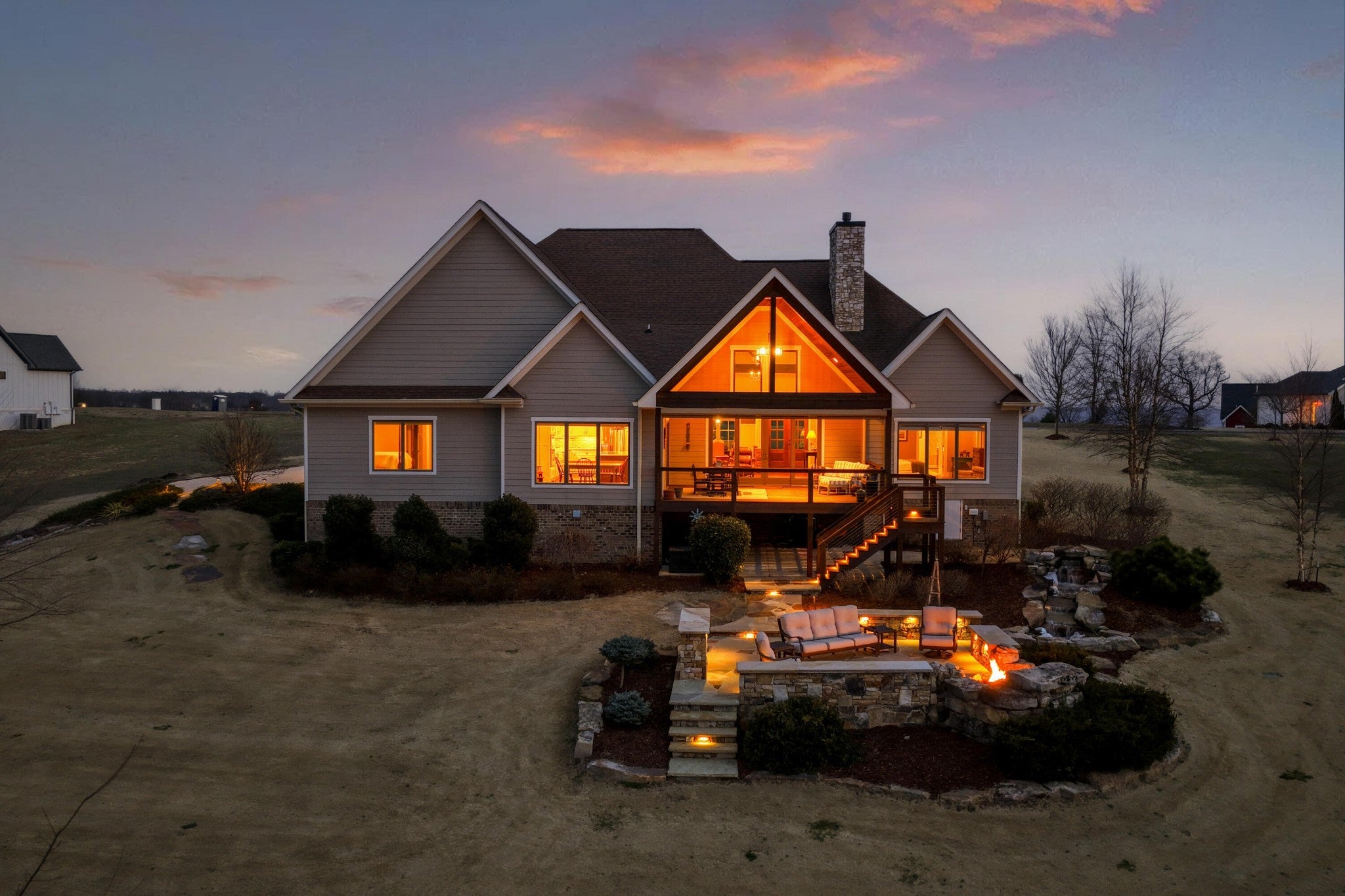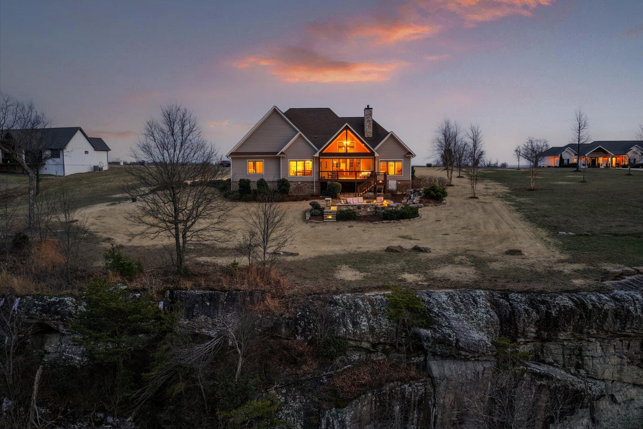 Endless Mountain Views from a Quiet Bluff Retreat Extraordinary Bluff Estate | 325+ Ft Brow Frontage, Quiet Mountain Setting, 1.8 Acres, Sweeping Plateau & Valley Views Perched along one of the most coveted bluff lines in Jasper Highlands, 985 Sunset Circle offers a rare opportunity to experience luxury mountain living on 1.8 private acres with over 325 feet of exceptional brow frontage on a quiet mountain peninsula. From this extraordinary vantage point, breathtaking panoramic views unfold across the Cumberland Plateau and deep into the Sequatchie Valley, creating a dramatic landscape of rolling mountains, expansive skies, and unforgettable sunsets. Uniquely positioned on the brow, the property enjoys both inspiring sunrises and spectacular sunsets, filling the home with ever-changing mountain light throughout the day. Thoughtfully designed to capture the scenery, inspiring mountain views are enjoyed from many of the home's primary living spaces, creating a constant connection to the surrounding landscape. Designed to embrace its spectacular setting, the home features multiple outdoor living spaces positioned to capture the remarkable bluff views. Just off the living room, a covered bluff-side deck provides an elevated vantage point for enjoying the surrounding mountains and valley below. Vaulted hardwood ceilings and custom-designed motorized blinds create a comfortable setting for relaxing or entertaining while immersed in the scenery. Below the deck, a beautifully crafted flagstone patio offers an inviting outdoor retreat surrounded by the natural beauty of the bluff and enhanced by thoughtfully designed mature landscaping that complements the natural mountain setting. A dramatic gas fire pit crafted from locally sourced mountain rock creates the perfect setting for evening gatherings beneath the stars, while a custom cascading waterfall feature provides a striking natural centerpiece, its gentle flow adding a soothing soundtrack to this tranquil out