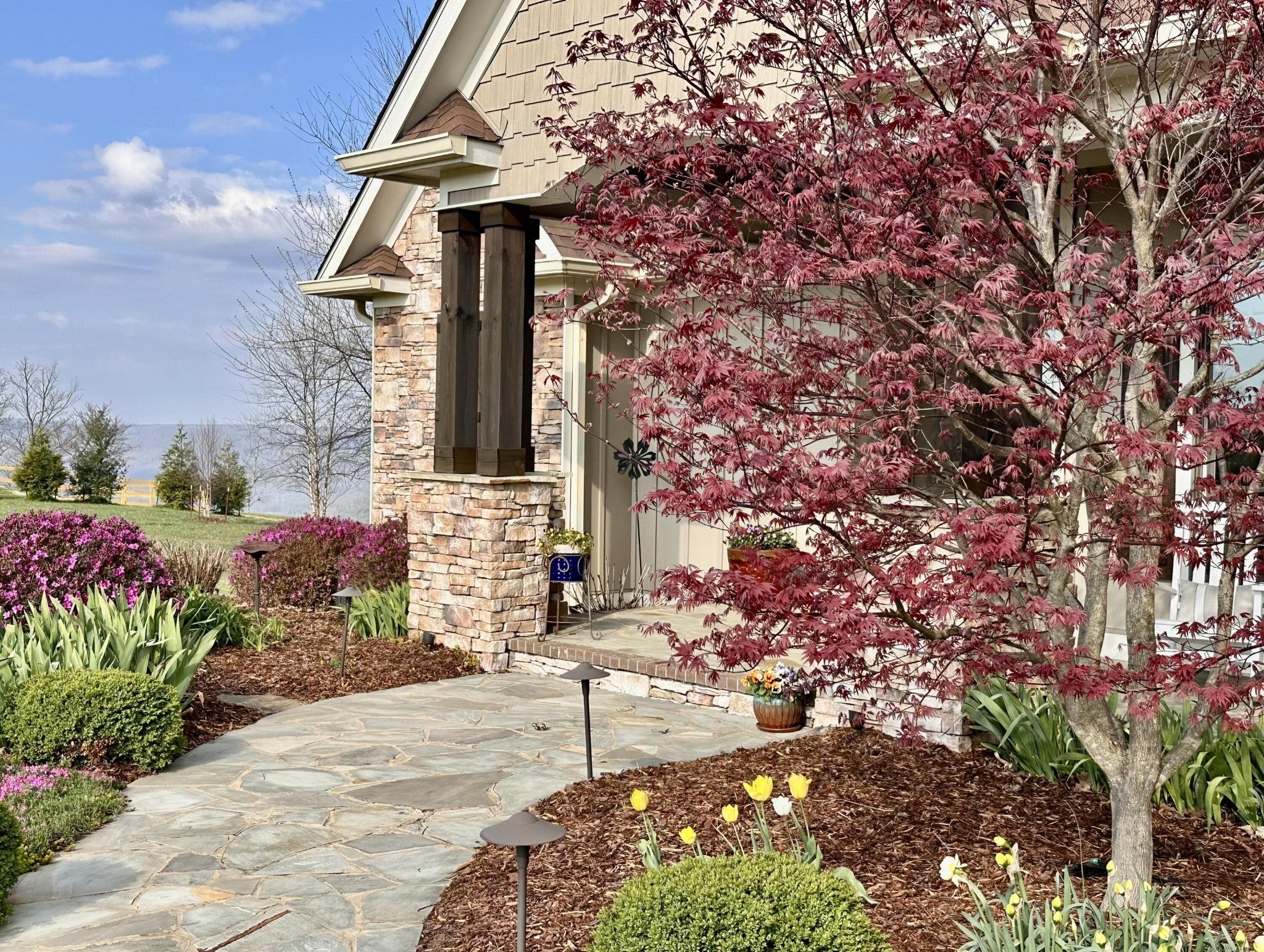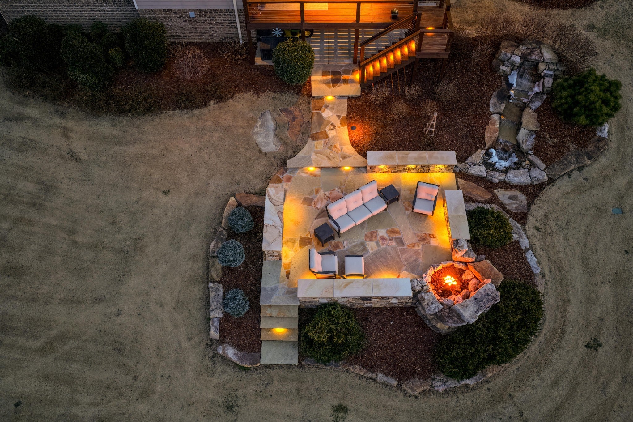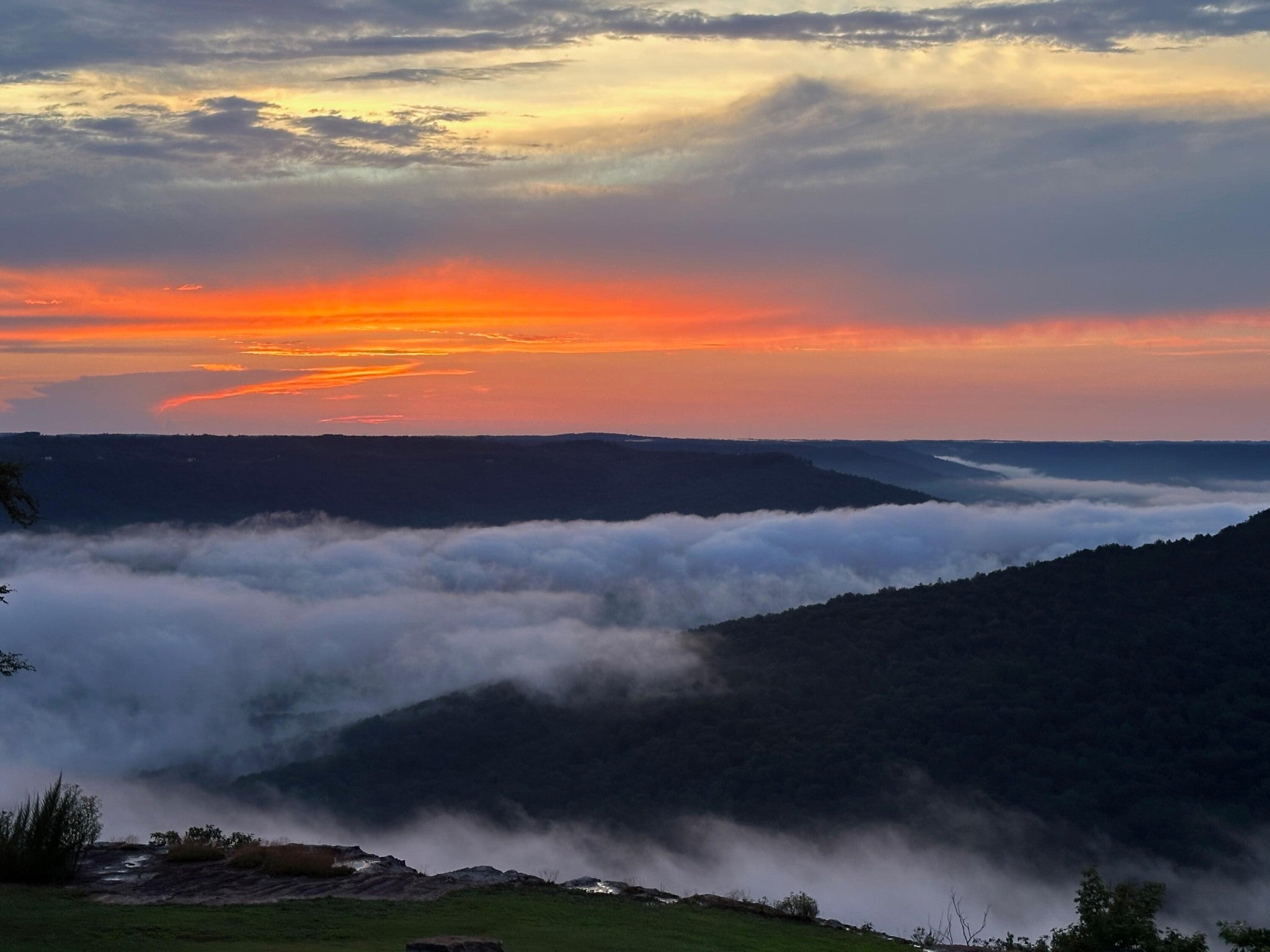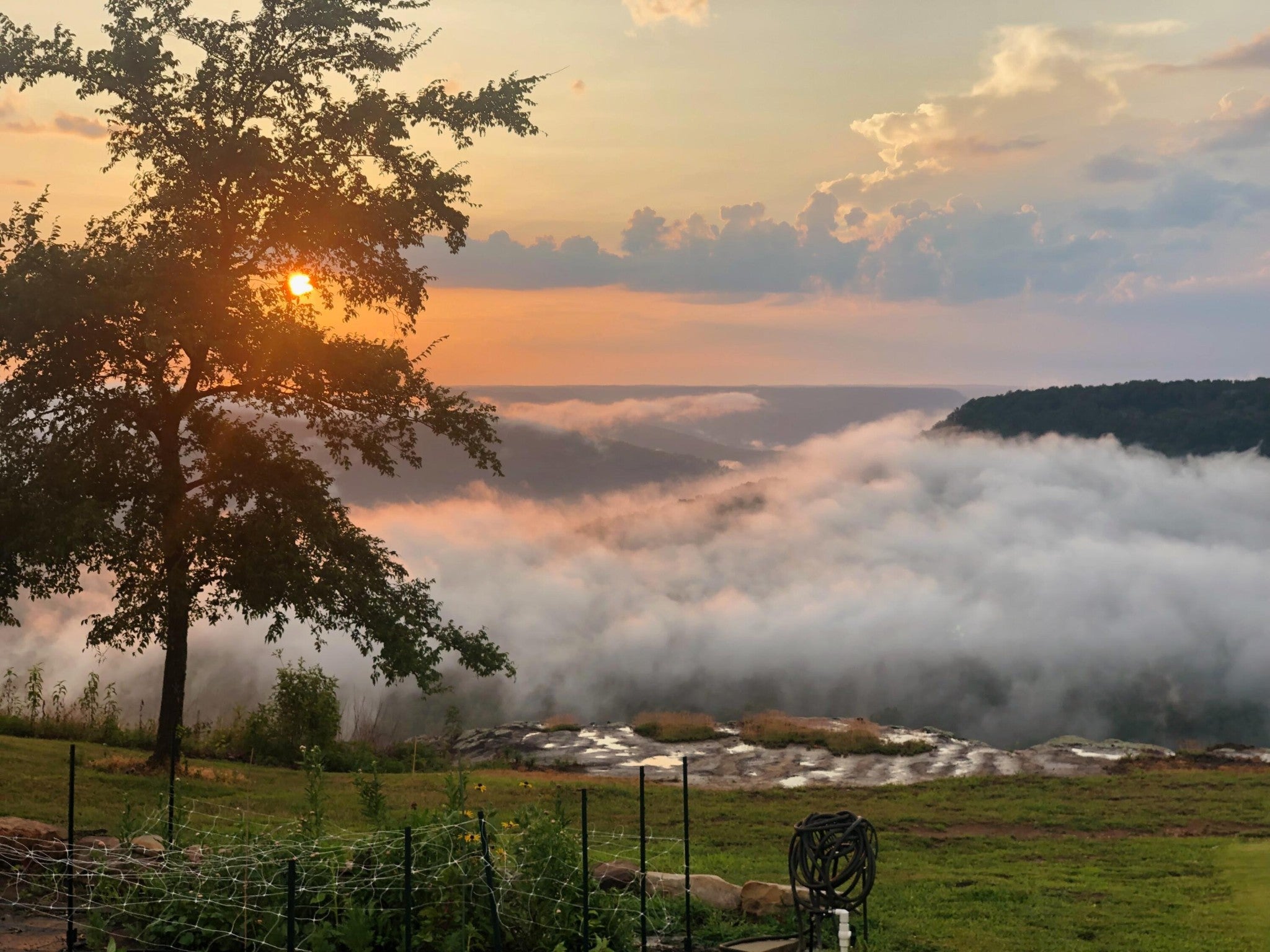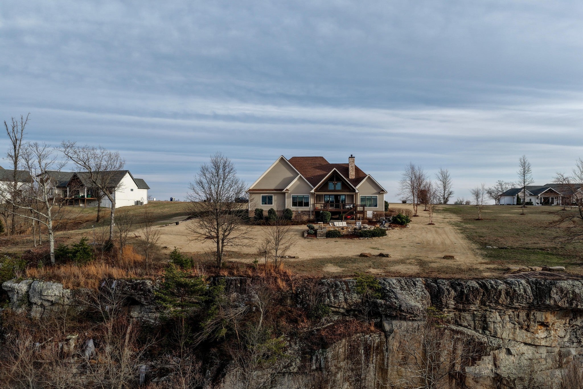 Endless Mountain Views from a Quiet Bluff Retreat Extraordinary Bluff Estate | 325+ Ft Brow Frontage, Quiet Mountain Setting, 1.8 Acres, Sweeping Plateau & Valley Views Perched along one of the most coveted bluff lines in Jasper Highlands, 985 Sunset Circle offers a rare opportunity to experience luxury mountain living on 1.8 private acres with over 325 feet of exceptional brow frontage on a quiet mountain peninsula. From this extraordinary vantage point, breathtaking panoramic views unfold across the Cumberland Plateau and deep into the Sequatchie Valley, creating a dramatic landscape of rolling mountains, expansive skies, and unforgettable sunsets. Uniquely positioned on the brow, the property enjoys both inspiring sunrises and spectacular sunsets, filling the home with ever-changing mountain light throughout the day. Thoughtfully designed to capture the scenery, inspiring mountain views are enjoyed from many of the home's primary living spaces, creating a constant connection to the surrounding landscape. Designed to embrace its spectacular setting, the home features multiple outdoor living spaces positioned to capture the remarkable bluff views. Just off the living room, a covered bluff-side deck provides an elevated vantage point for enjoying the surrounding mountains and valley below. Vaulted hardwood ceilings and custom-designed motorized blinds create a comfortable setting for relaxing or entertaining while immersed in the scenery. Below the deck, a beautifully crafted flagstone patio offers an inviting outdoor retreat surrounded by the natural beauty of the bluff and enhanced by thoughtfully designed mature landscaping that complements the natural mountain setting. A dramatic gas fire pit crafted from locally sourced mountain rock creates the perfect setting for evening gatherings beneath the stars, while a custom cascading waterfall feature provides a striking natural centerpiece, its gentle flow adding a soothing soundtrack to this tranquil out