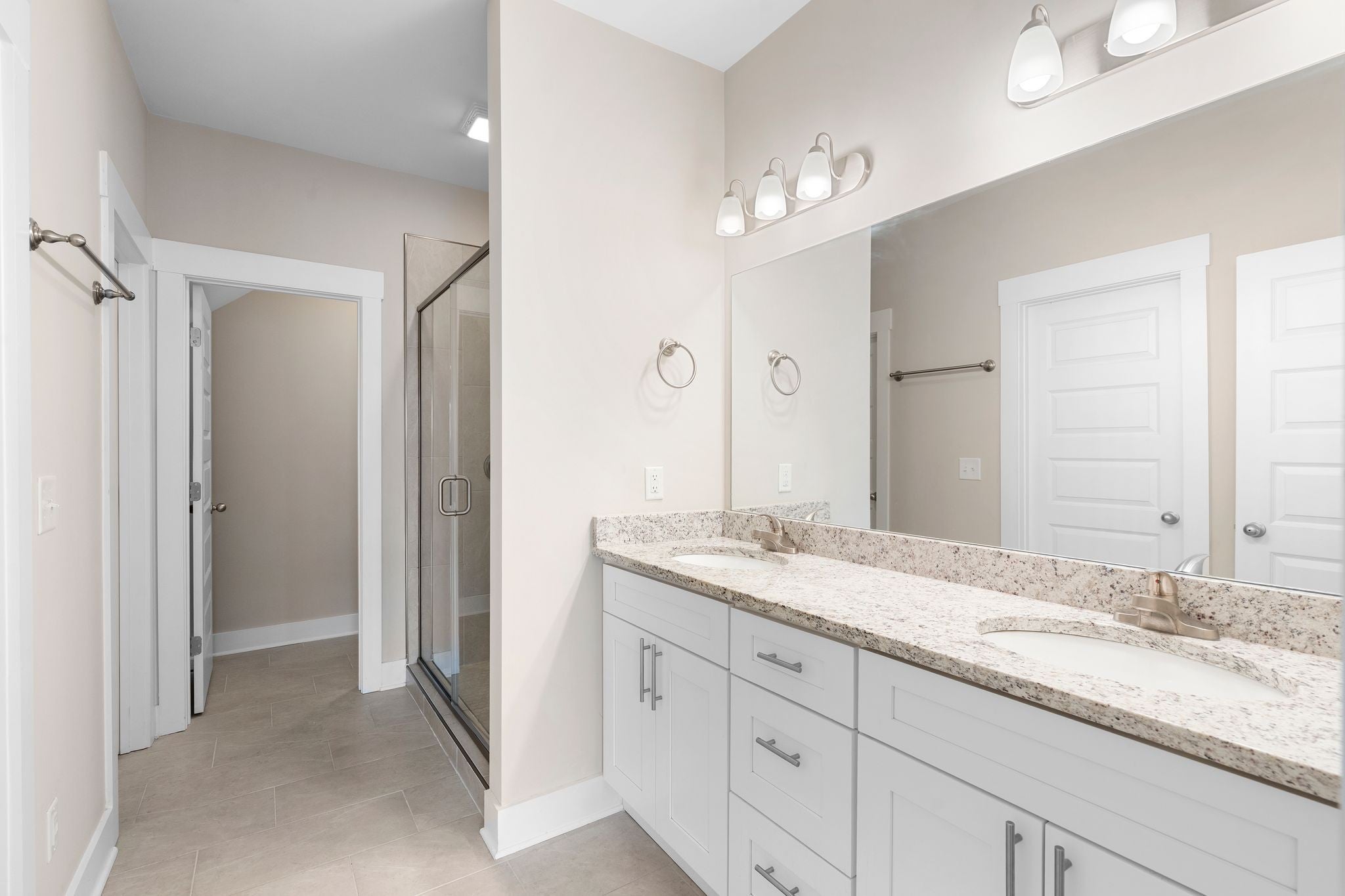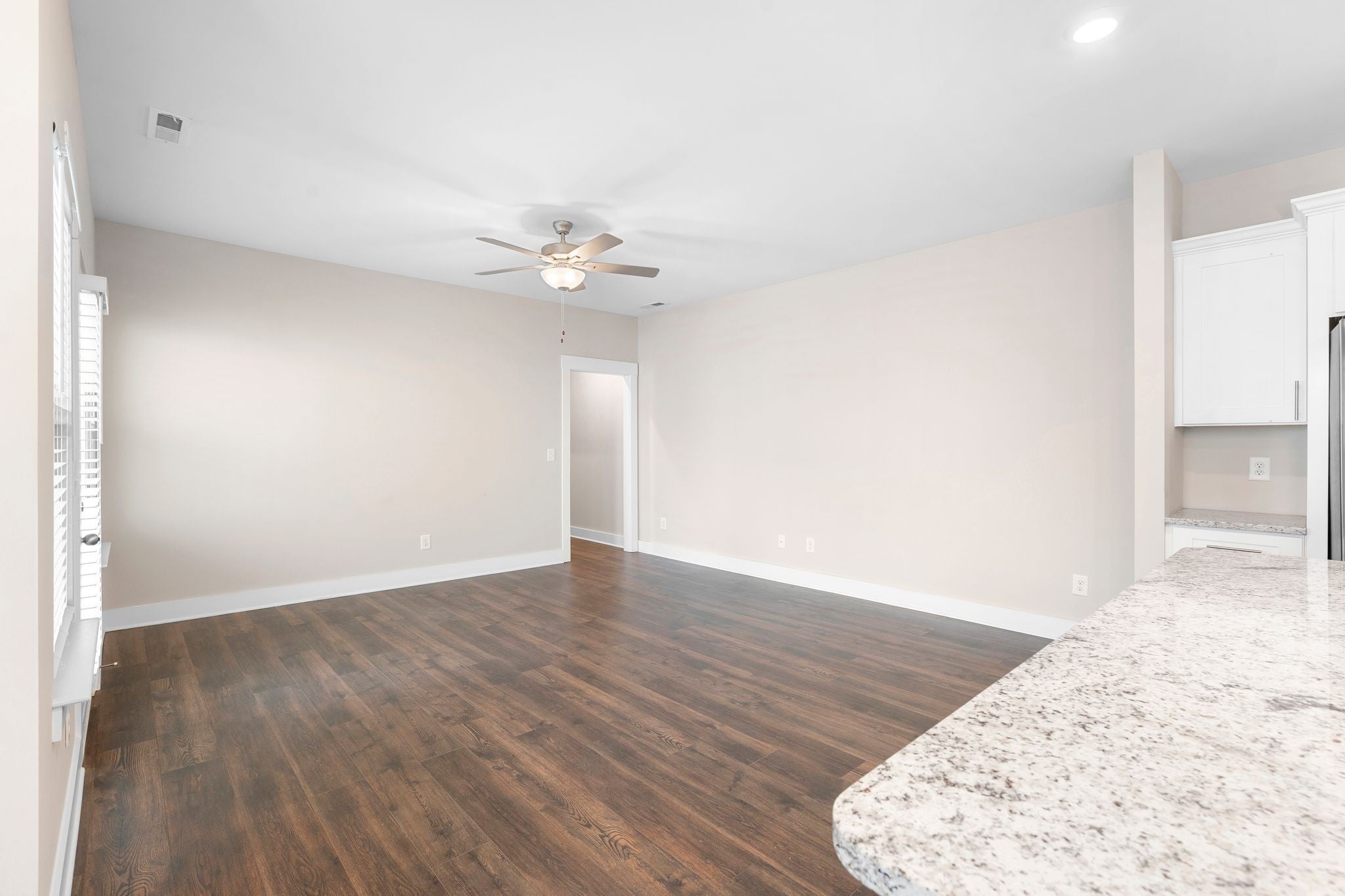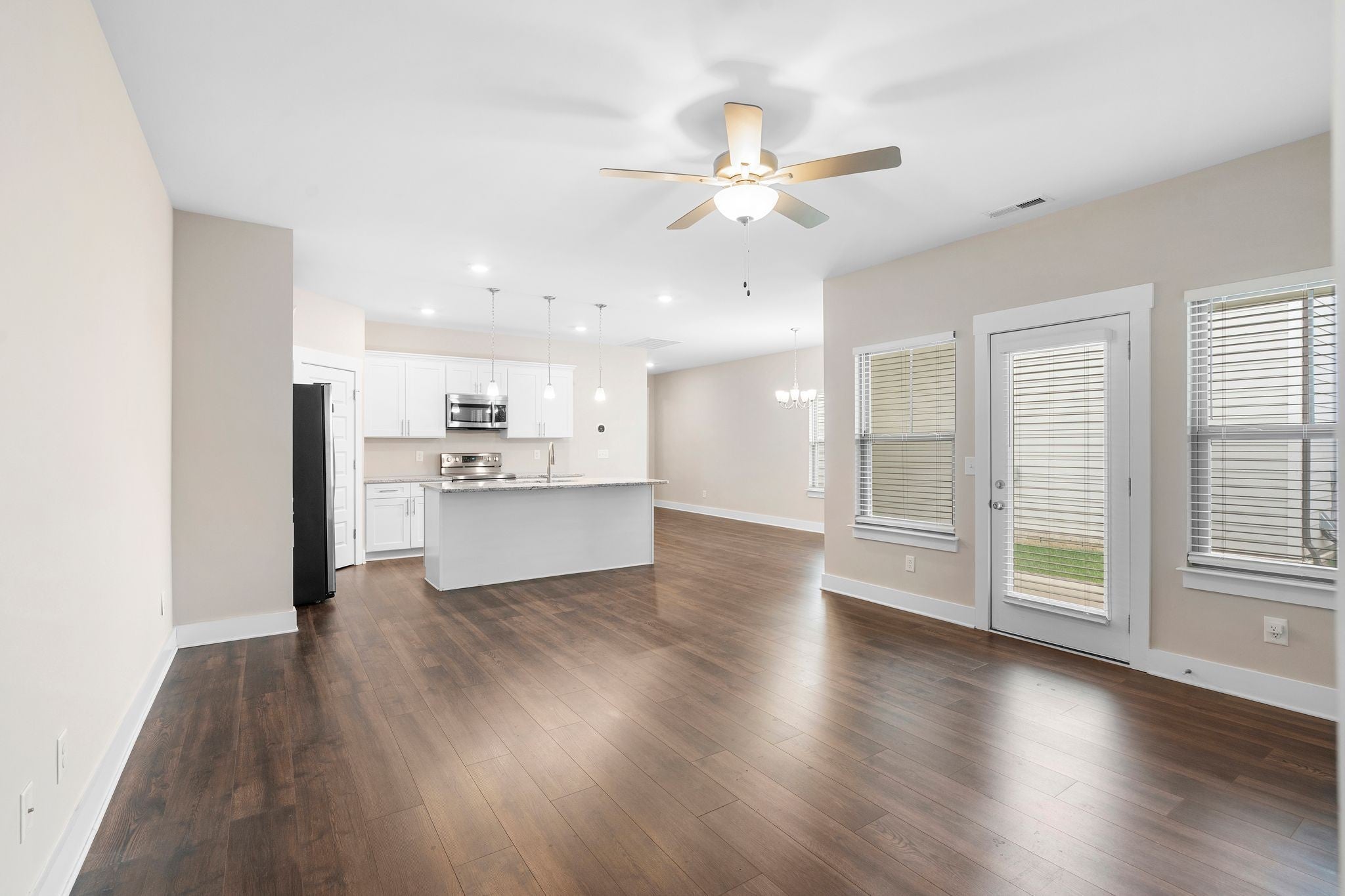 Beautiful newer construction end-unit duplex located on a quiet street in a prime Murfreesboro location. This home offers an open-concept layout with durable laminate flooring throughout and stunning white cabinetry that brightens the entire space. The kitchen features granite countertops, a spacious pantry, and includes the refrigerator. It flows seamlessly into the main living area, creating an ideal space for entertaining or everyday living. Both bedrooms are located on the main level, along with two full bathrooms and a convenient powder bath for guests. The primary suite includes a tiled shower and generous closet space. The washer and dryer are also included and are near new models. Enjoy a covered porch perfect for relaxing, along with a two-car garage providing ample storage and parking. All landscaping and lawn care are maintained by the HOA, offering low-maintenance living. Just minutes from The Avenue and Medical Center Parkway shopping, dining, and everyday conveniences. Ideal for first-time home buyers or those looking to downsize, this home offers true one-level living with an expandable upstairs area already in place and ready to be built out for additional space if desired. Move-in ready with room to grow in one of Murfreesboro’s most convenient locations.
