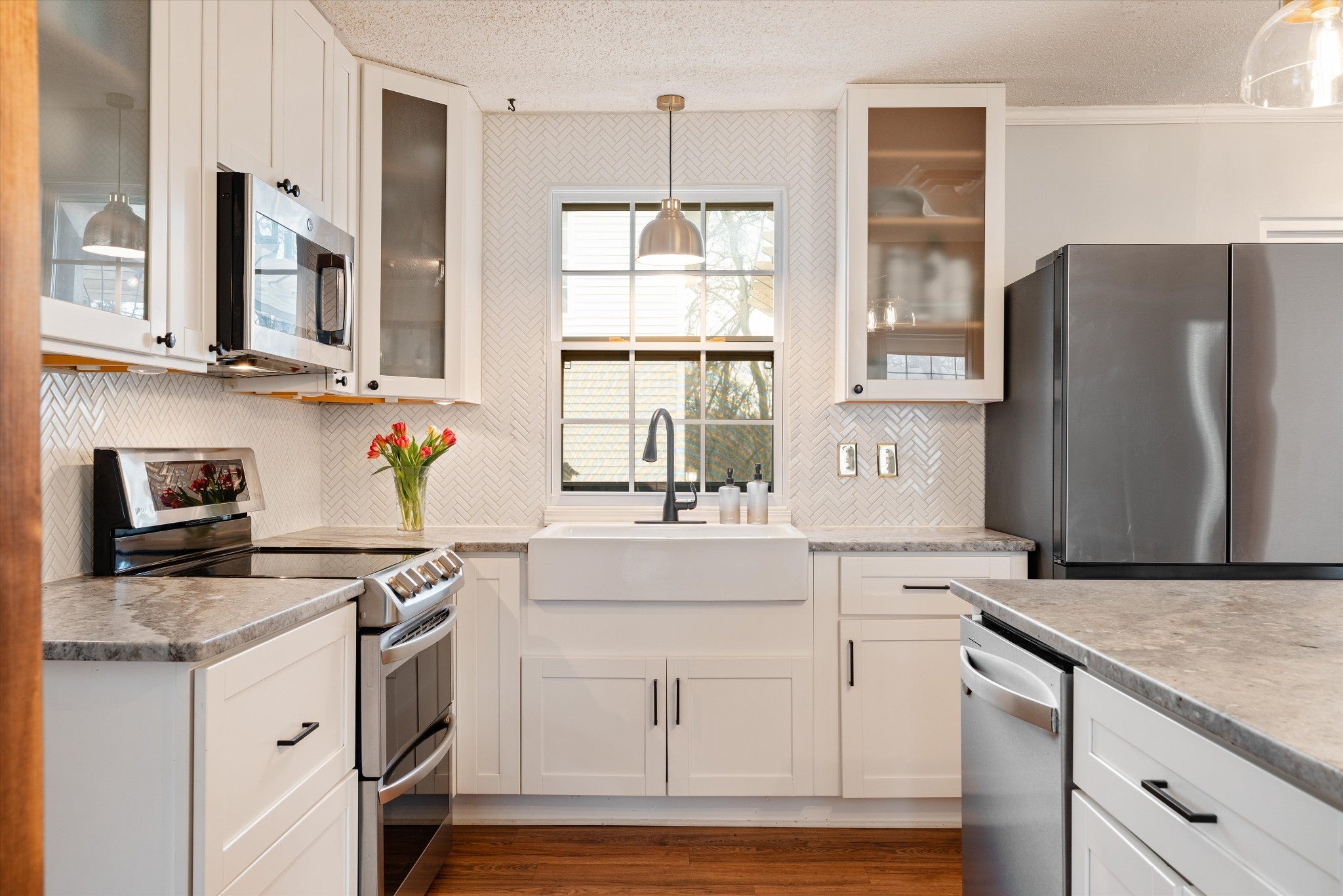 - Electric Oven, Electric Range, Dishwasher, Dryer, Microwave, Refrigerator, Stainless Steel Appliance(s), Washer
