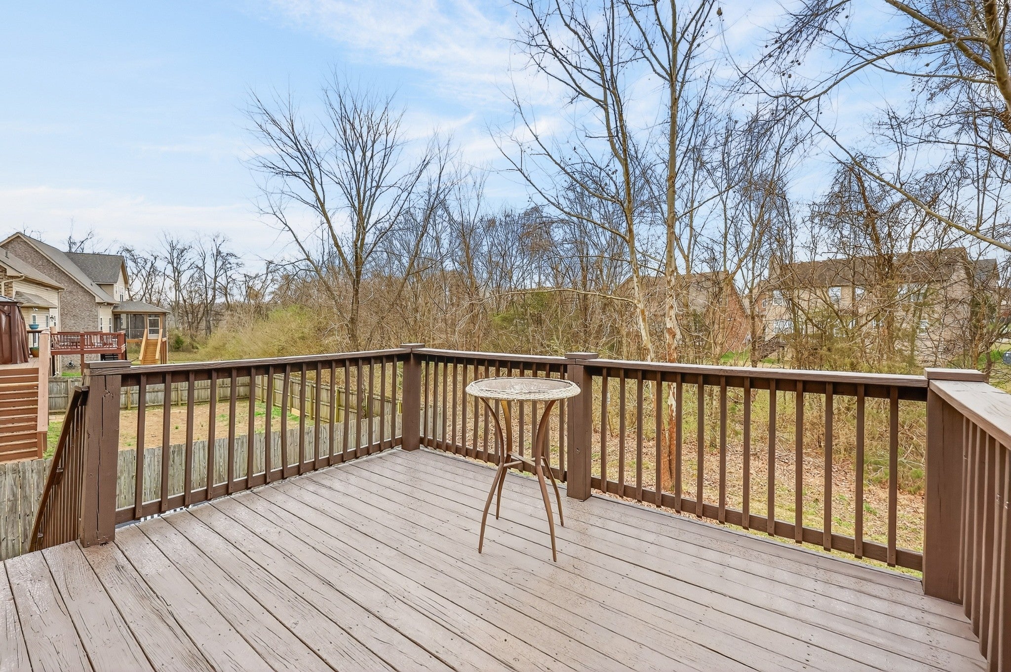 Newer home in Sugar Valley with primary bedroom downstairs. Extensive hardwoods on the main level. Open kitchen with island and breakfast nook area. Granite counters. Large primary bath with two separate vanities, separate shower, and jetted tub. 2nd level bonus with French doors. Roof is two years old and water heater was replaced less than a year ago. Great storage with huge walk-in attic and extra closets throughout. Rocking chair front porch. Deep crawl space. Newly stained deck overlooks common area to BOTH the sides and back. Quiet dead end street with close access to Mill Creek Park and Greenway. Great location for trendy restaurants in Lenox area; grocery stores nearby. Move-in ready!