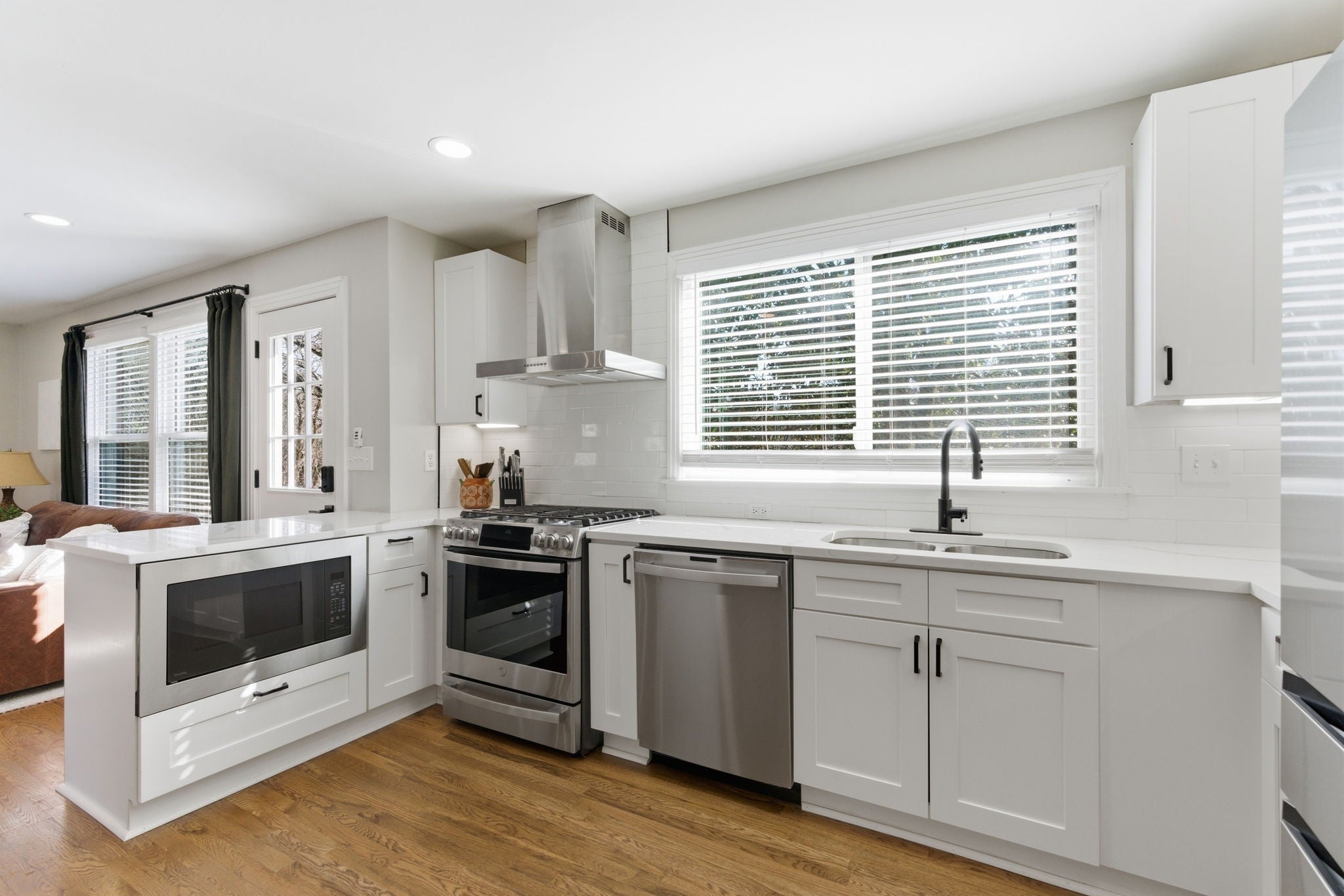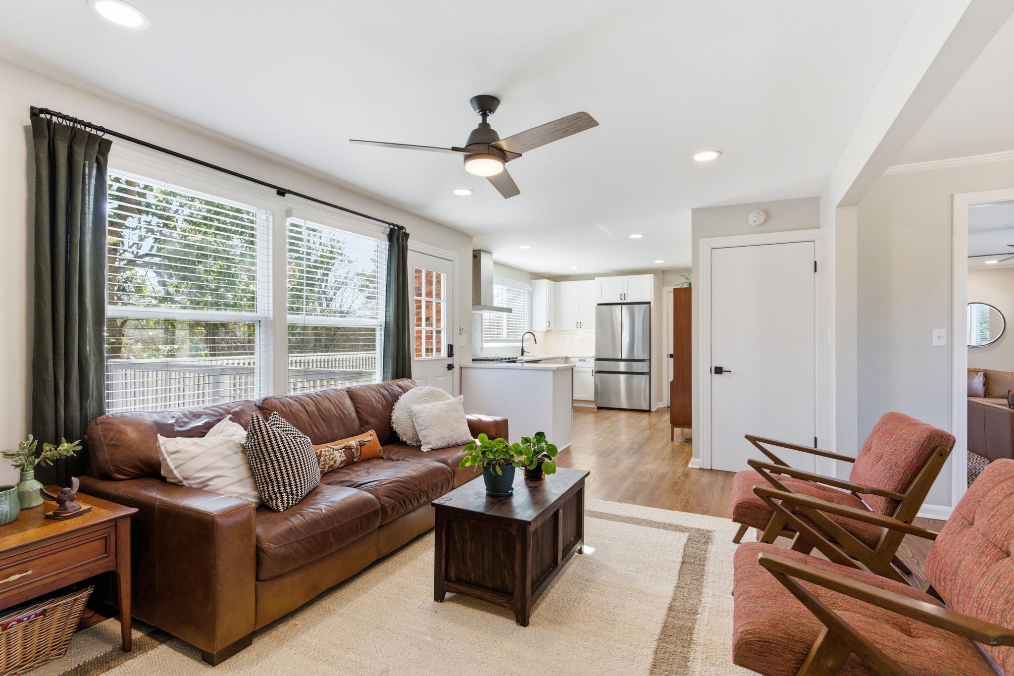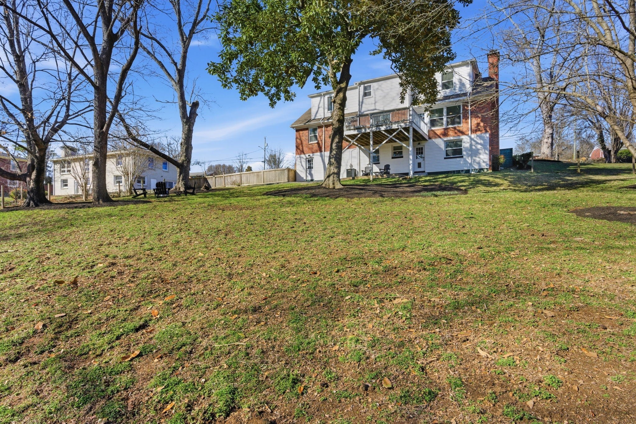 Tucked away on nearly an acre in the heart of Donelson, this beautifully maintained all-brick home offers space, privacy, and flexibility that is hard to find. Surrounded by mature trees, the setting feels peaceful and established while still being minutes from everything Nashville has to offer. Inside, hardwood floors run throughout the main living areas. A sunlit front living room with custom built-ins flows into a formal dining room perfectly positioned between the front living space and the cozy den, creating an ideal layout for everyday living and entertaining. The den is anchored by a wood-burning fireplace and offers a warm, inviting place to gather. The fully renovated kitchen features quartz countertops, stainless steel appliances, shaker cabinetry, and a deep pantry with exceptional storage. Two spacious bedrooms and a beautifully updated bathroom are located on the main level. Upstairs, the entire level is dedicated to a private primary retreat. The sellers converted an additional bedroom into a fully customized primary closet, creating an expansive dressing room rarely found. With treetop views overlooking the backyard, this suite feels like a private tree house and offers remarkable privacy and storage. The walk-out basement adds incredible versatility with its own bedroom and full bath, ideal for multi-generational living or extended guests. An additional bonus space is perfect for a home office, craft room, gym, or could accommodate a future kitchenette to create a basement apartment. A two-car garage provides everyday convenience and additional storage. An elevated deck and covered patio overlook the tree-lined backyard. Located minutes from local favorites and parks, and only 10 minutes to BNA International Airport and 15 minutes to Downtown Nashville, this home delivers the rare combination of privacy, space, and convenience.