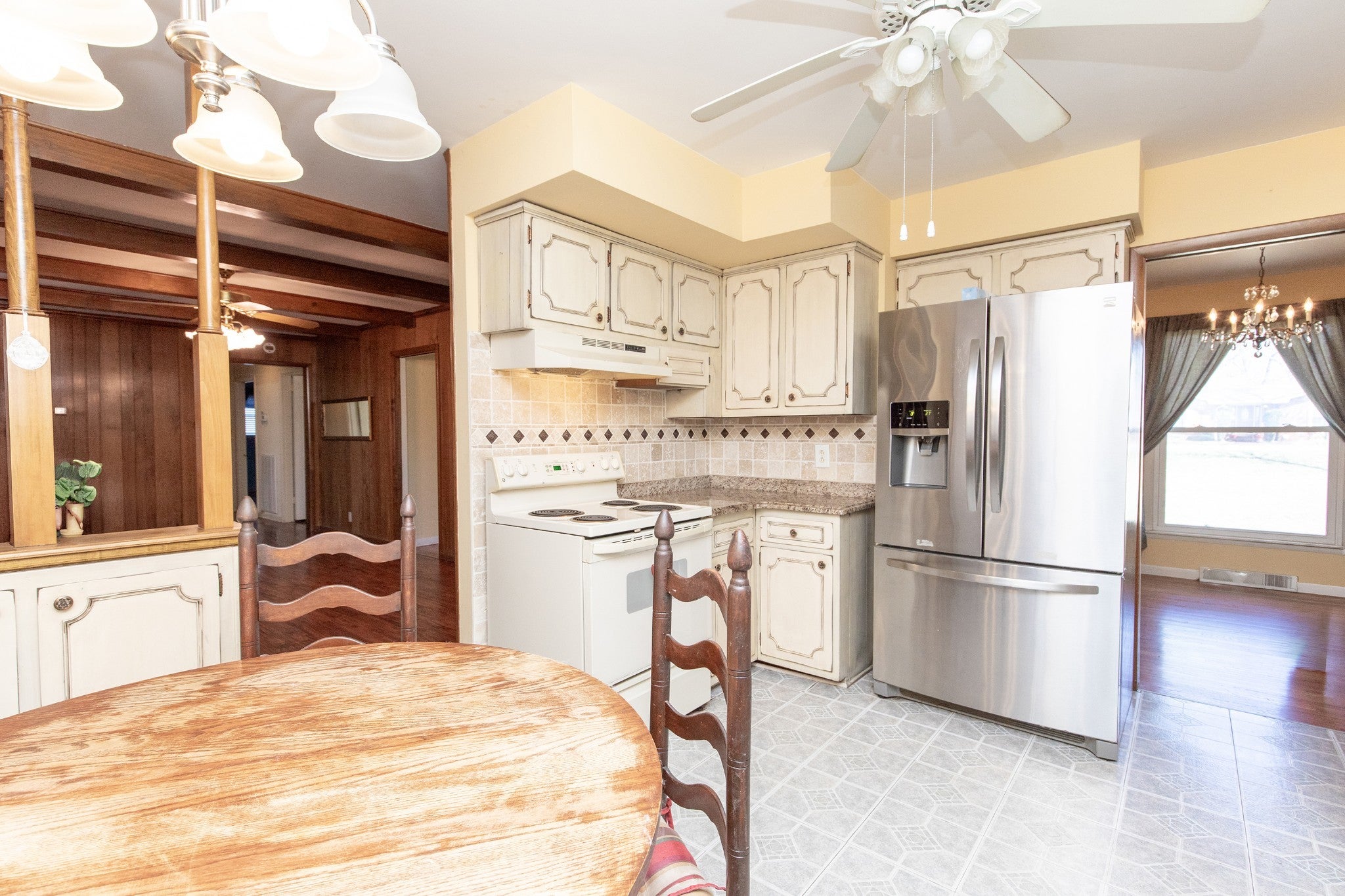 Charming ranch home with private in-law apartment in the heart of Hendersonville! Just minutes from the lake and within 1/2 mile of Nannie Berry Elementary School, Robert E. Ellis Middle School, and Hendersonville High School, this location offers unbeatable convenience! Only a few blocks to grocery stores, restaurants, and everyday essentials. The main home features hardwood flooring in the living room and all three bedrooms, plus a cozy den with newer LVP flooring, wood-beamed ceiling, and fireplace for a warm, rustic feel. Enjoy an eat-in kitchen and a flexible living room/dining room combination perfect for entertaining. With a total of 2,062 sq ft (1387 sf in main home w/ 3bd 2 bath), this property includes a separate 675 sq ft in-law apartment complete with its own kitchen, full bath, bedroom, den, and private laundry. Ideal for multi-generational living, guests, or rental income potential. Step outside to a fully fenced backyard perfect for pets and play. Two attached storage sheds (approx. 8x14 each) provide excellent extra space. Both washer/dryer sets convey, including a steam combo in the main house. Home has total of 4 bed & 3 bath. Location, flexibility, and opportunity all in one, don’t miss your chance to make this Hendersonville gem yours!