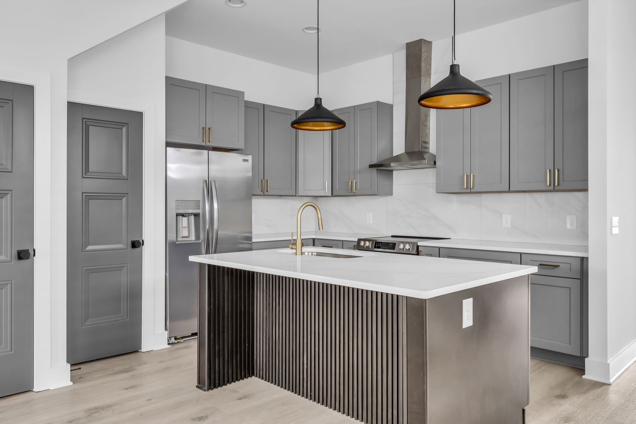 - Built-In Electric Oven, Electric Range, Dishwasher, Disposal, Microwave, Refrigerator, Stainless Steel Appliance(s)