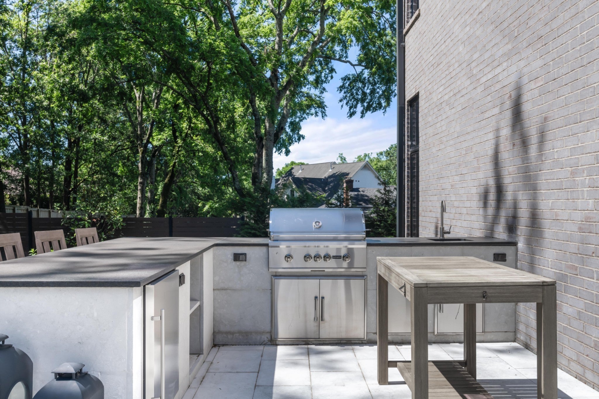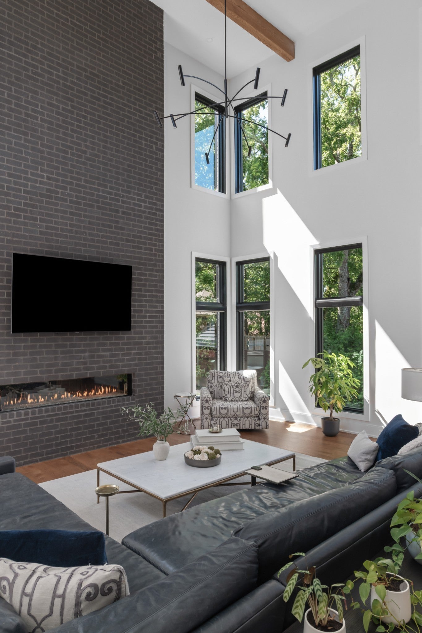 This show-stopping warm modern home in walkable Green Hills features elevated, contemporary design and dynamic indoor-outdoor living with a pool, outdoor kitchen, and private rooftop terrace overlooking the rolling hills of south Nashville. The impressive foyer is wrapped in wood planking, with vaulted ceilings and tons of natural light. The primary suite features direct access to the pool, and there is an additional guest suite or office on the main floor, with a junior suite on the second level. The kitchen and working pantry are the heart of the home, and bars with built-in wine and beverage center refrigerators are adjacent to the kitchen/dining rooms and the top floor media den/bonus room. An elevator serves all 3 levels, and at the top leads to a huge bonus room/media den and wet bar opening to an expansive roof deck. The whole third floor offers incredible, multi-directional views over the rolling hills and beautiful homes of Green Hills. And perfect for Tennessee summers, the fenced, private back yard features impressive mature landscaping and extensive turfing, a heated pool with hot tub, tons of entertaining space with an outdoor kitchen and dining area. Control4 smart home automation, security cameras, and more features top off the fully functional, effortless living afforded by this pitch perfect modern home!