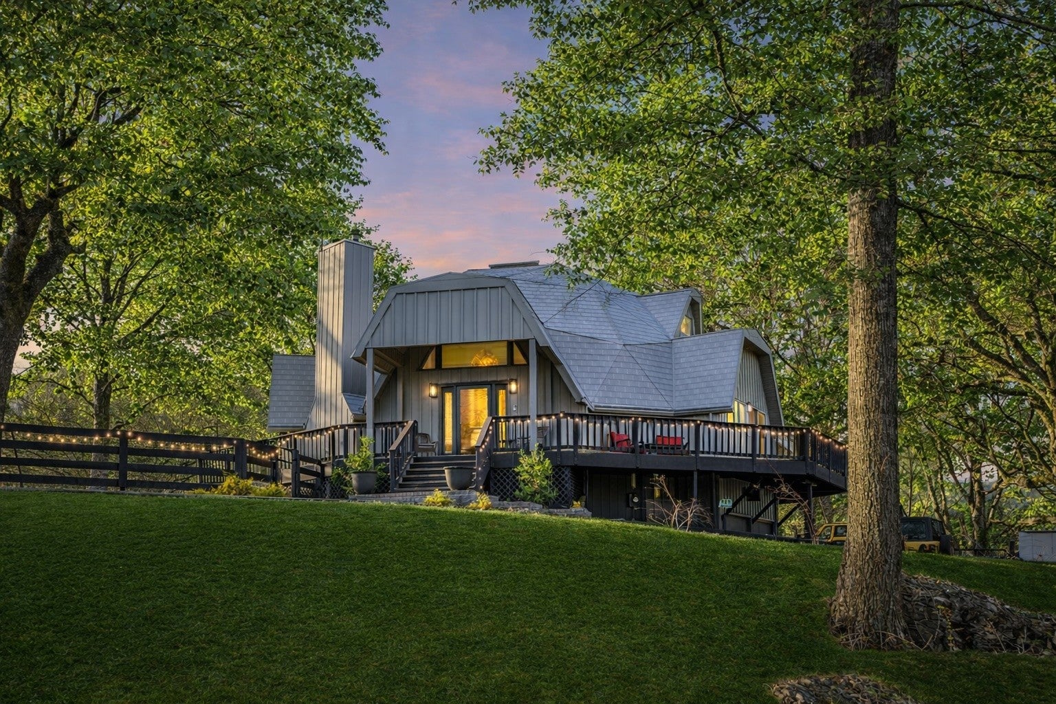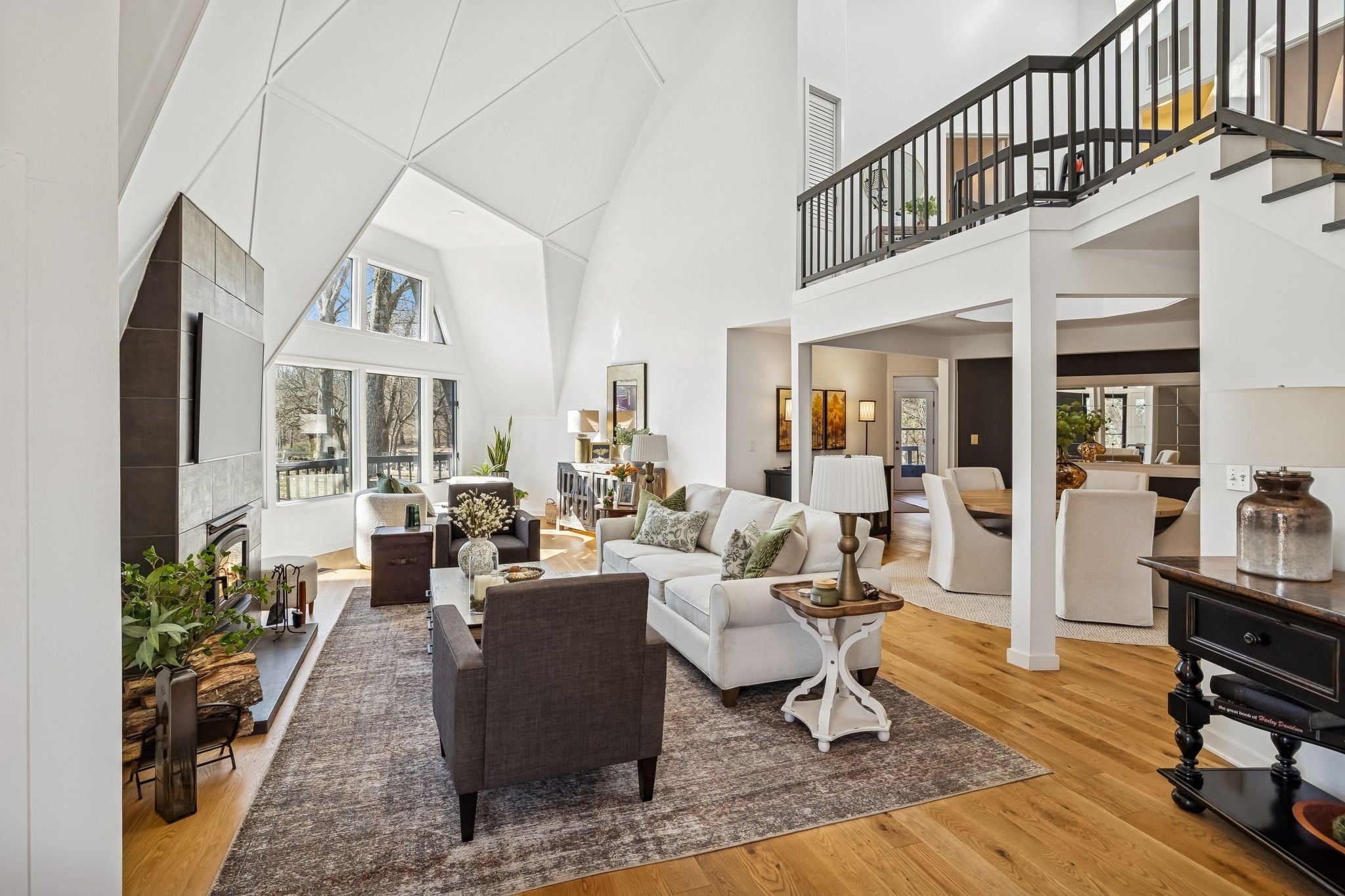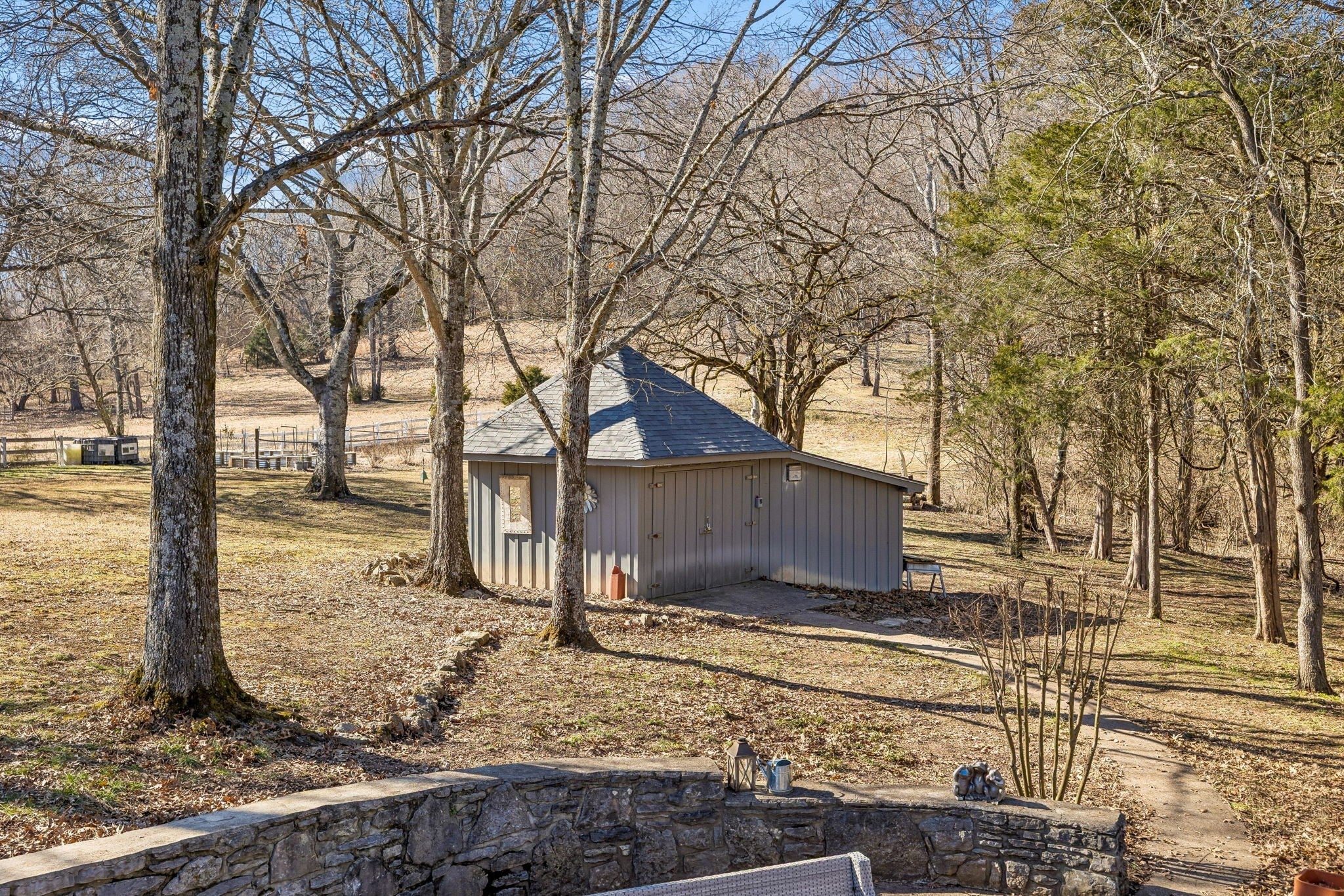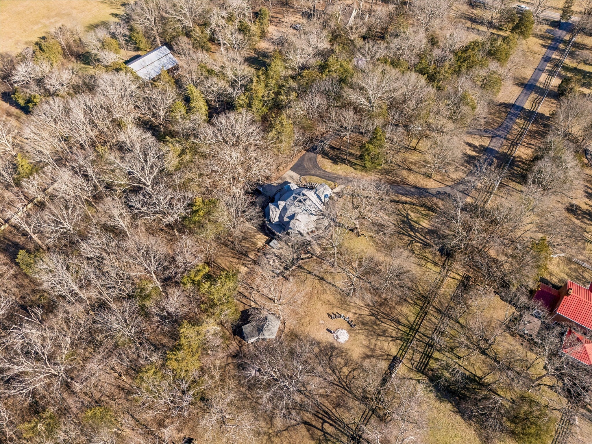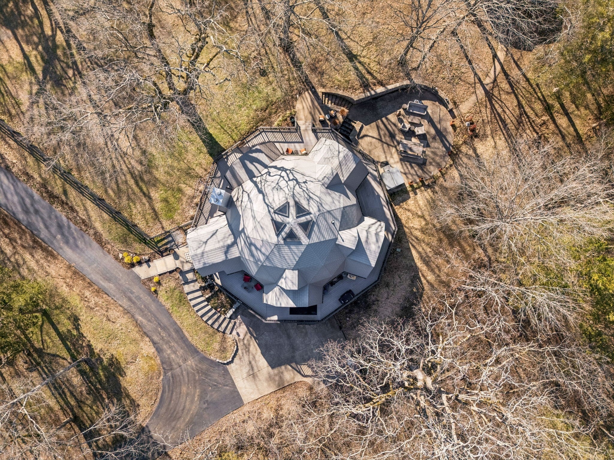 Tucked away on 5 private acres in the heart of Leipers Fork, this rare and architecturally striking geodesic dome home offers the perfect blend of privacy, sustainability, and convenience. Located less than 5 minutes from Leipers Fork Market, Westhaven, restaurants, shopping, and medical offices—and just a short drive to Franklin—this property delivers peaceful country living without sacrificing accessibility. Perched atop a scenic hill with beautiful views, the thoughtfully updated home spans nearly 4,300 square feet across three levels with 3 bedrooms, multiple flex spaces, and a fully finished walkout basement. Natural light floods the interior, highlighting the dome’s distinctive architecture and creating a space that feels like a private retreat. The main level features a welcoming living room with fireplace, updated kitchen with hidden pantry and coffee bar, spacious primary suite, and oversized laundry room. Upstairs offers two bedrooms and a loft ideal for a reading nook or creative workspace. The walkout basement provides exceptional flexibility with a second living area and fireplace, kitchenette, and two flex rooms perfect for a home office, guest quarters, gym, or studio—ideal for multigenerational living or Airbnb potential. Outdoor living truly sets this property apart: a wraparound weatherproof deck, hardscape patio for al fresco entertaining, and a fire pit tucked among the trees for star-filled Tennessee nights. The grounds include a gardening shed, chicken coop, and dedicated garden area utilizing reclaimed water—perfect for homesteading enthusiasts. Energy efficiency meets innovation with geothermal heating and cooling, significantly reducing utility costs while supporting a more sustainable lifestyle. A one-of-a-kind Leipers Fork home offering acreage, views, modern updates, income potential, and eco-conscious features—this is elevated Tennessee living at its finest.