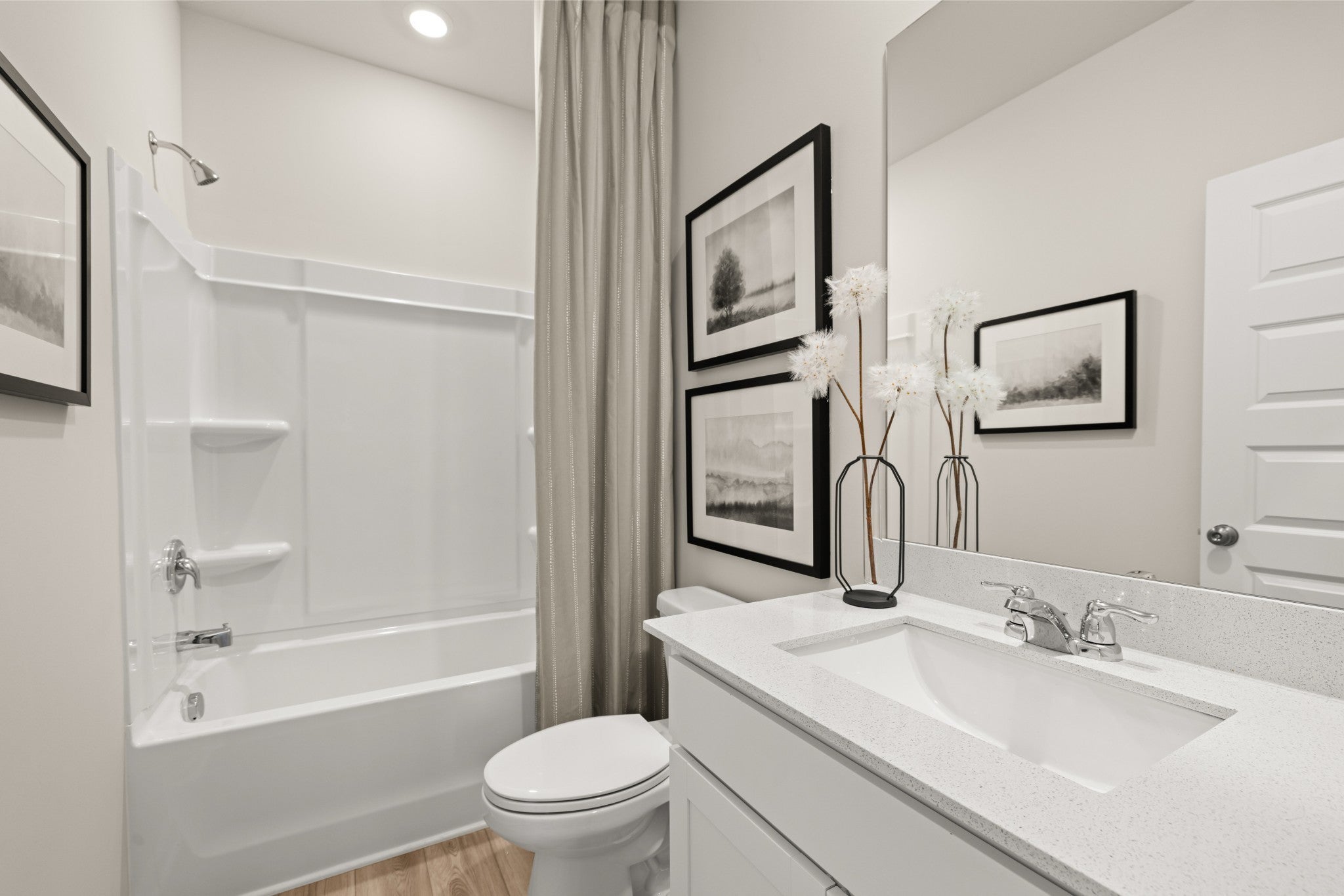 This new two-story home features a pleasing contemporary design. At the heart of the first floor, the Great Room extends effortlessly to the dining room and modern kitchen in an open-plan layout. Flex space offers versatility. The second floor hosts a bonus room and four bedrooms including a spacious owner’s suite.