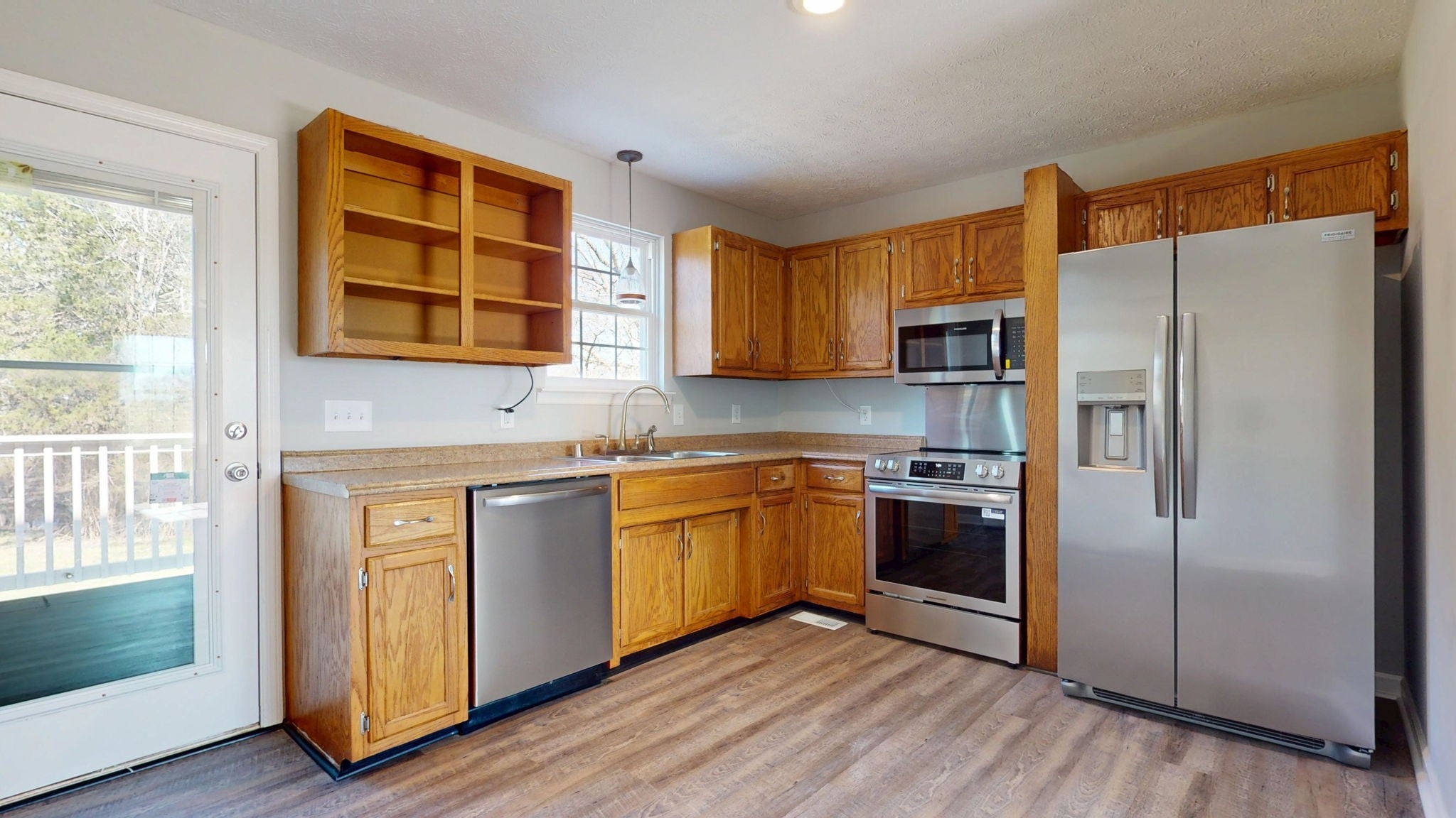 - Oven, Cooktop, Dishwasher, Microwave, Refrigerator, Stainless Steel Appliance(s)