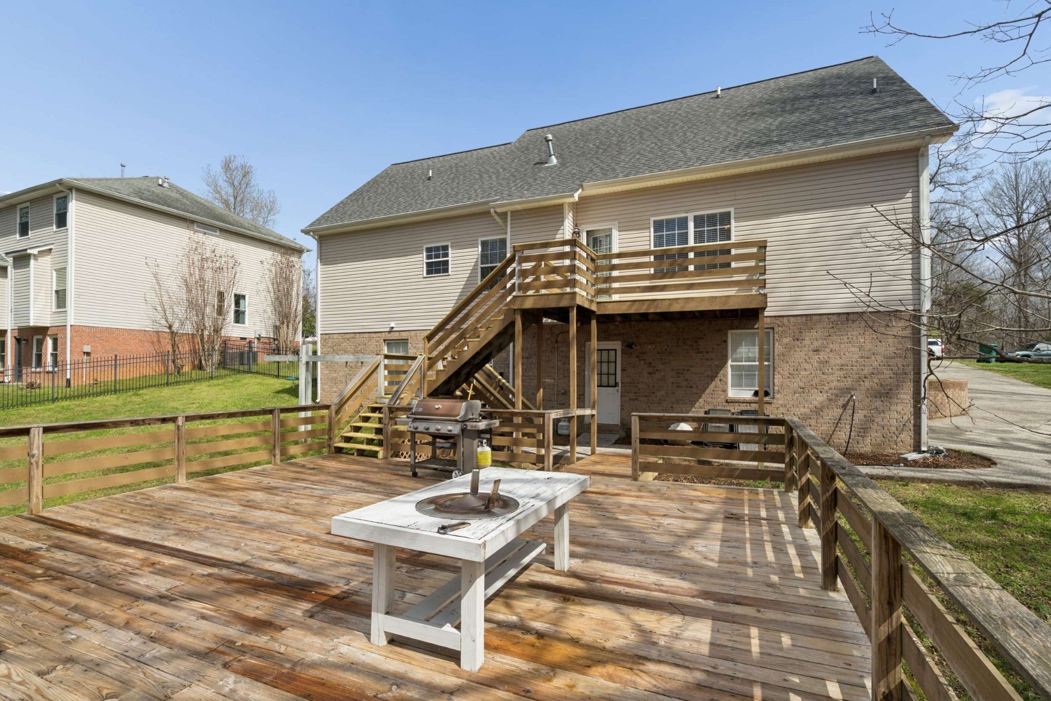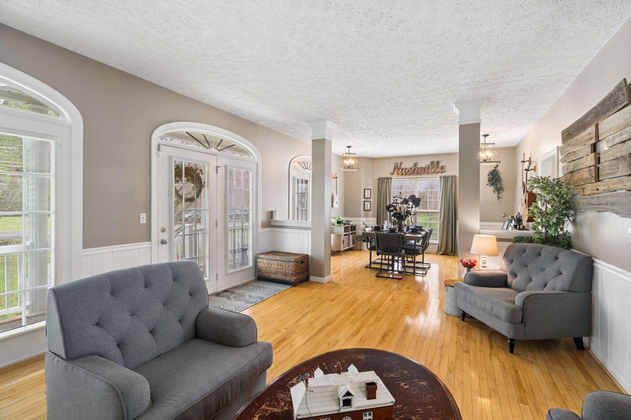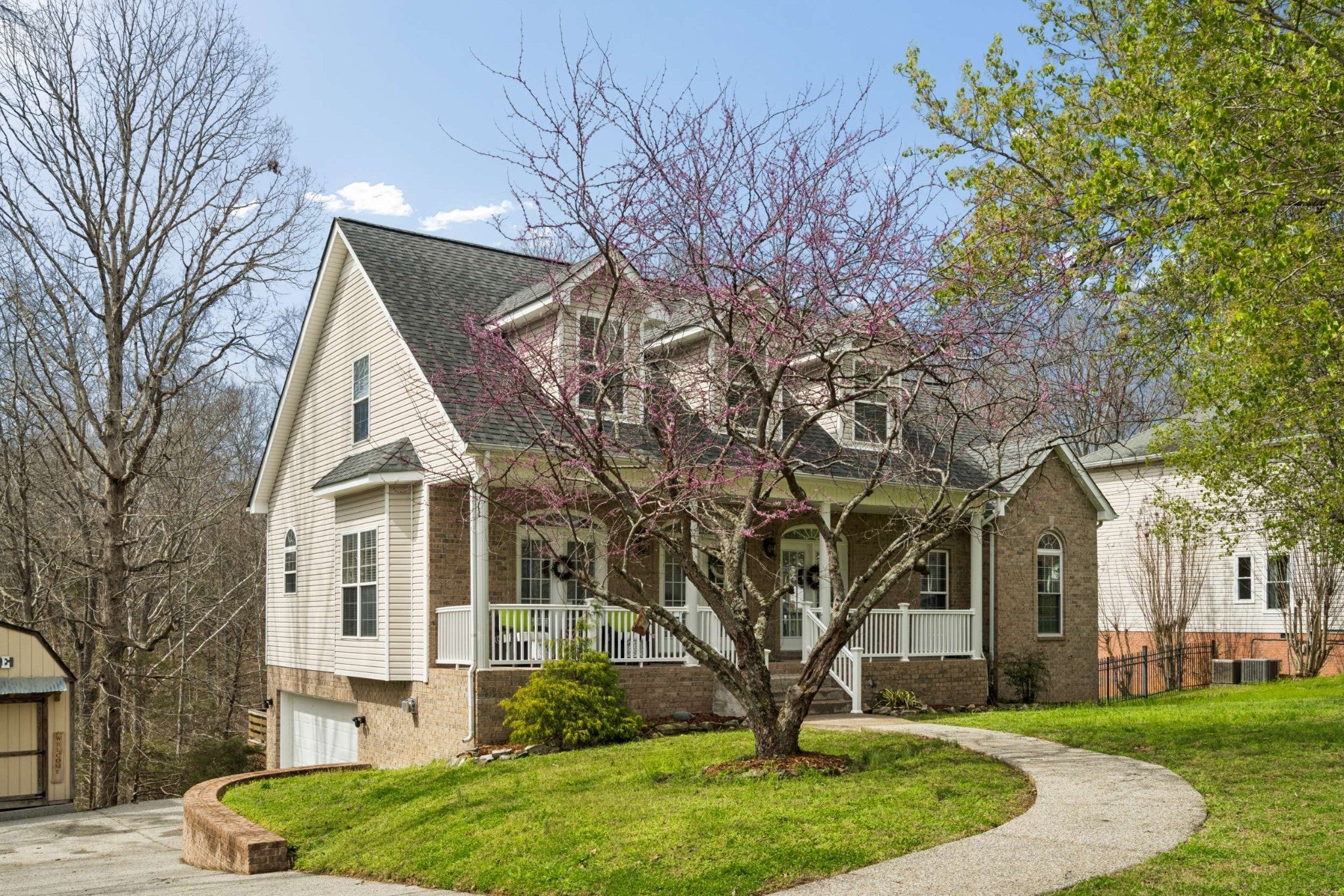 French doors stretch across the inviting front porch of this beautifully designed home, creating timeless curb appeal and an abundance of natural light. Nestled on a private, Gatlinburg-style wooded lot, this property offers the perfect blend of serenity and space. Inside, you'll find a large open-concept kitchen ideal for entertaining, seamlessly flowing into the main living areas. The spacious primary suite is conveniently located on the main level, providing comfort and privacy. Upstairs features a generous bonus room perfect for a media room, playroom, or home office. The fully finished basement offers incredible versatility — ideal for a recreation area, guest suite, workout space, or additional living quarters. Additional highlights include: • Oversized 2-car garage with ample storage • Expansive front porch with multiple French doors • Mature trees and private wooded setting • Flexible living spaces throughout Enjoy peaceful surroundings while remaining just minutes from the conveniences of Fairview. This home combines charm, functionality, and privacy in one exceptional property.