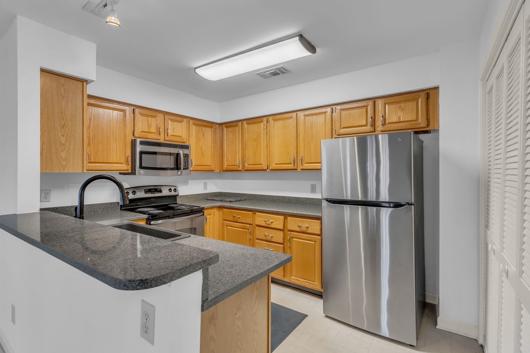- Electric Oven, Electric Range, Dishwasher, Disposal, Dryer, Microwave, Refrigerator, Stainless Steel Appliance(s), Washer