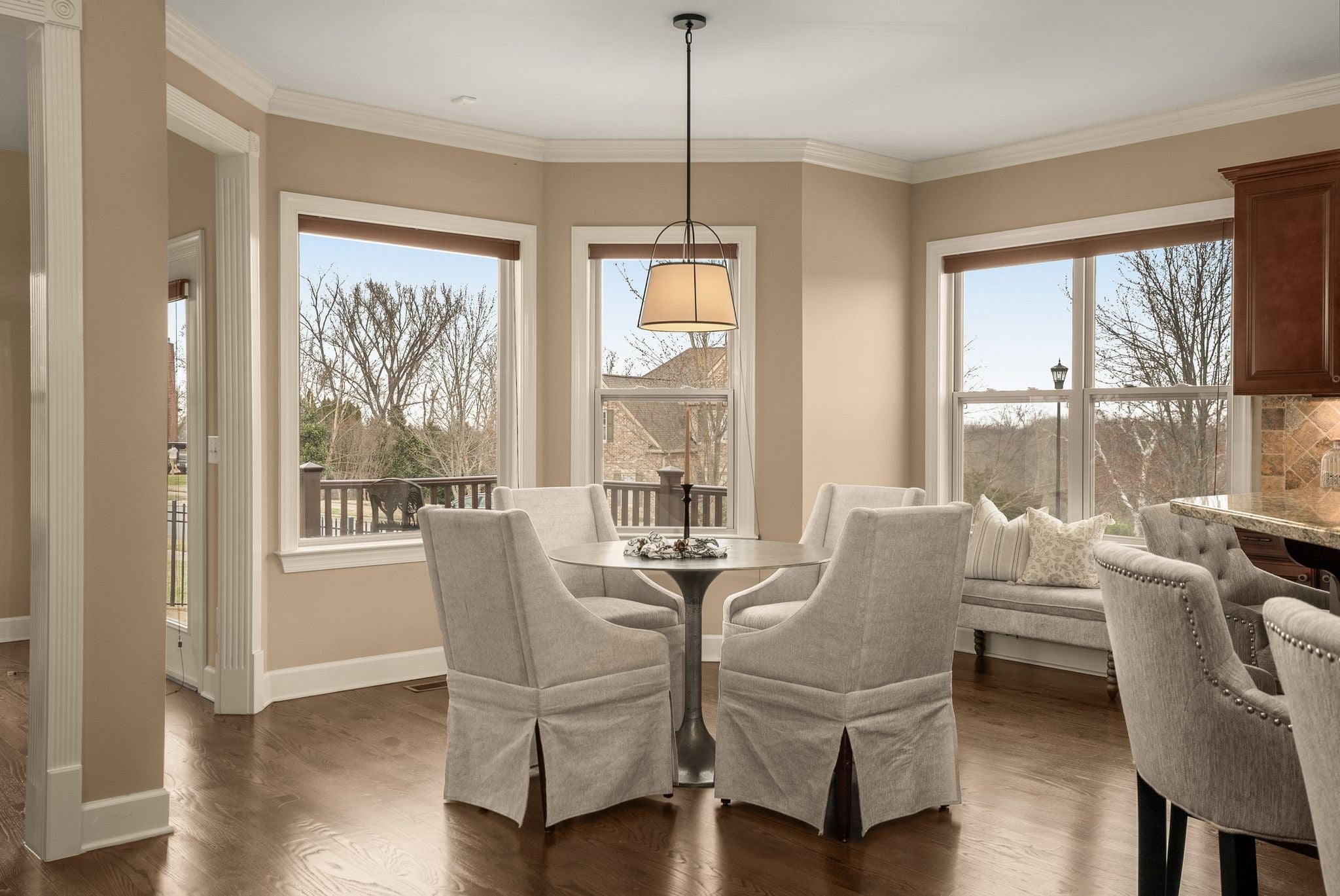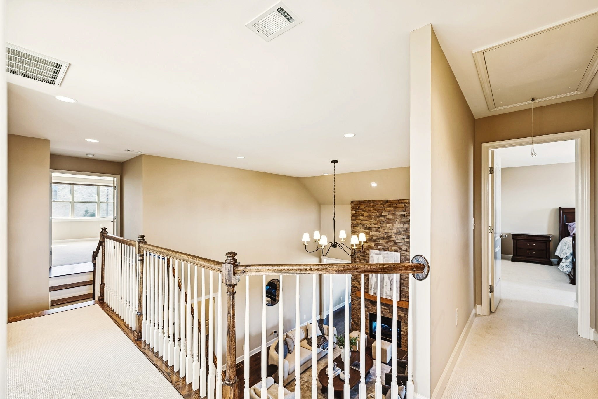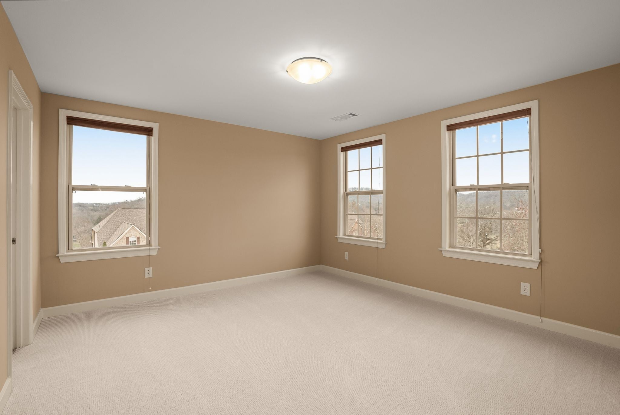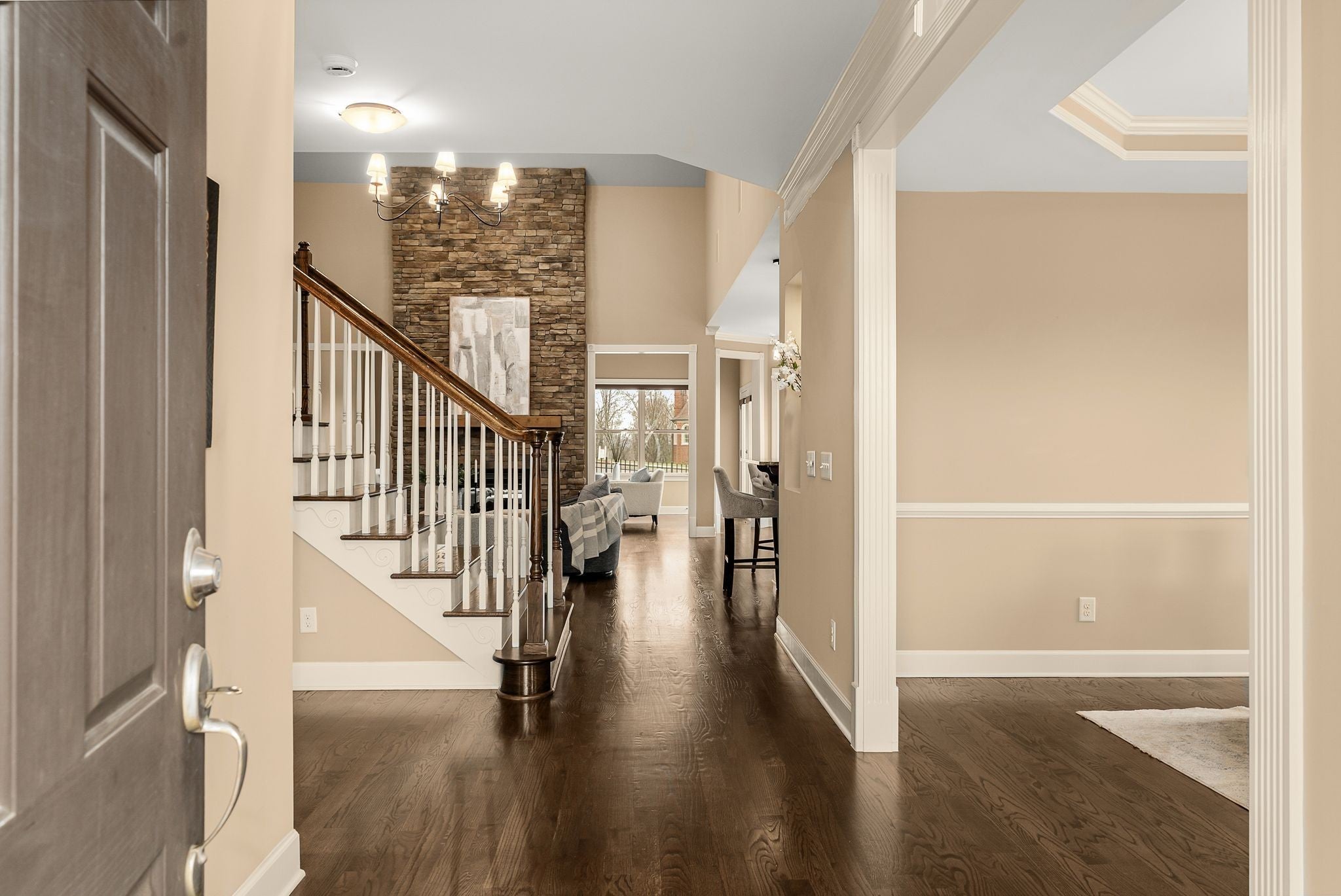 Perched at one of the highest elevations in the neighborhood with sweeping views and sunsets, this Brentwood residence stands apart for both its setting and exceptional care. From the stately brick façade to the welcoming front porch overlooking rolling landscape, the home offers a rare sense of elevation and privacy. Inside, soaring ceilings, expansive windows added to the original floor plan, and an open layout fill the home with natural light and create an effortless sense of space. The two-story great room, anchored by a double-sided stacked stone fireplace, delivers architectural presence while remaining warm and inviting. Hardwood floors and refined finishes carry throughout the main level. The kitchen flows seamlessly into the living areas with generous counter space, abundant cabinetry, and an oversized island designed for gathering. A dedicated main-level office provides privacy for work or study. Upstairs, spacious secondary bedrooms are complemented by a large bonus room and additional flex space that can function as a home office, gym, playroom, or potential fifth bedroom. The primary suite offers a comfortable retreat with a well-appointed bath and ample closet space. Beyond aesthetics, this home reflects exceptional stewardship. The roof and HVAC systems have been updated since 2023, a tankless water heater adds efficiency, new carpet enhances comfort, and the home has been consistently inspected and meticulously maintained. Upgraded insulation and a conditioned, encapsulated crawl space further improve comfort and efficiency. Situated on a 0.42-acre lot, the elevated setting maximizes privacy and views while a three-car garage provides everyday functionality. Located in the highly sought-after Sonoma community and zoned for Jordan Elementary and Ravenwood High School with convenient access to parks, trails, and I-65. Homes offering this level of care and setting do not come along often.