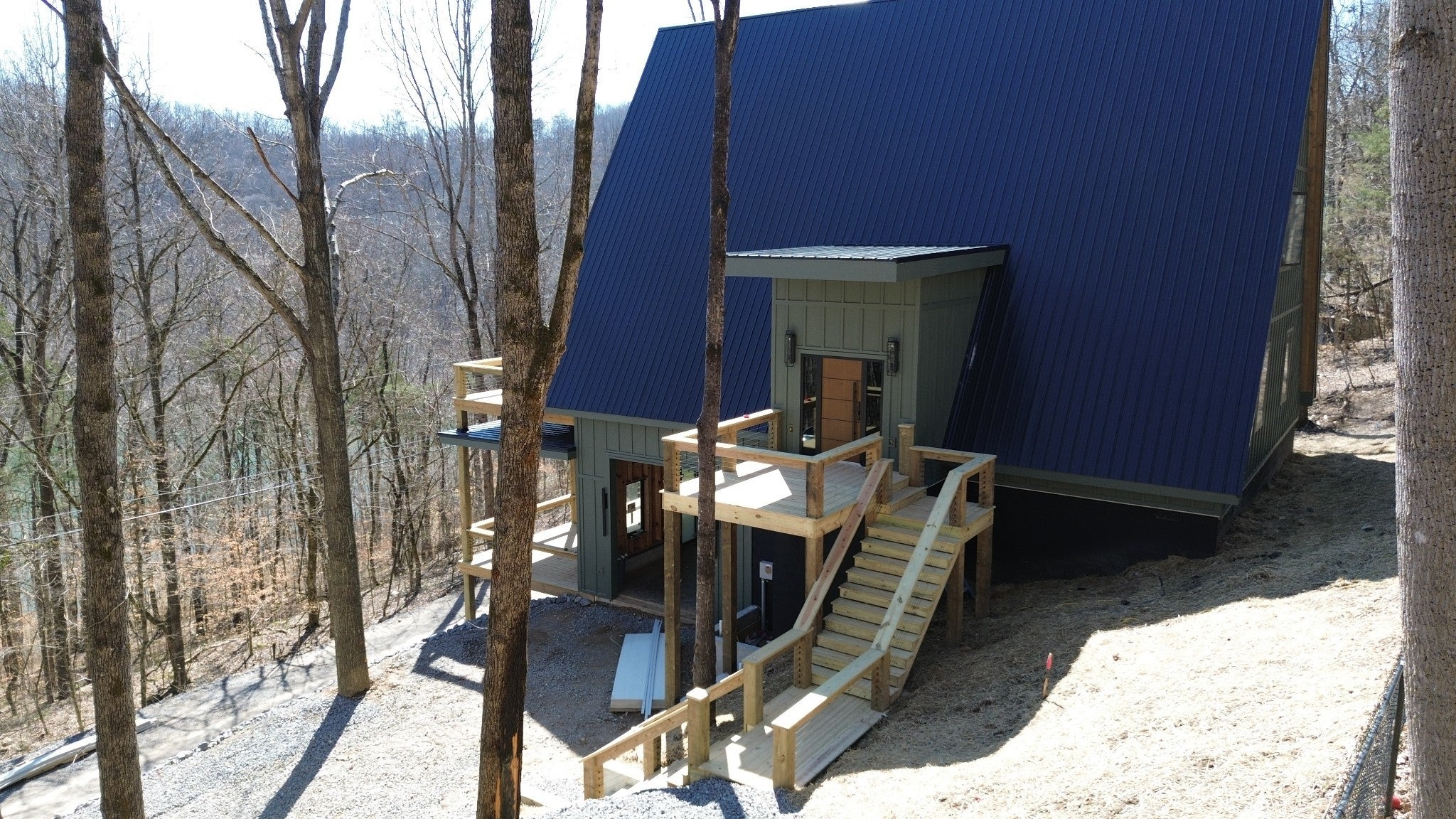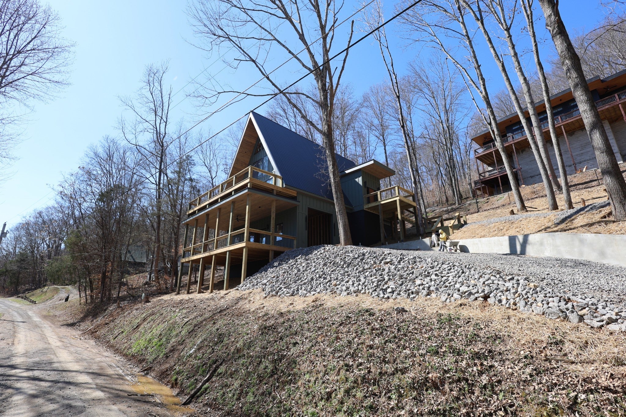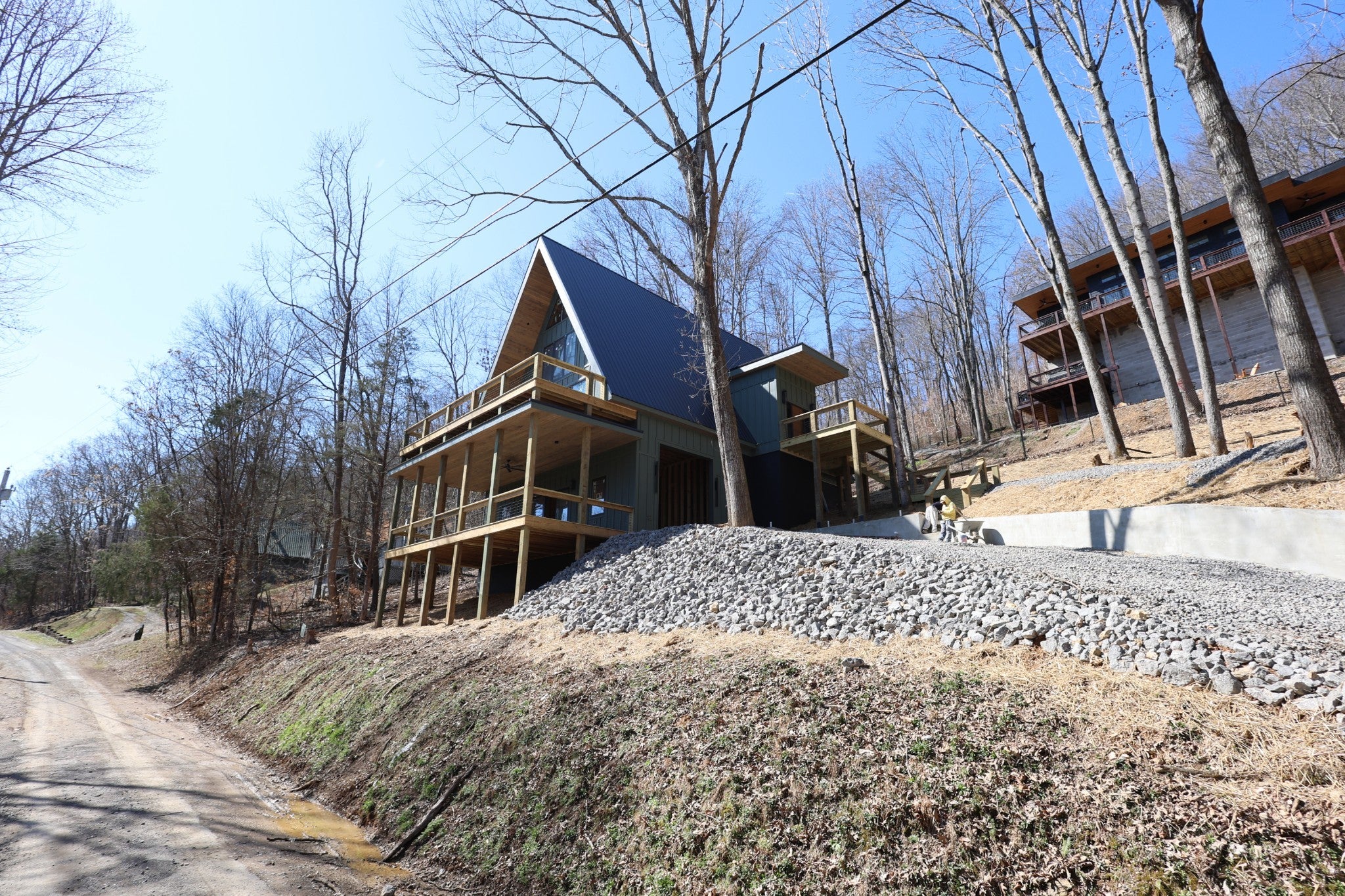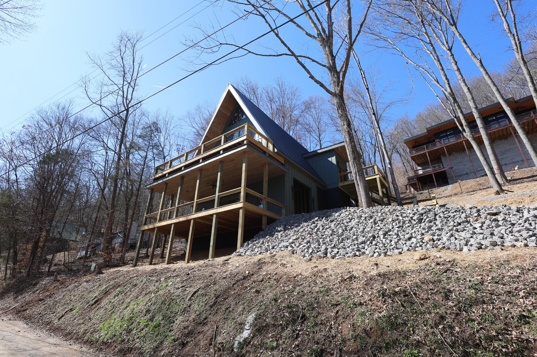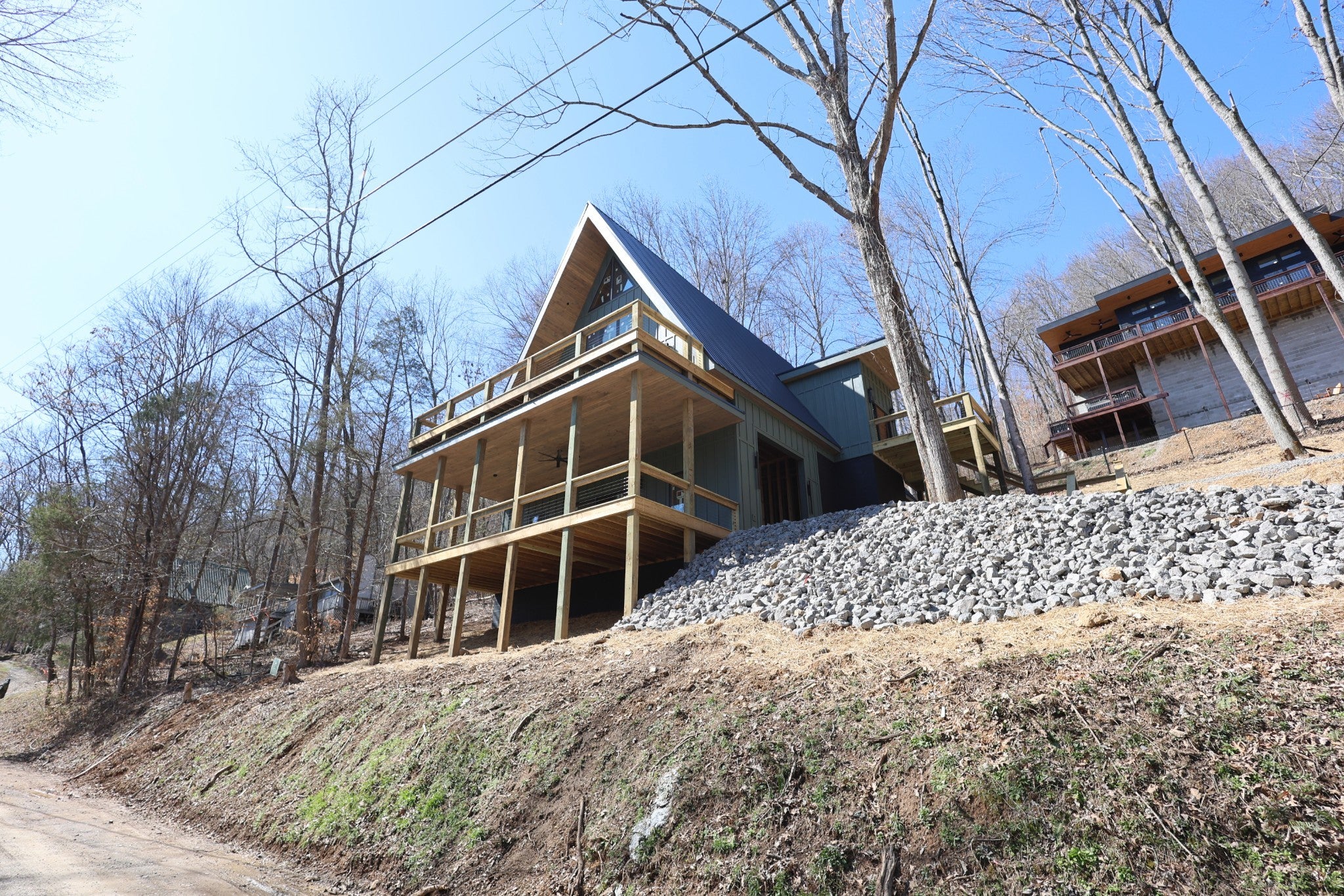 Modern A-Frame New Construction with Lake Views Discover the opportunity to create your dream home in the highly sought-after Lakeview Mountain Estates, featuring a private community boat ramp and located just minutes from Hurricane Marina with convenient lake access. This striking 3,000 sq ft A-frame is professionally designed with a modern organic aesthetic, blending earthy tones, sleek contemporary finishes, and warm, inviting elements. Currently finished to the studs, with rough-in electrical and plumbing complete, this home offers a rare chance to personalize the final selections to match your vision. The spacious primary suite includes a walk-in tile shower and a generous walk-in closet. The layout also features additional finished rooms and second full bathroom, offering versatile space for guests, a home office, or recreation. The kitchen is designed to impress with stained wood cabinetry, a built-in coffee/wine bar, and ample space for entertaining. Architectural features include soaring ceilings, massive picture windows, and sliding doors that frame stunning lake views while filling the home with natural light. Upstairs, there is an additional room and a unique mezzanine offering flexible living space—ideal for a lounge, game or pool table area, or cozy reading nook. A third-floor loft provides even more adaptable space. Outdoor living is equally impressive with two large covered decks perfect for year-round enjoyment. The oversized garage includes a 12-foot door, ideal for storing a boat or lake toys. This is a rare opportunity to own a one-of-a-kind modern A-frame in Lakeview Mountain Estates, ready for your personal finishing touches—perfect as a full-time residence, vacation retreat, or future investment.
