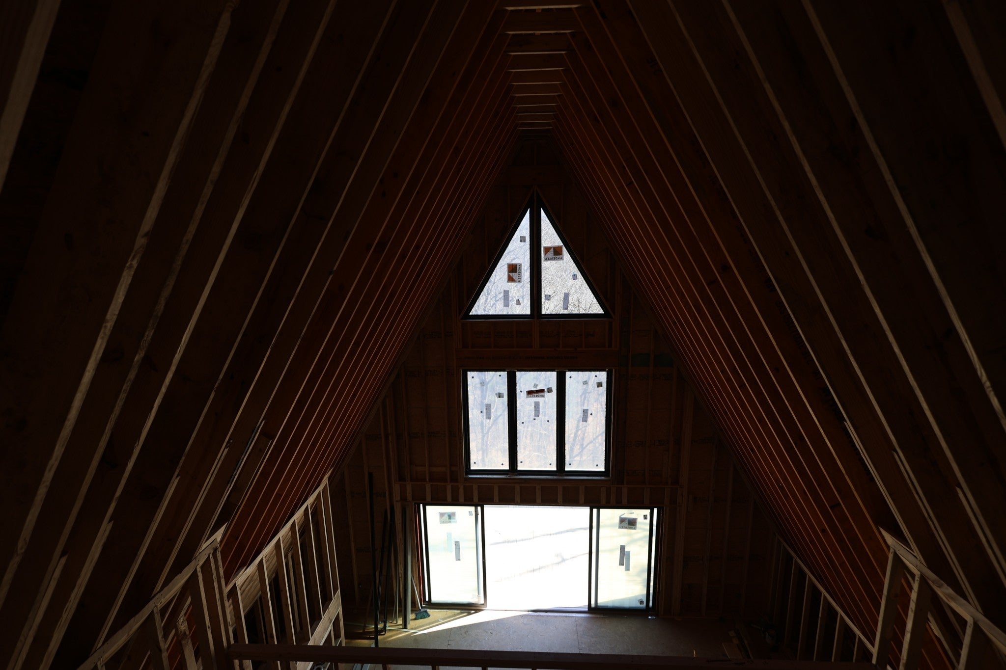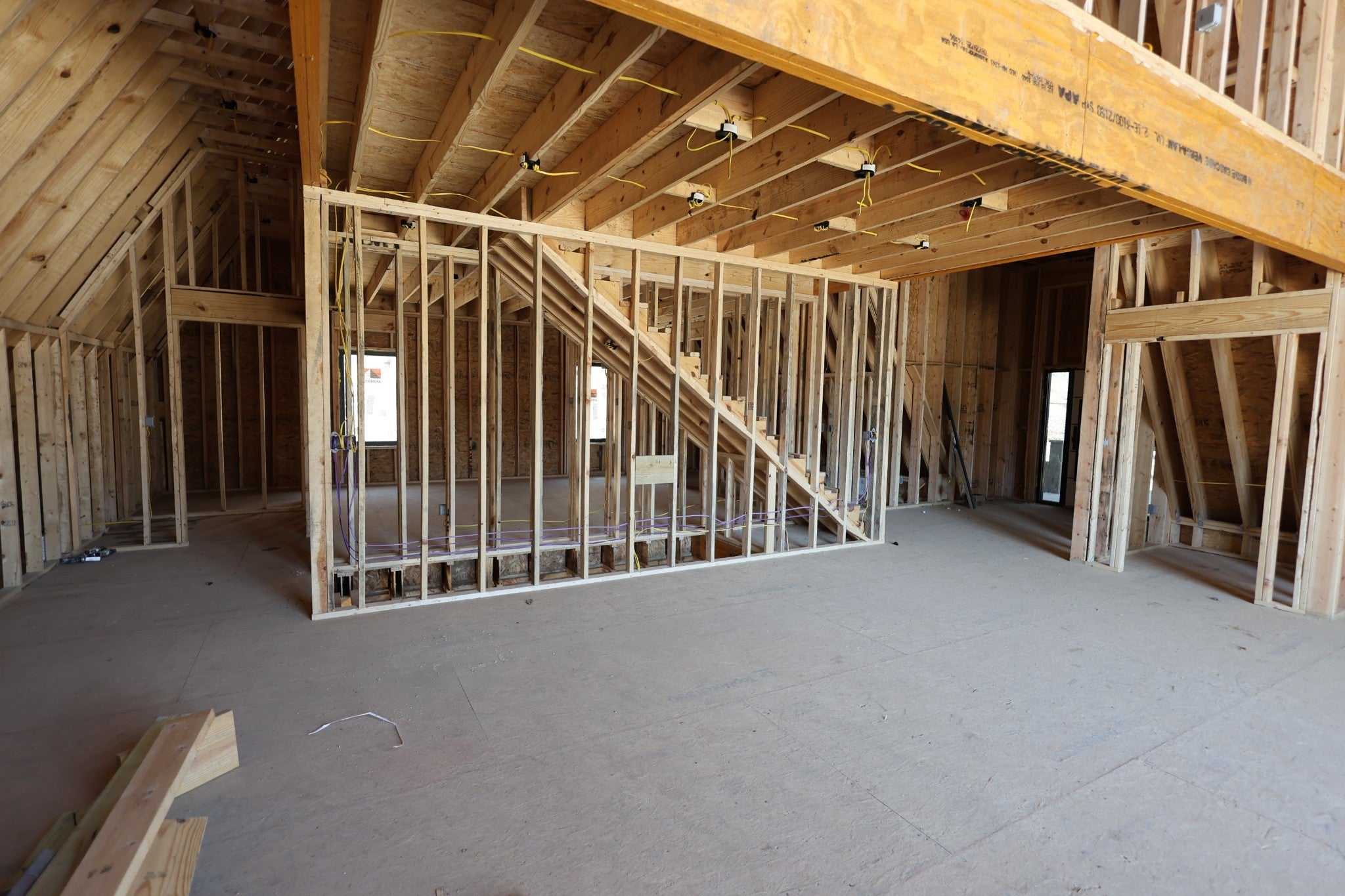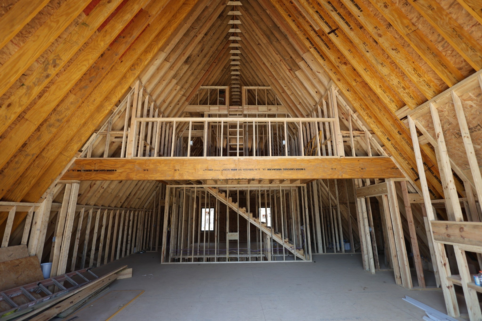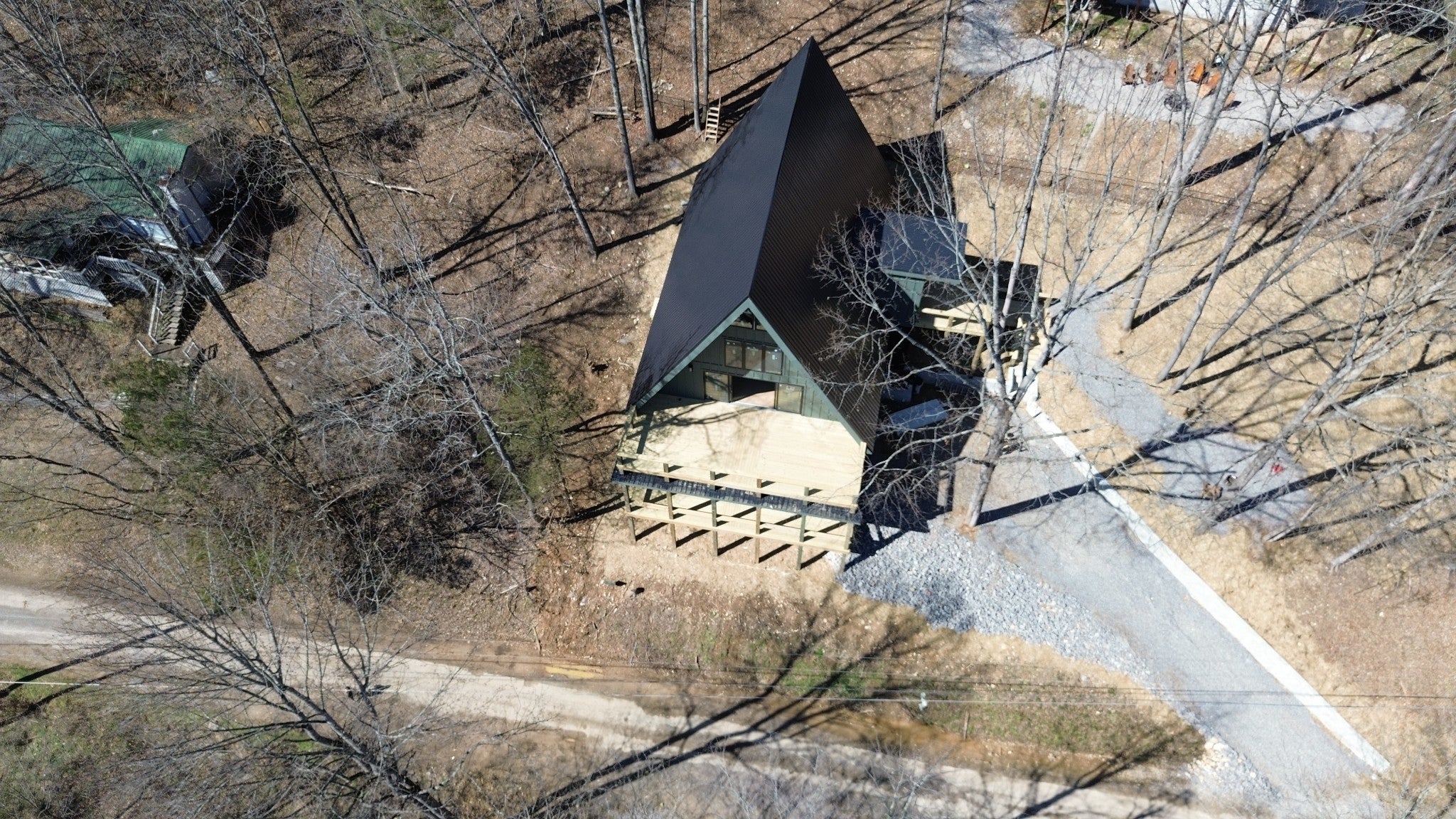 Modern A-Frame New Construction with Lake Views Discover the opportunity to create your dream home in the highly sought-after Lakeview Mountain Estates, featuring a private community boat ramp and located just minutes from Hurricane Marina with convenient lake access. This striking 3,000 sq ft A-frame is professionally designed with a modern organic aesthetic, blending earthy tones, sleek contemporary finishes, and warm, inviting elements. Currently finished to the studs, with rough-in electrical and plumbing complete, this home offers a rare chance to personalize the final selections to match your vision. The spacious primary suite includes a walk-in tile shower and a generous walk-in closet. The layout also features additional finished rooms and second full bathroom, offering versatile space for guests, a home office, or recreation. The kitchen is designed to impress with stained wood cabinetry, a built-in coffee/wine bar, and ample space for entertaining. Architectural features include soaring ceilings, massive picture windows, and sliding doors that frame stunning lake views while filling the home with natural light. Upstairs, there is an additional room and a unique mezzanine offering flexible living space—ideal for a lounge, game or pool table area, or cozy reading nook. A third-floor loft provides even more adaptable space. Outdoor living is equally impressive with two large covered decks perfect for year-round enjoyment. The oversized garage includes a 12-foot door, ideal for storing a boat or lake toys. This is a rare opportunity to own a one-of-a-kind modern A-frame in Lakeview Mountain Estates, ready for your personal finishing touches—perfect as a full-time residence, vacation retreat, or future investment.