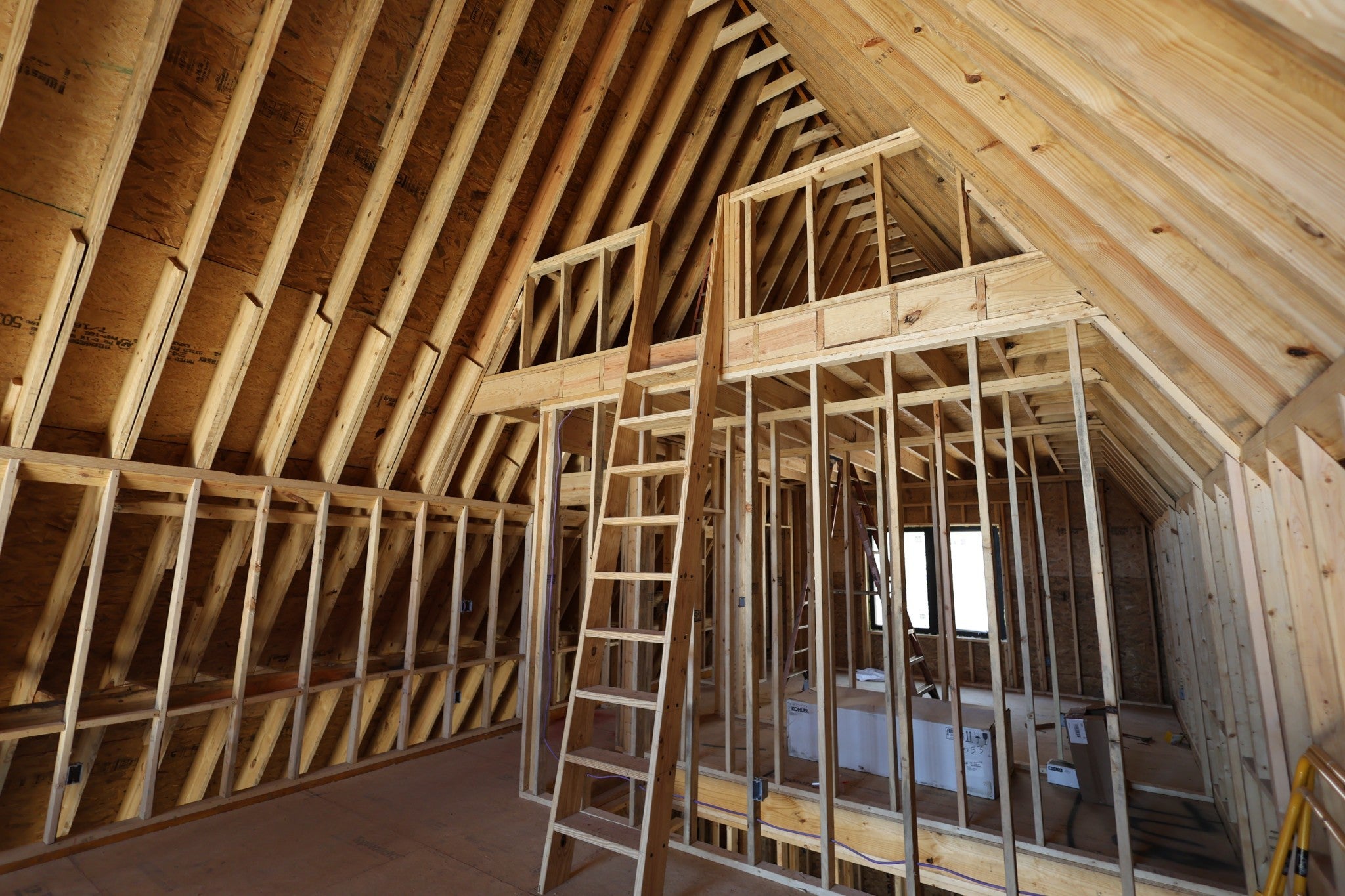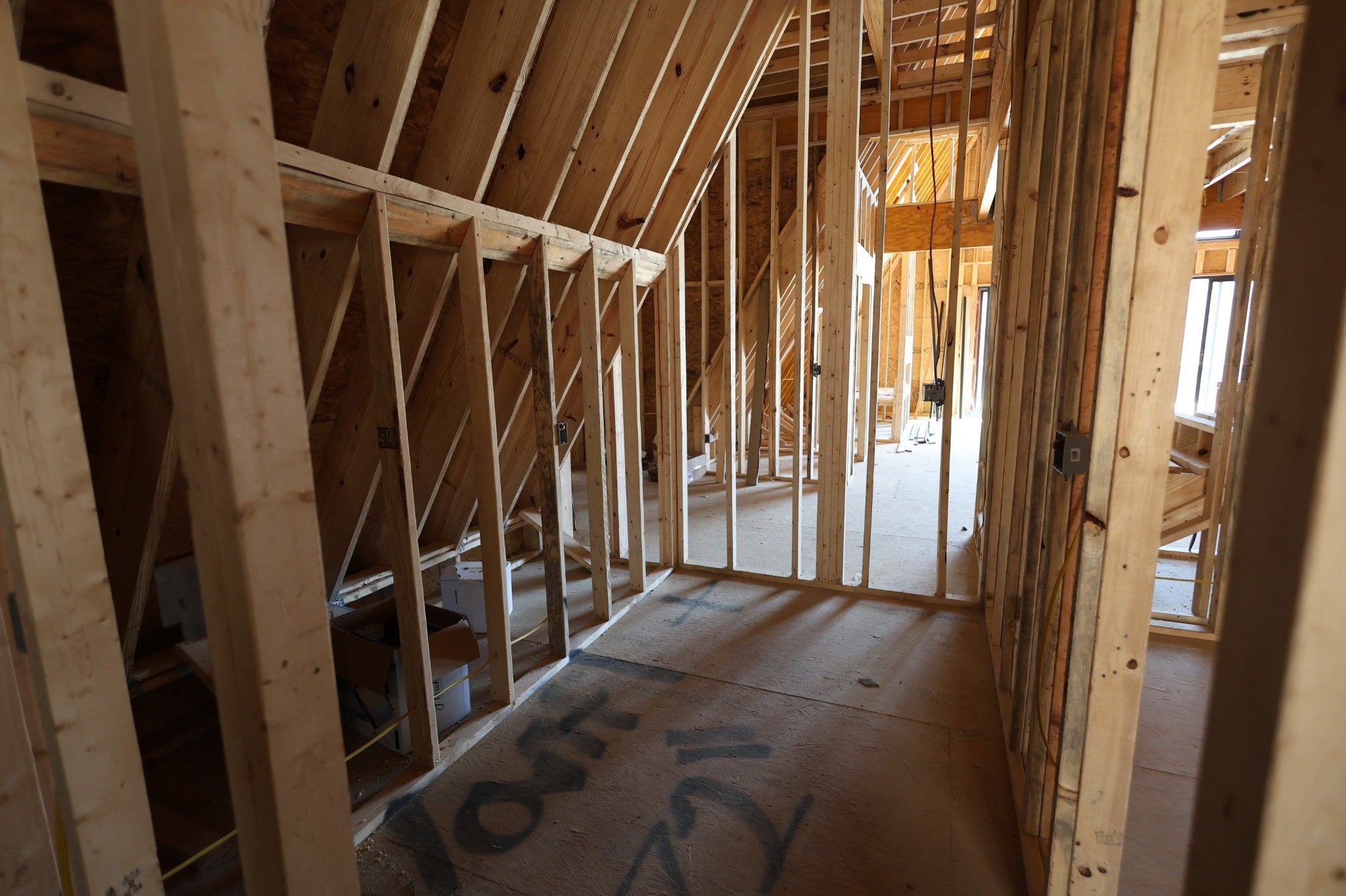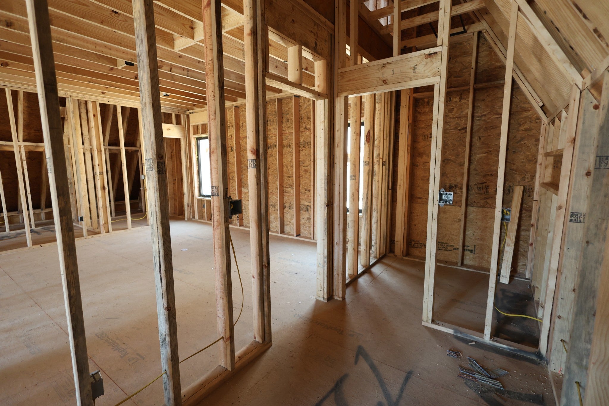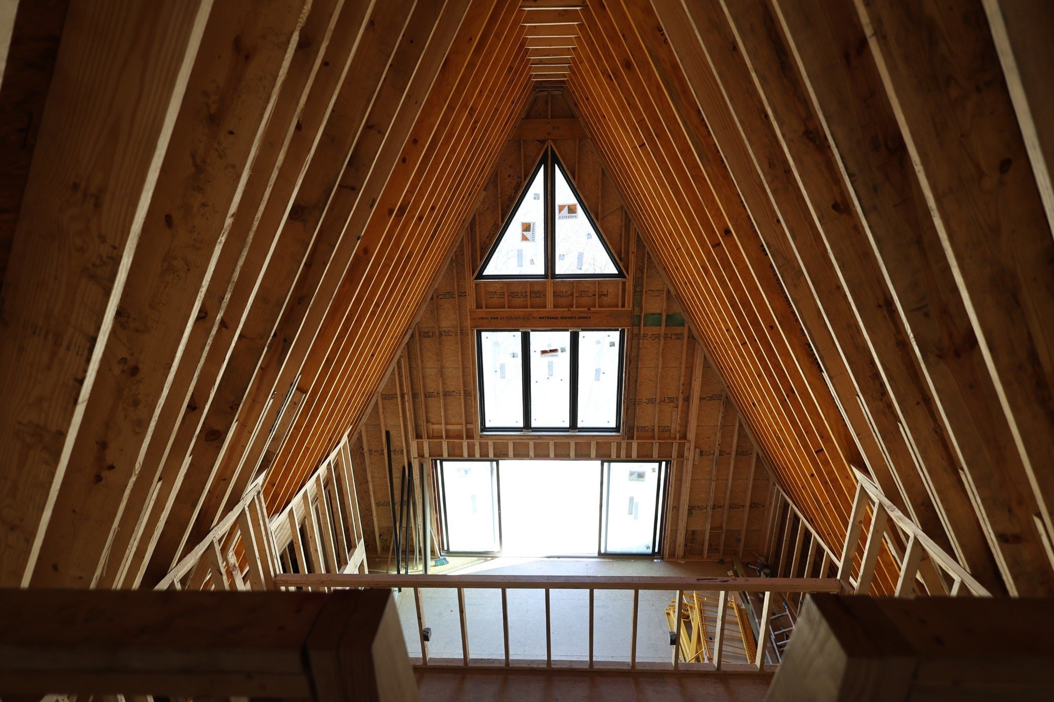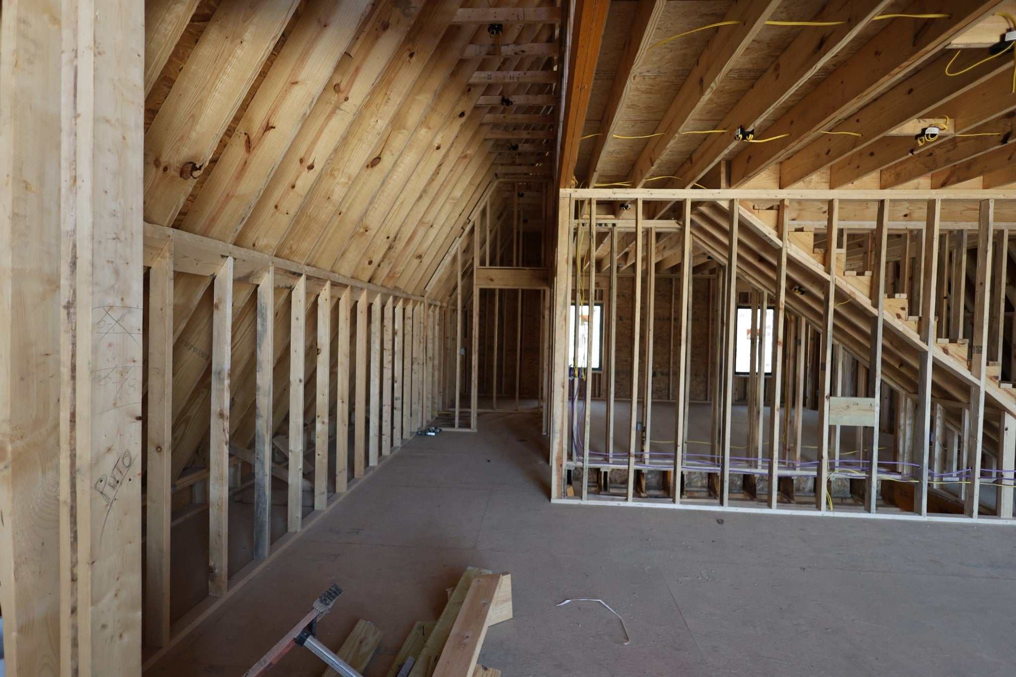 Modern A-Frame New Construction with Lake Views Discover the opportunity to create your dream home in the highly sought-after Lakeview Mountain Estates, featuring a private community boat ramp and located just minutes from Hurricane Marina with convenient lake access. This striking 3,000 sq ft A-frame is professionally designed with a modern organic aesthetic, blending earthy tones, sleek contemporary finishes, and warm, inviting elements. Currently finished to the studs, with rough-in electrical and plumbing complete, this home offers a rare chance to personalize the final selections to match your vision. The spacious primary suite includes a walk-in tile shower and a generous walk-in closet. The layout also features additional finished rooms and second full bathroom, offering versatile space for guests, a home office, or recreation. The kitchen is designed to impress with stained wood cabinetry, a built-in coffee/wine bar, and ample space for entertaining. Architectural features include soaring ceilings, massive picture windows, and sliding doors that frame stunning lake views while filling the home with natural light. Upstairs, there is an additional room and a unique mezzanine offering flexible living space—ideal for a lounge, game or pool table area, or cozy reading nook. A third-floor loft provides even more adaptable space. Outdoor living is equally impressive with two large covered decks perfect for year-round enjoyment. The oversized garage includes a 12-foot door, ideal for storing a boat or lake toys. This is a rare opportunity to own a one-of-a-kind modern A-frame in Lakeview Mountain Estates, ready for your personal finishing touches—perfect as a full-time residence, vacation retreat, or future investment.