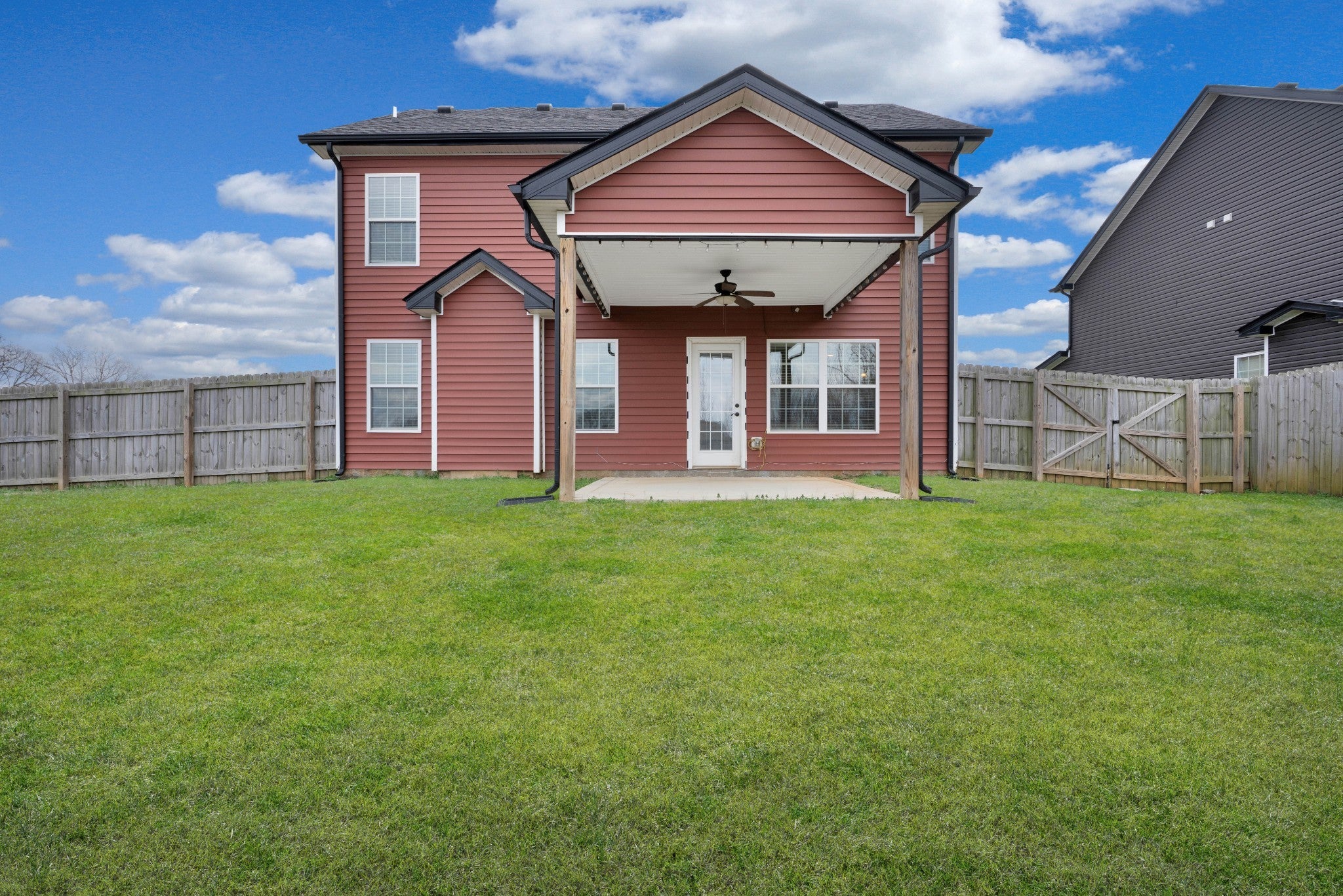 This beautifully designed Hollingsworth Floor Plan offers 4 bedrooms and 2.5 baths, blending style and functionality throughout. The spacious living room features a cozy fireplace, while the gourmet kitchen includes granite countertops, stainless steel appliances, a tile backsplash, and ample cabinetry. Tile flooring accents all wet areas, complemented by rich wood floors in the main living spaces. The luxurious primary suite showcases a granite composite shower and dual vanities, creating the perfect retreat. A must-see home that combines comfort, quality, and modern elegance!