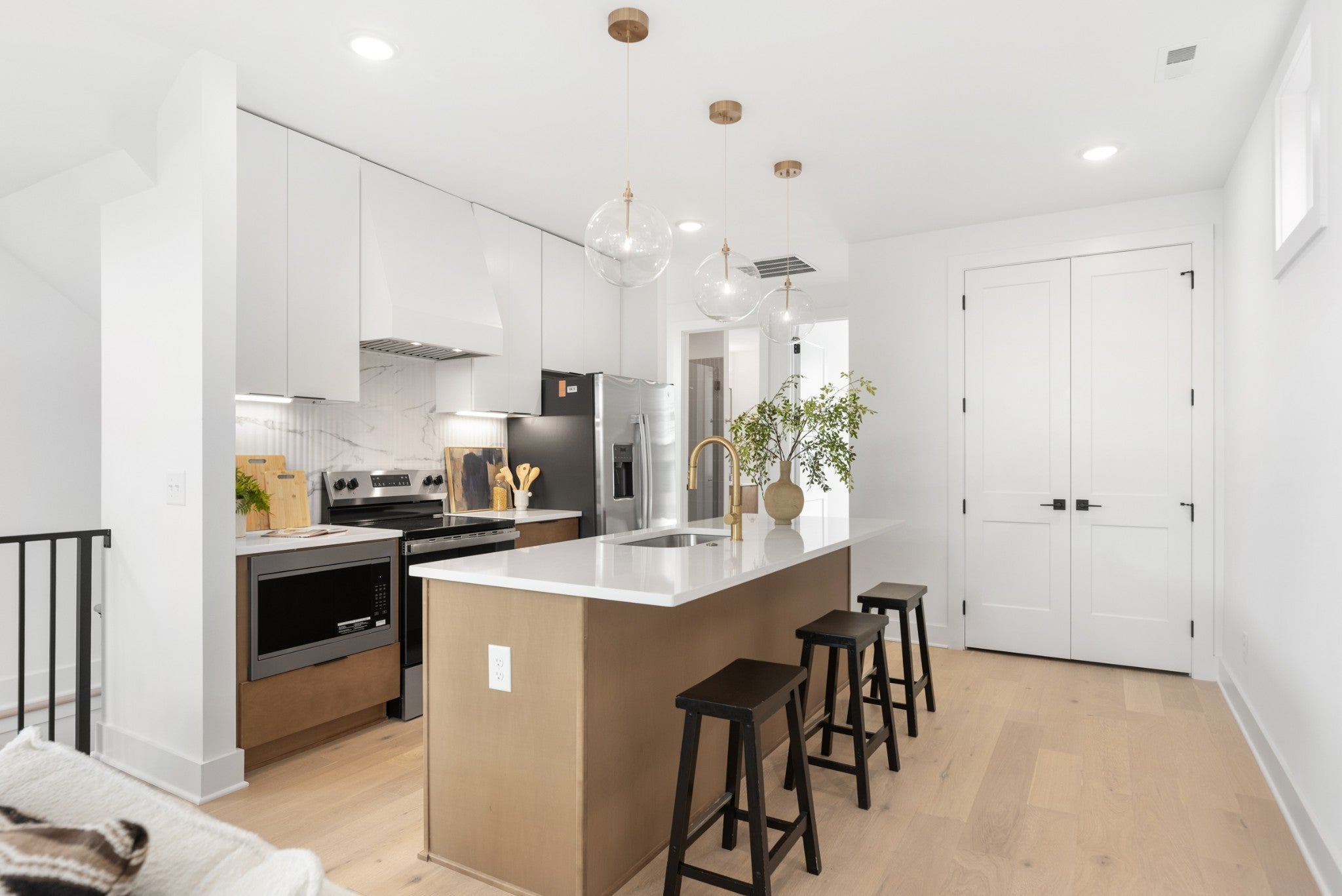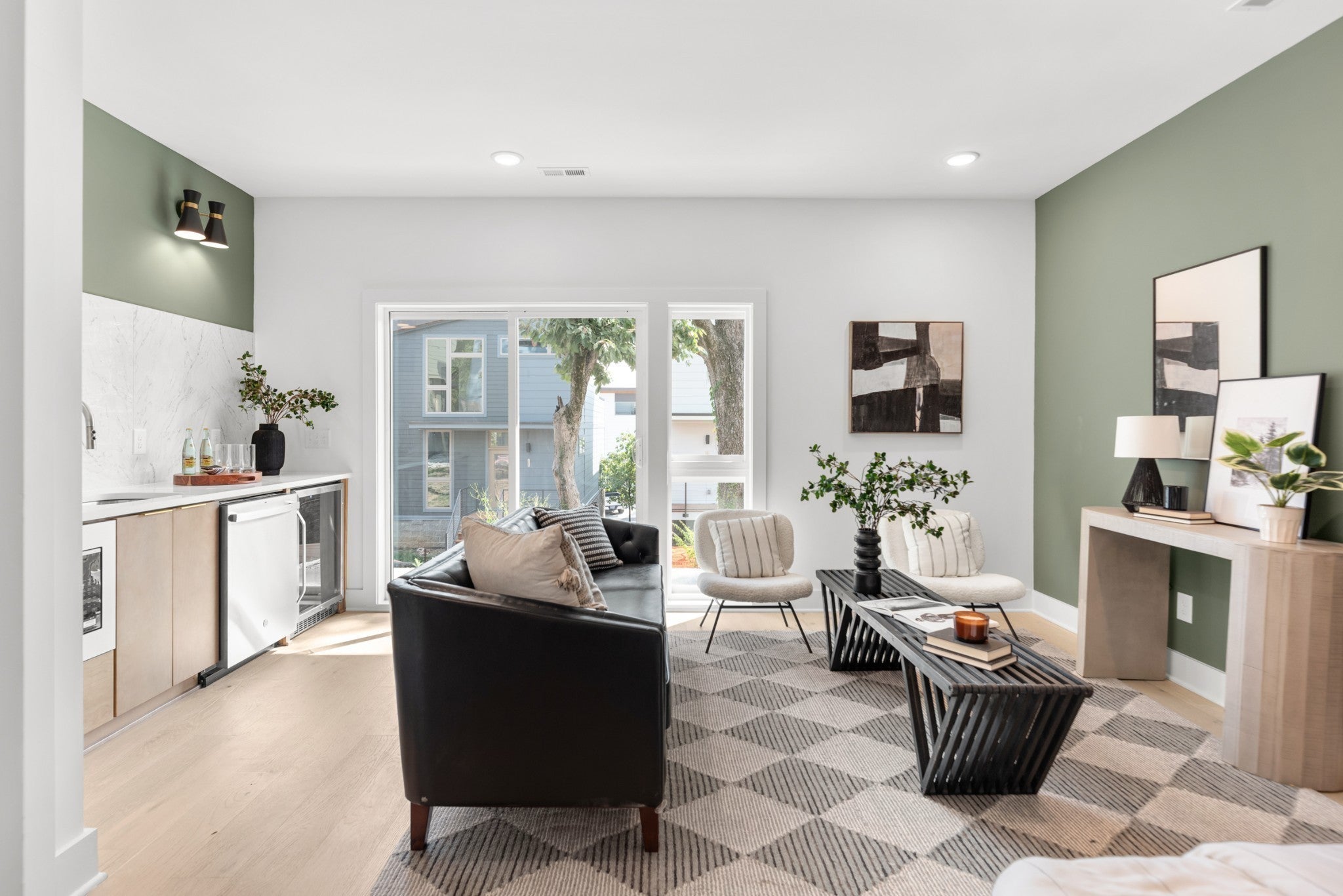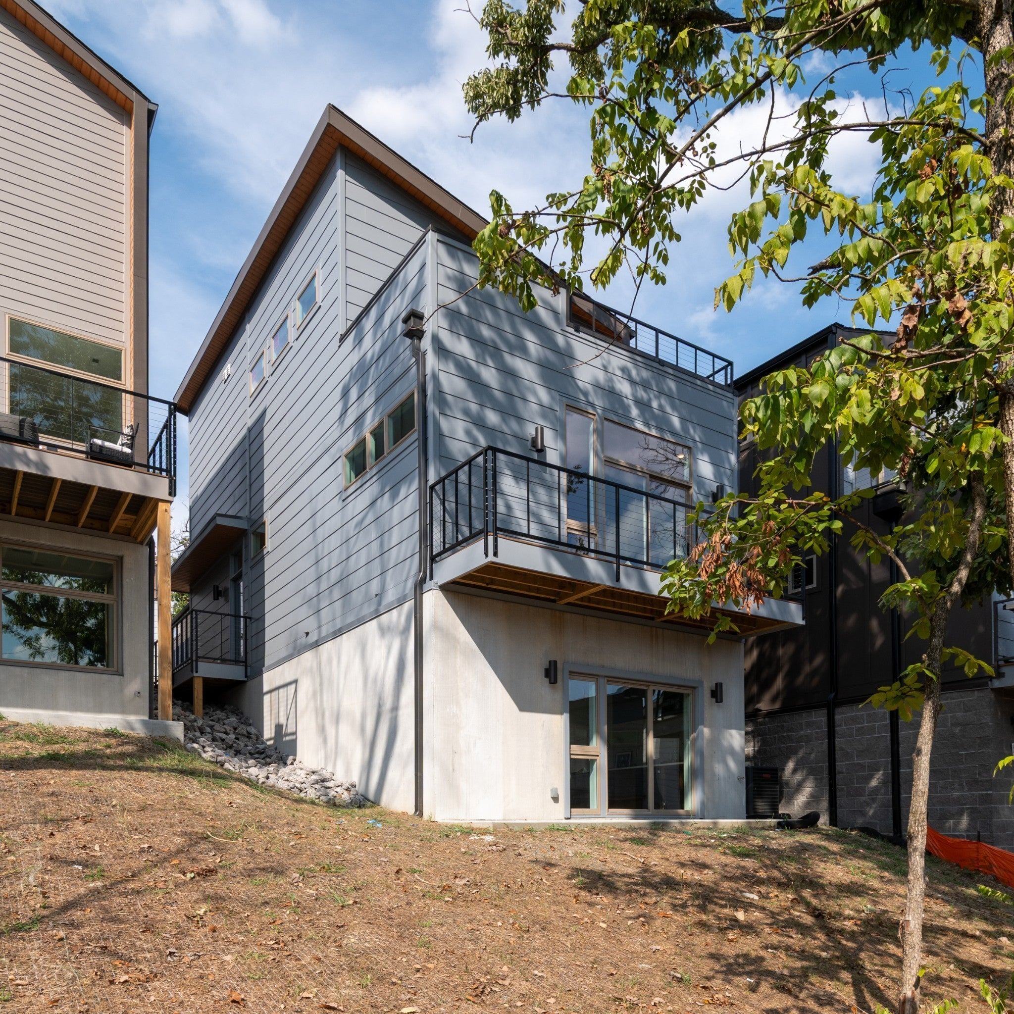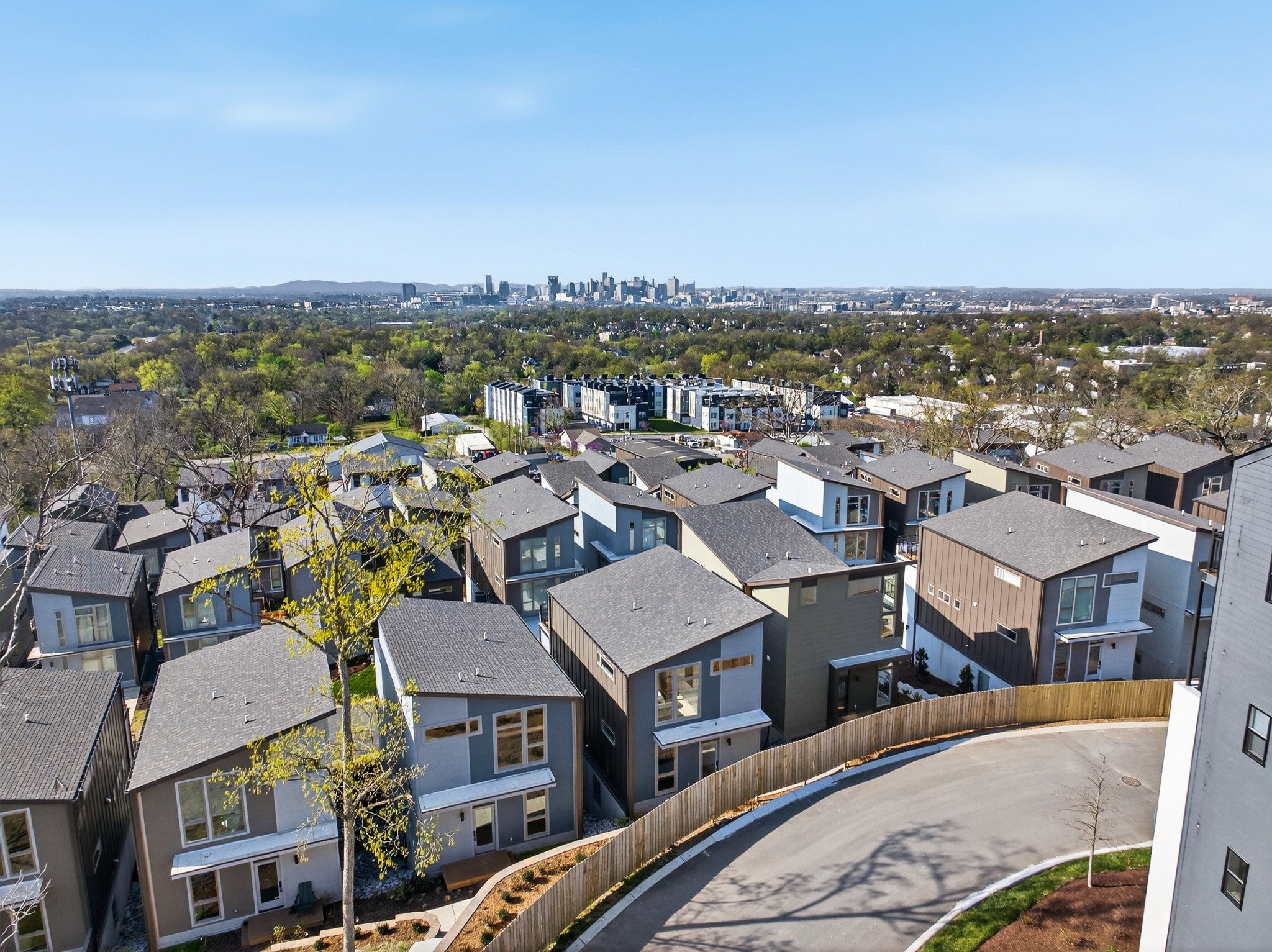 Mid-century modern inspired architecture and distinctive floor plans, HighView is not the typical new build. Perched on a hillside loop road offering wonderful views of the skyline, this tranquil community is tucked away off a quiet side street and features a walking trail in and around an old growth tree save courtyard, outdoor gathering spaces as well as a dog park. Strategically located in the Highland Heights neighborhood of East Nashville just south of Trinity Lane between the booming neighborhood retail corridors of Gallatin Pk & Dickerson Rd., HighView offers super quick access to town via Ellington Parkway. Phase 3 is the final section of the neighborhood and is located on the upper part of the loop road Edwin Circle. It will offer some of the best locations and views in the neighborhood and will feature some significant upgrades that are now included in the standard pricing. Core Development and EOA Architecture have made improvements to the floor plans from earlier phases, updated finishes and design selections and are excited to be working with their new building partner, Paragon Group, who offer one of the best warranty services in our market. Construction is already well underway with a few units available now and more coming throughout 2026. This Nighthawk plan is a unique floor plan with a very flexible lower level concept. The entry level offers an open living room, dining and kitchen plus a secondary bedroom suite. Upstairs is a primary bedroom suite with vaulted ceilings, laundry hook-ups and a common bonus room that walks out to a top level deck overlooking the treed courtyard and views of downtown. The lower level walk-out basement level features a kitchenette and secondary laundry hook-ups. It offers access from the interior staircase or from rear doors. It can be a 3rd bedroom suite, a Rec Room/den/theater, or a separate rentable studio.