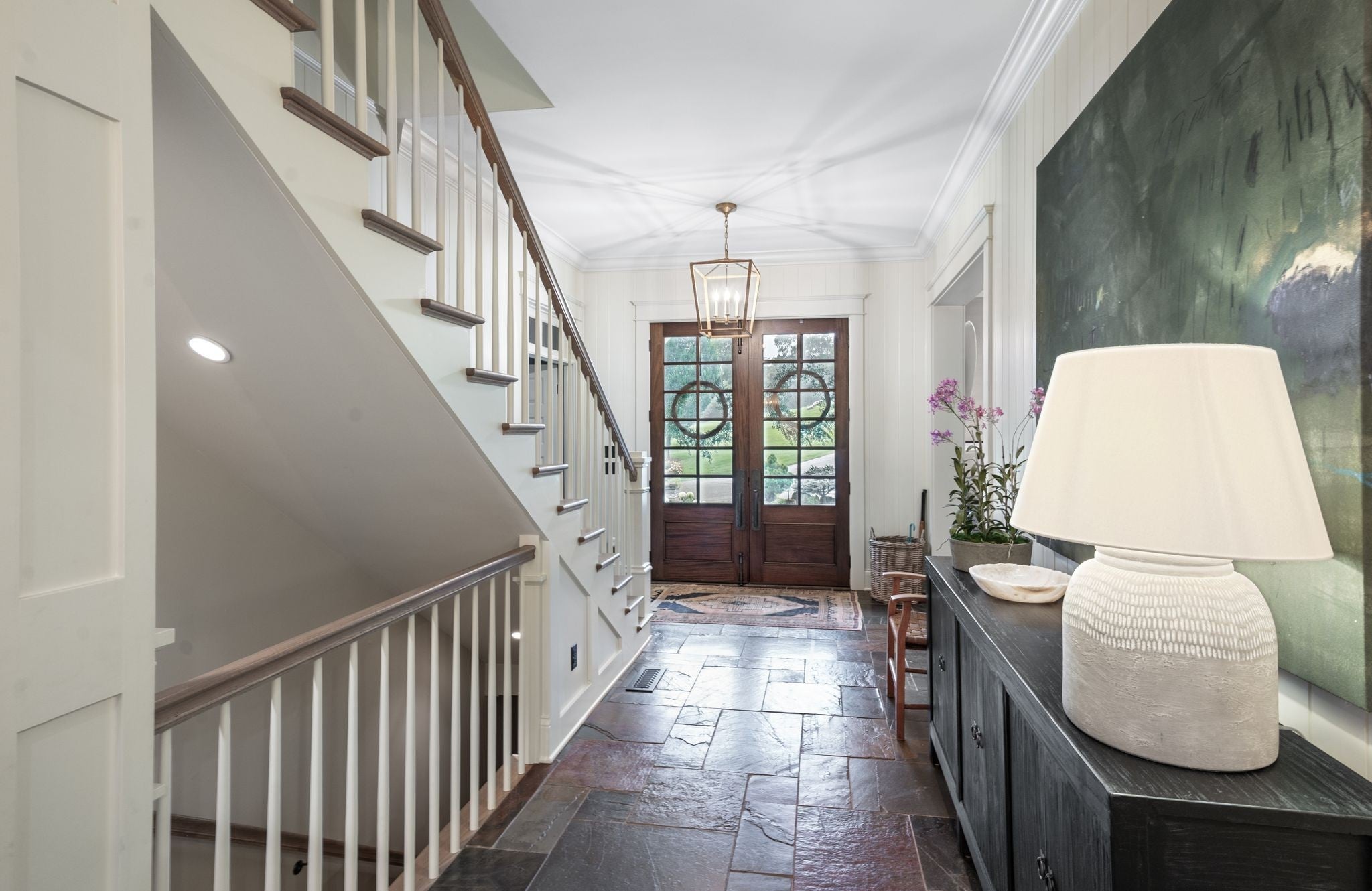 Conveniently located in the gated-community of Balleroy, this stunning 5 bedroom/5.5 bath home sits on a private 2.22 acres in the heart of Brentwood. Another quality built home by Hammond Brandt. Beautifully updated throughout and ready for a new owner, this is a rare buying opportunity. Renovations include all hardwood floors refinished, remodeled half bath on main level, remodeled primary bath shower, updated kitchen backsplashes, plumbing fixtures and lighting throughout along with updated butler's pantry and laundry. The floor plan offers a primary on the main level plus an office with 3 bedrooms upstairs and one additional bedroom and full bath in the finished basement. The chef's kitchen, open to both the family room and den, is perfect for entertaining family and friends. The charming screened-in porch is a sanctuary surrounded by lush trees and landscaping. Along with the upstairs bedrooms, there is fantastic flex space complete with built-in desks. The finished basement is the ideal hangout with a gym, recreation area, bedroom/full bath and mini kitchen. Home also features a new roof, new gutters, fresh interior paint, new hot tub, new front doors and hardware, and more. For a complete list of updates, see the document section.