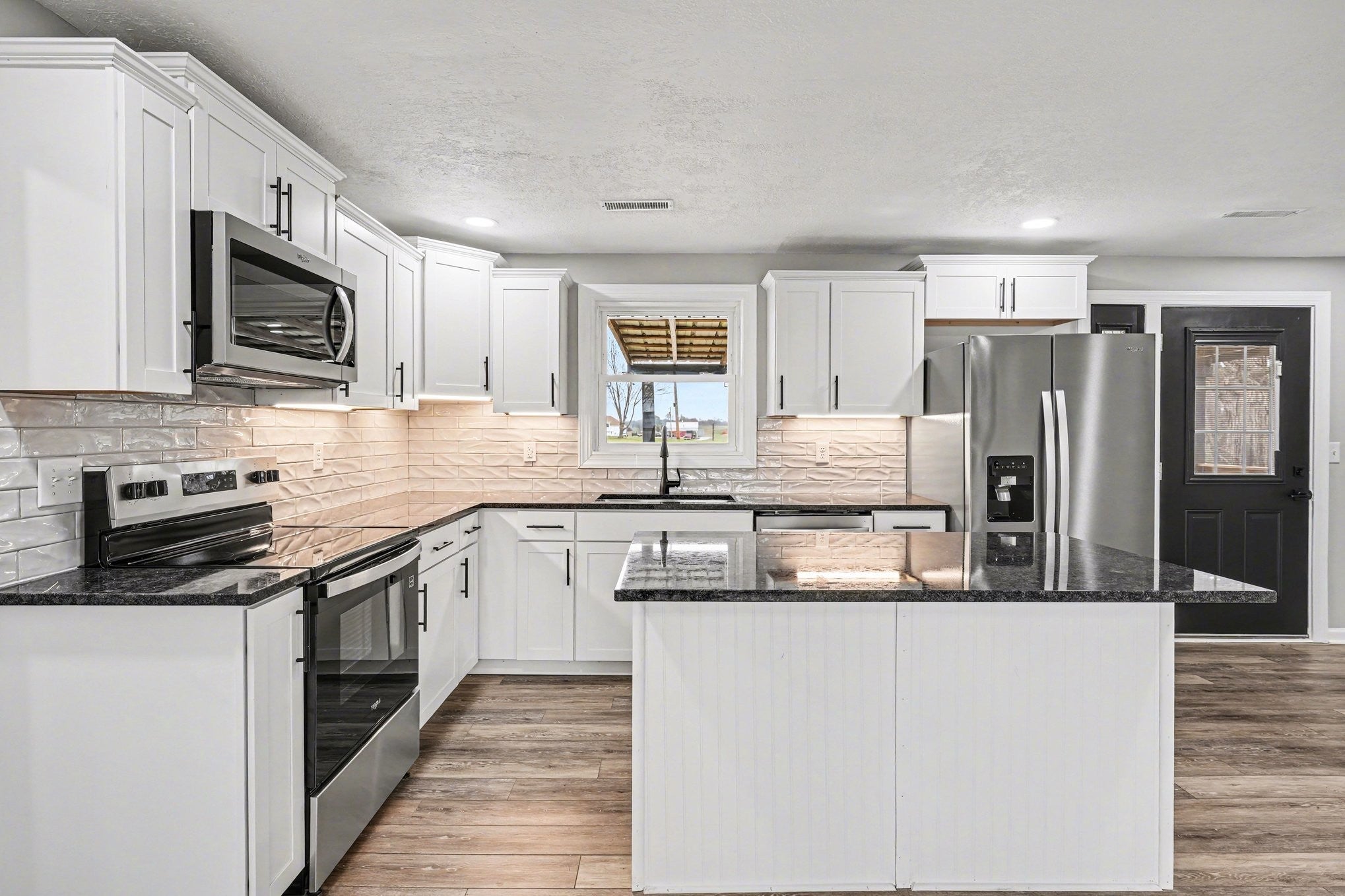 - Electric Oven, Electric Range, Dishwasher, Microwave, Refrigerator, Stainless Steel Appliance(s)