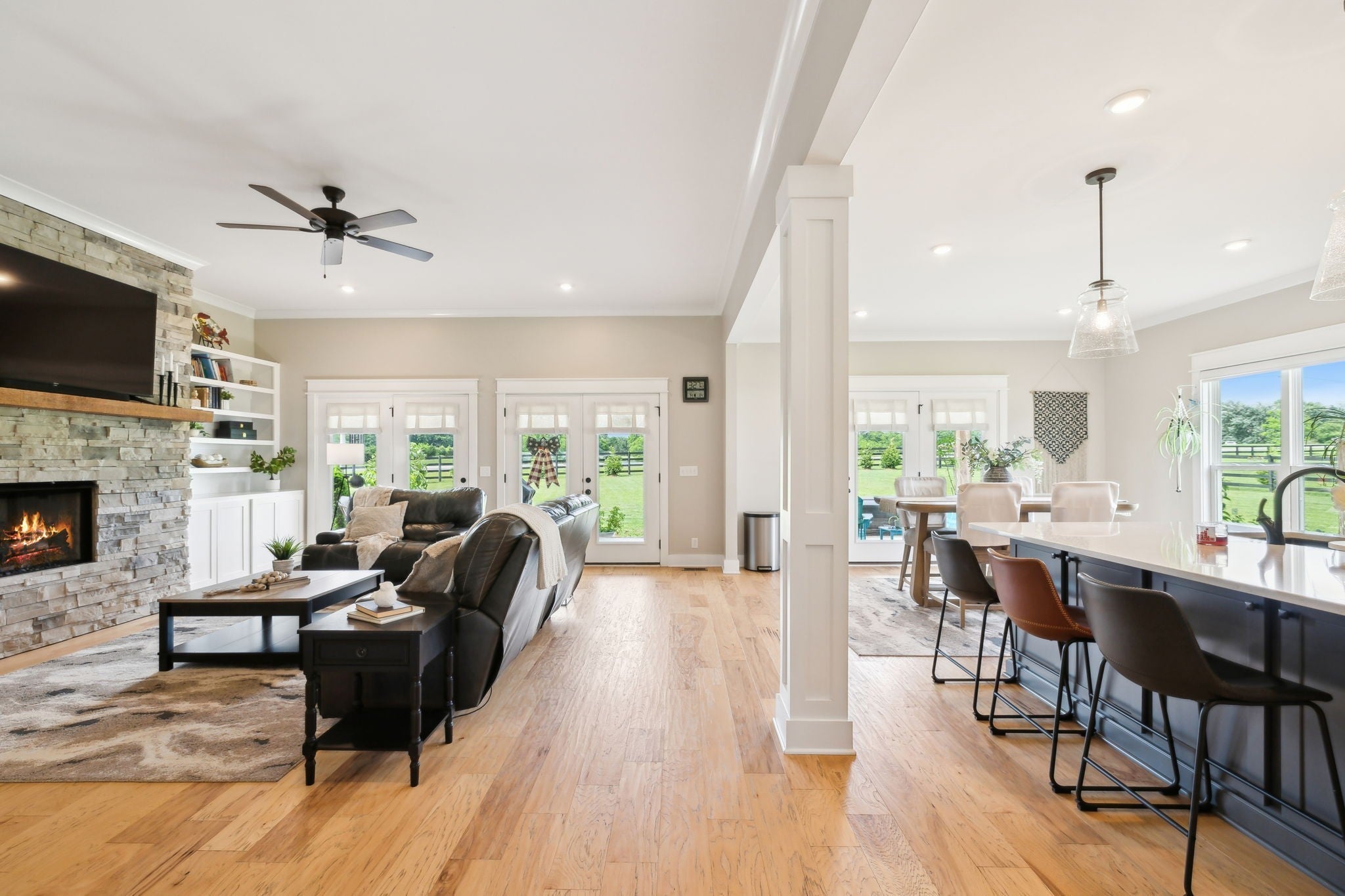 ** Up to $10,000 in buyer's closing cost paid when using preferred lender - Contact listing agent for details ** Looking for luxury, space, and peace just outside the city? This beautifully maintained, nearly new home blends modern elegance with the quiet charm of country living. Located in a serene Milton neighborhood, this 4-bedroom, 4.5-bath gem offers the ideal layout for expanding households. Step inside to an open-concept design flooded with natural light. The spacious living area features a custom stone gas fireplace and direct access to the oversized covered deck - perfect for indoor-outdoor living. The gourmet kitchen impresses with quartz countertops, a gas cooktop range, huge island with seating, tile backsplash, pantry, and abundant cabinet space. Retreat to the luxurious main-level primary suite with private patio access, spa-like bath with double vanities, freestanding tub, walk-in tile shower, and a massive custom closet. A second main-floor bedroom with en-suite bath makes the perfect guest suite or home office. Upstairs, you'll find two large bedrooms - each with its own bathroom - plus a huge bonus room ready to be your home theater, playroom, or creative studio. There's also a dedicated den for work, hobbies, or music production. The fully fenced backyard features a sprawling patio ideal for grilling, soaking up the sun, or relaxing under the covered area with a cold drink in hand. Just minutes to MTSU, Center Hill Lake, shopping, dining, and all Murfreesboro amenities.