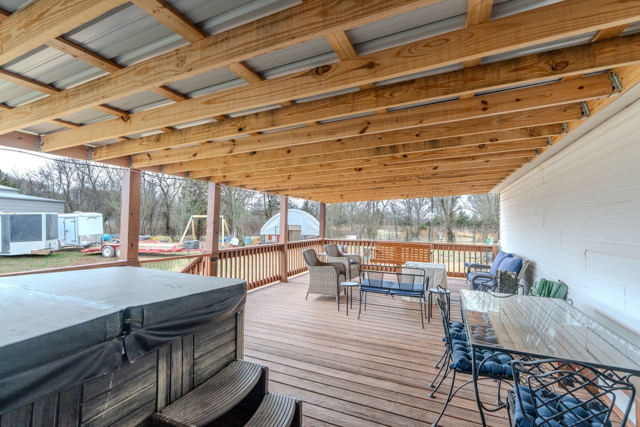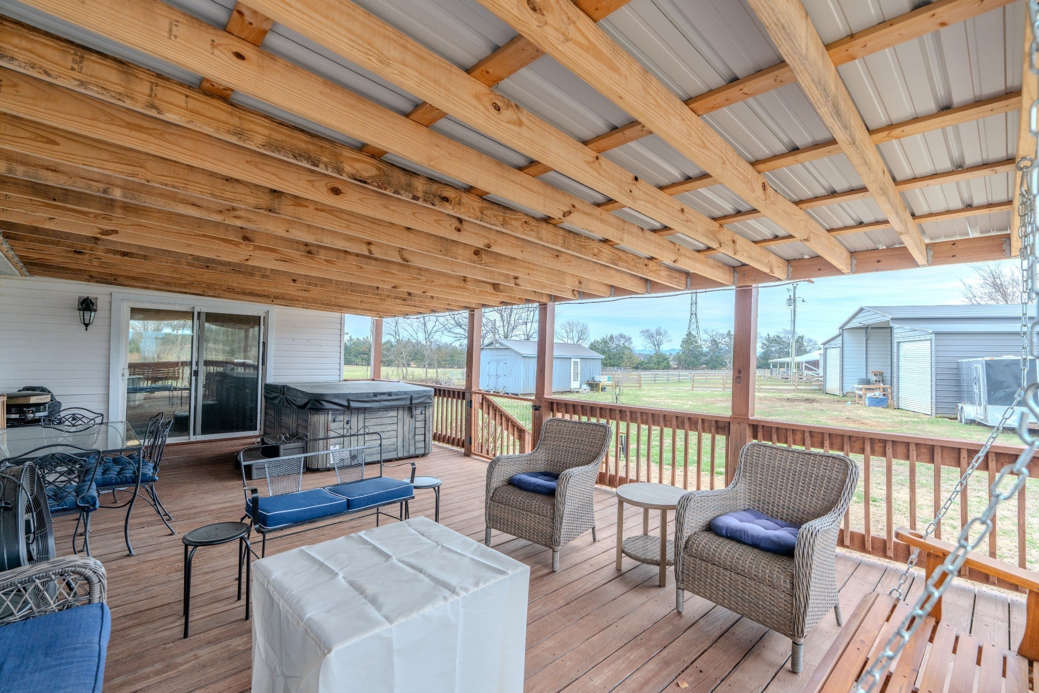 Great mini farm on 7 acres with fenced area for livestock or horses. Great garden spot and 8x16 garden shed, 30x50 hay barn with storage on each side. Large three car carport, solar panels, water and air filtration systems on home. Huge kitchen completely remodeled with new appliances, cabinets with pullouts and large island. Electric insert in fireplace. Great 16x30 covered back porch. 30 AMP RV hookup.