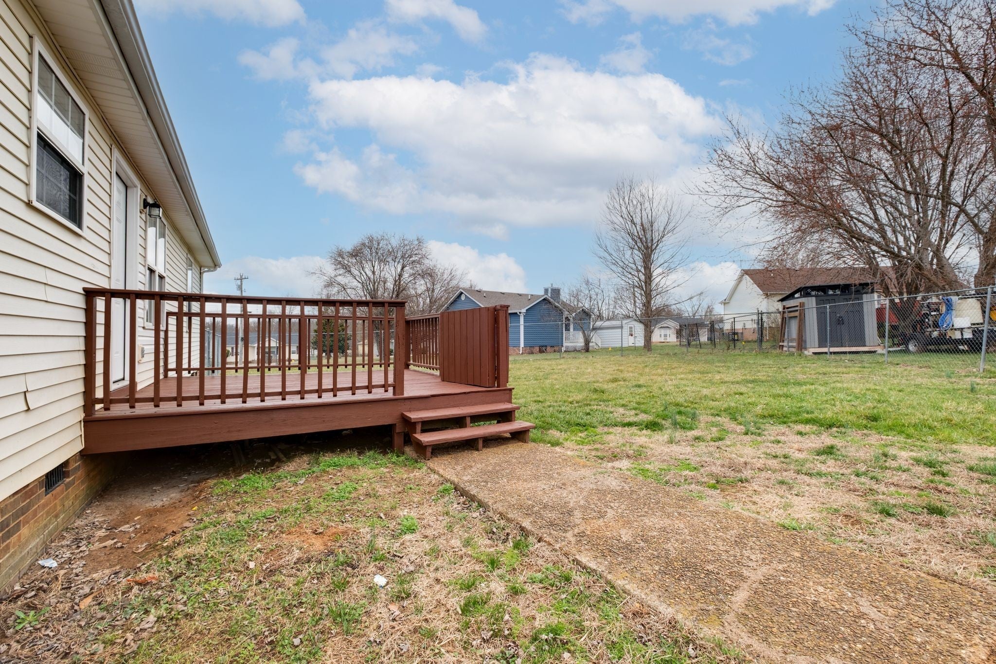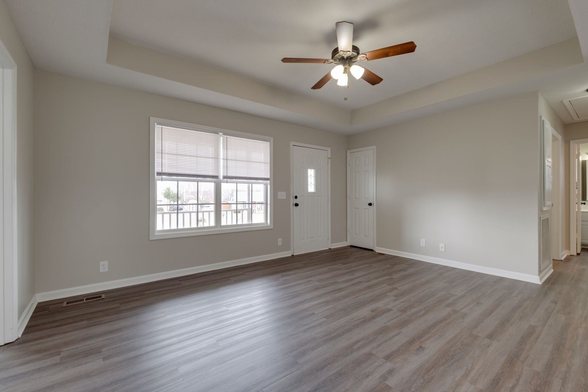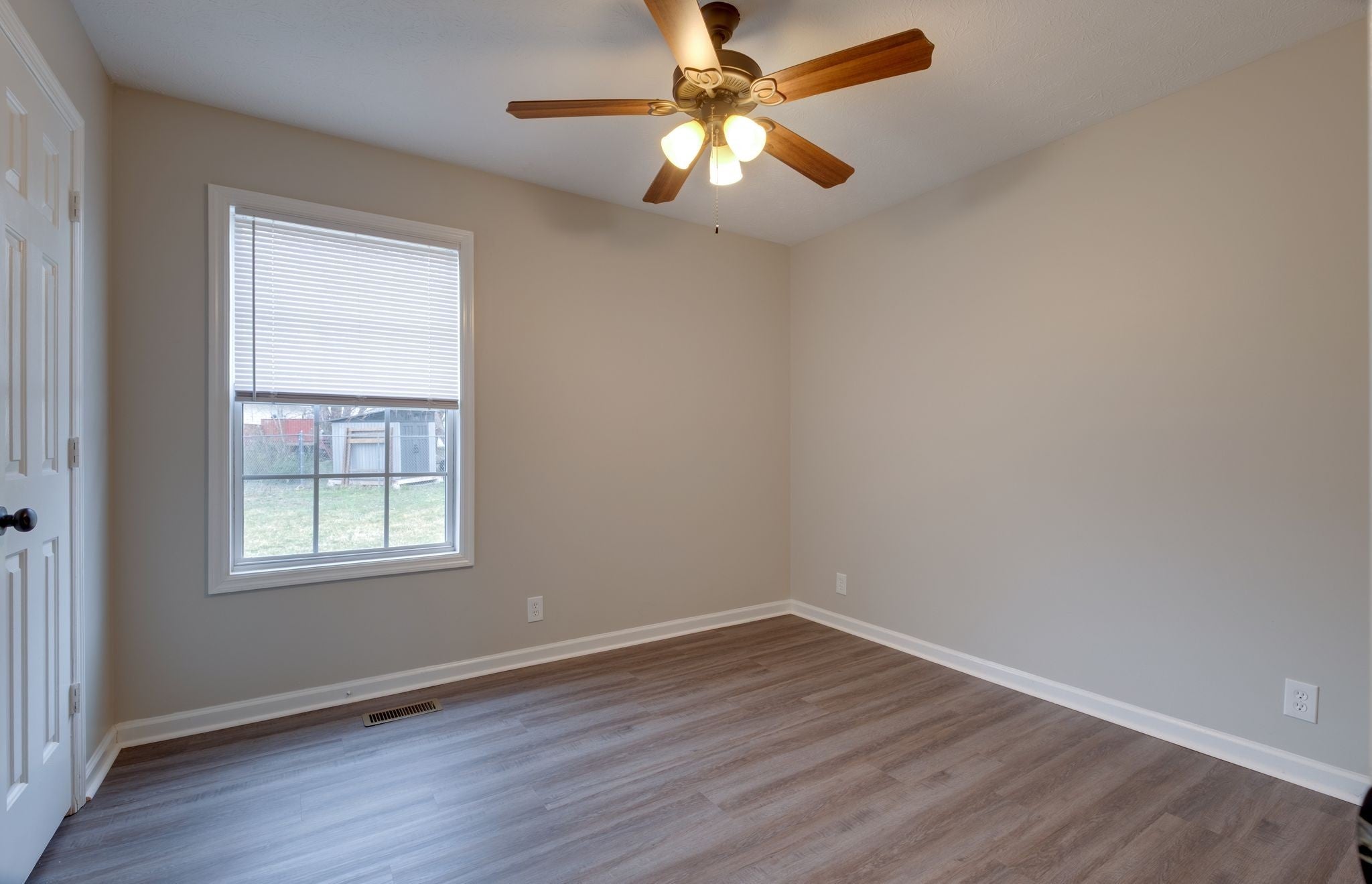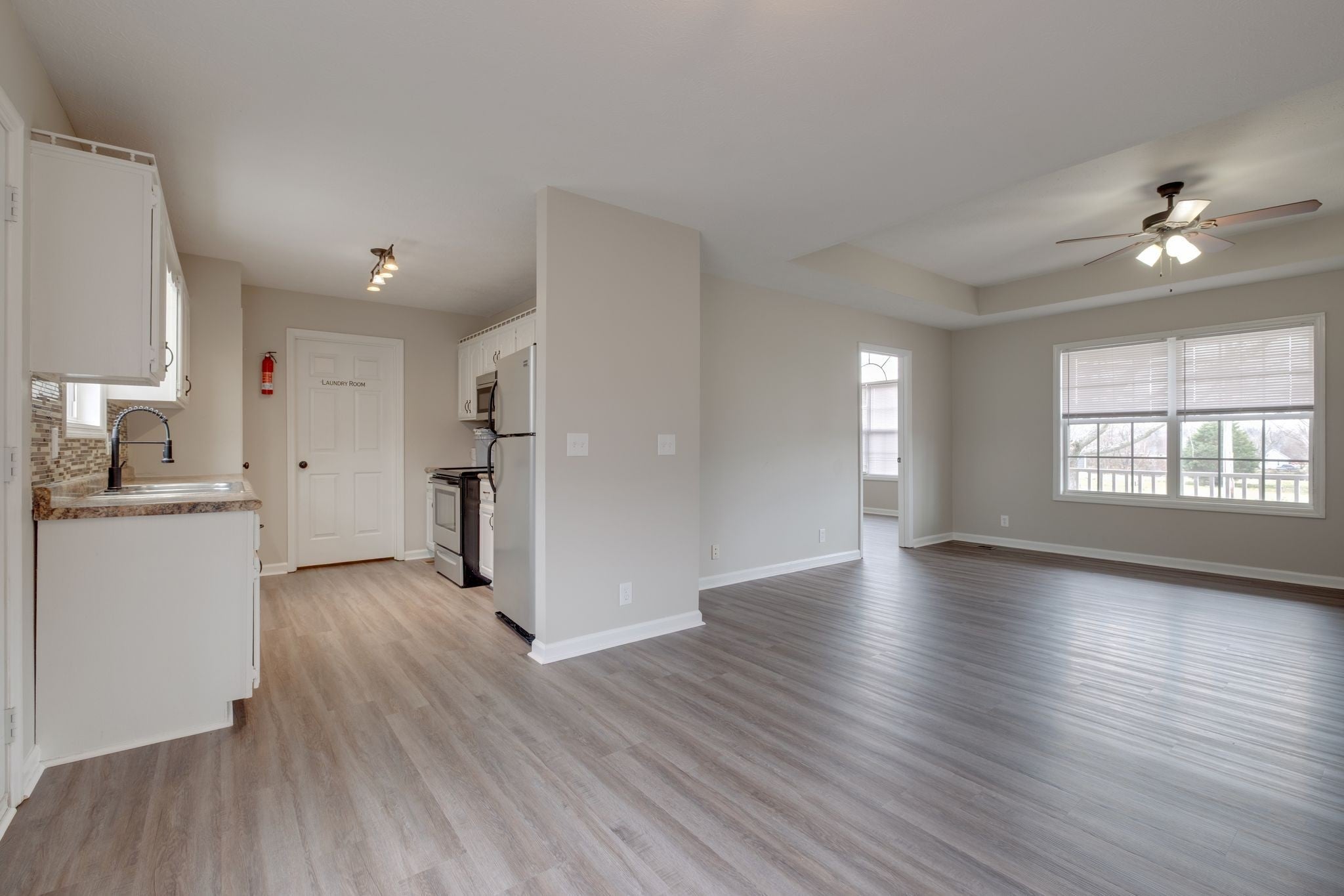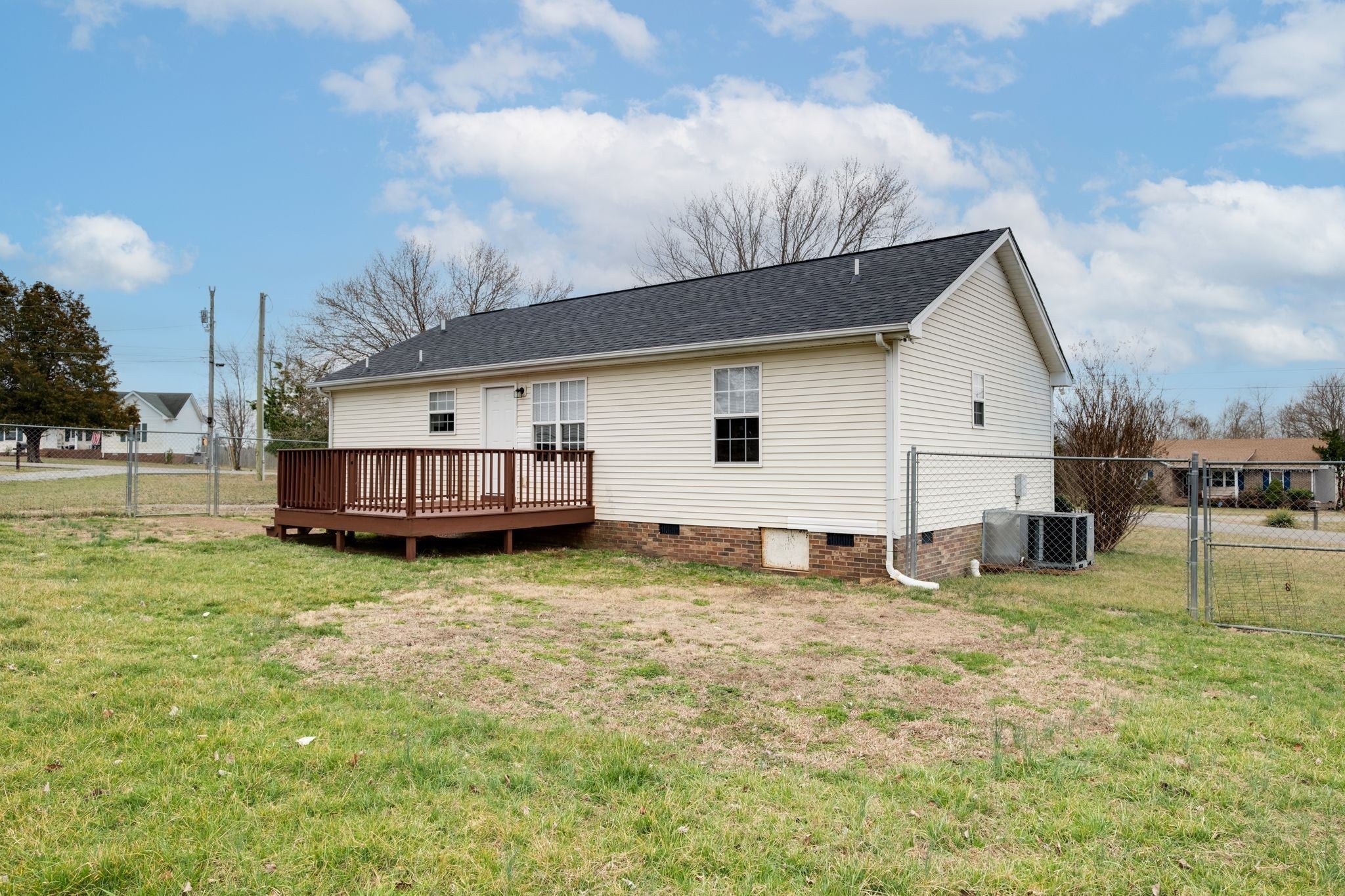 Welcome home to your move-in ready 3 bed 2 bath single level home, offering fresh paint and new LVP flooring throughout. No carpet! A fresh canvas to make it your own! This home features a Master bedroom, bath and walk in closet on one side of the house and the additional 2 bedrooms and 1 bath on the opposite of the house. Open living room and dining area. Separate laundry room off of your kitchen. Enjoy relaxing, working, entertaining on your covered front porch or back deck. Large corner lot with fenced in backyard.